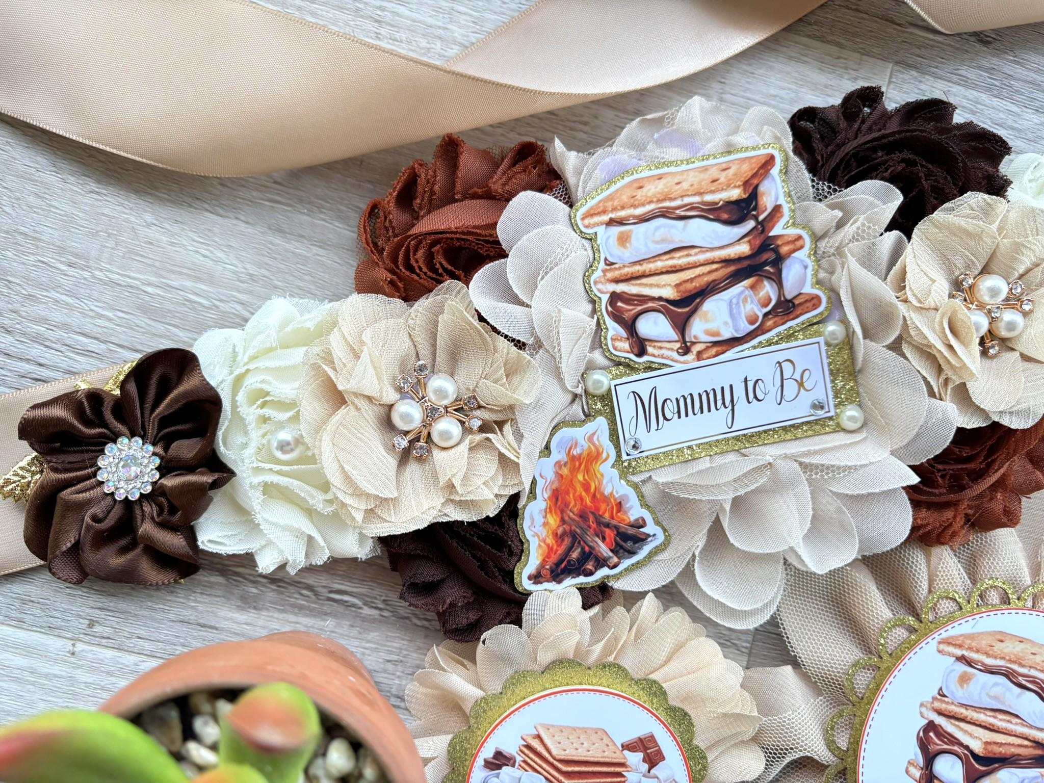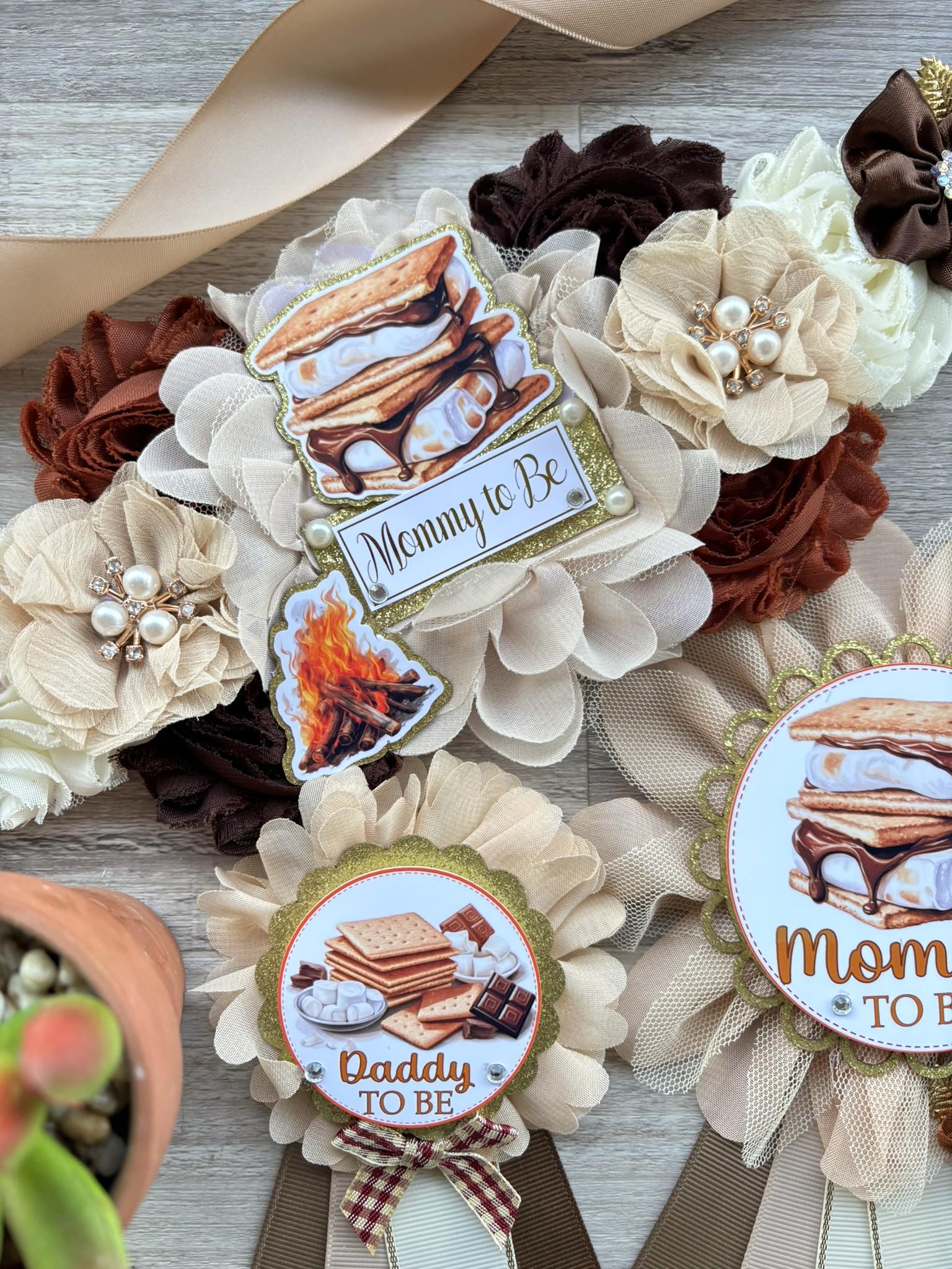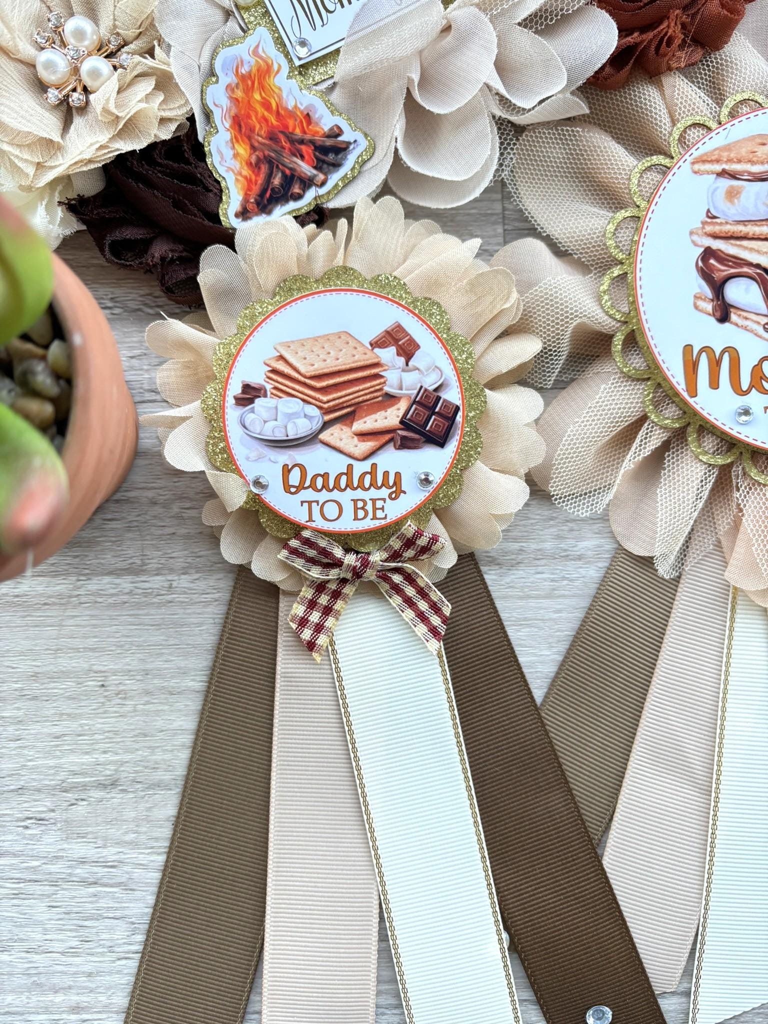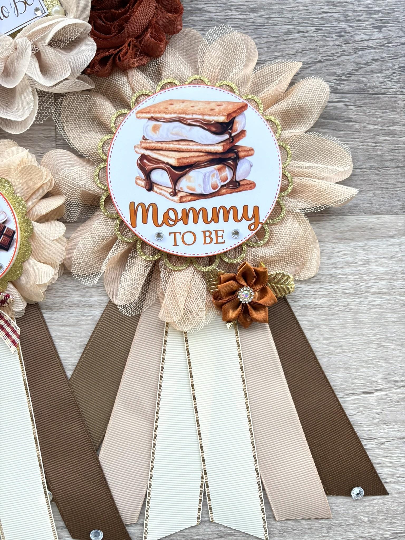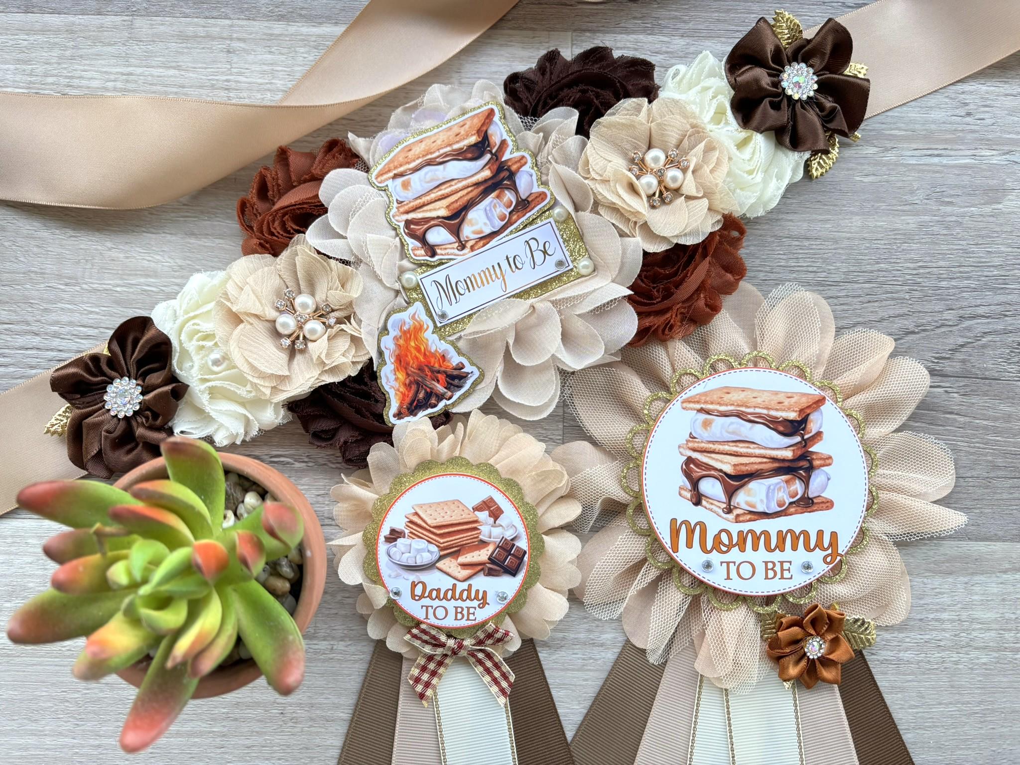 S'mores Baby Shower, Marshmallow Chocolate Maternity Sash, Mommy To Be Pin, Daddy To Be Pin, Camping Campfire Camper, Custom Order Welcome