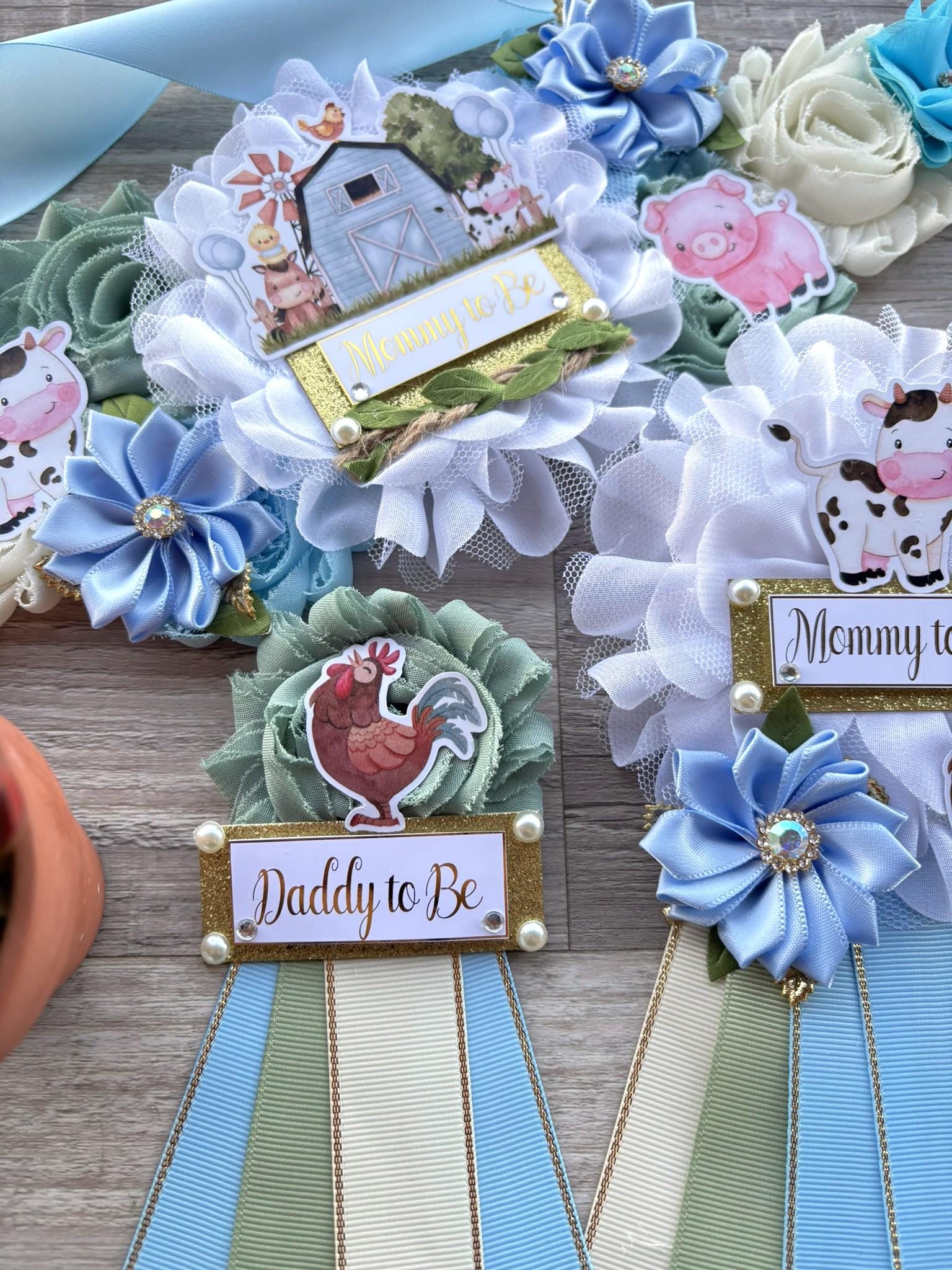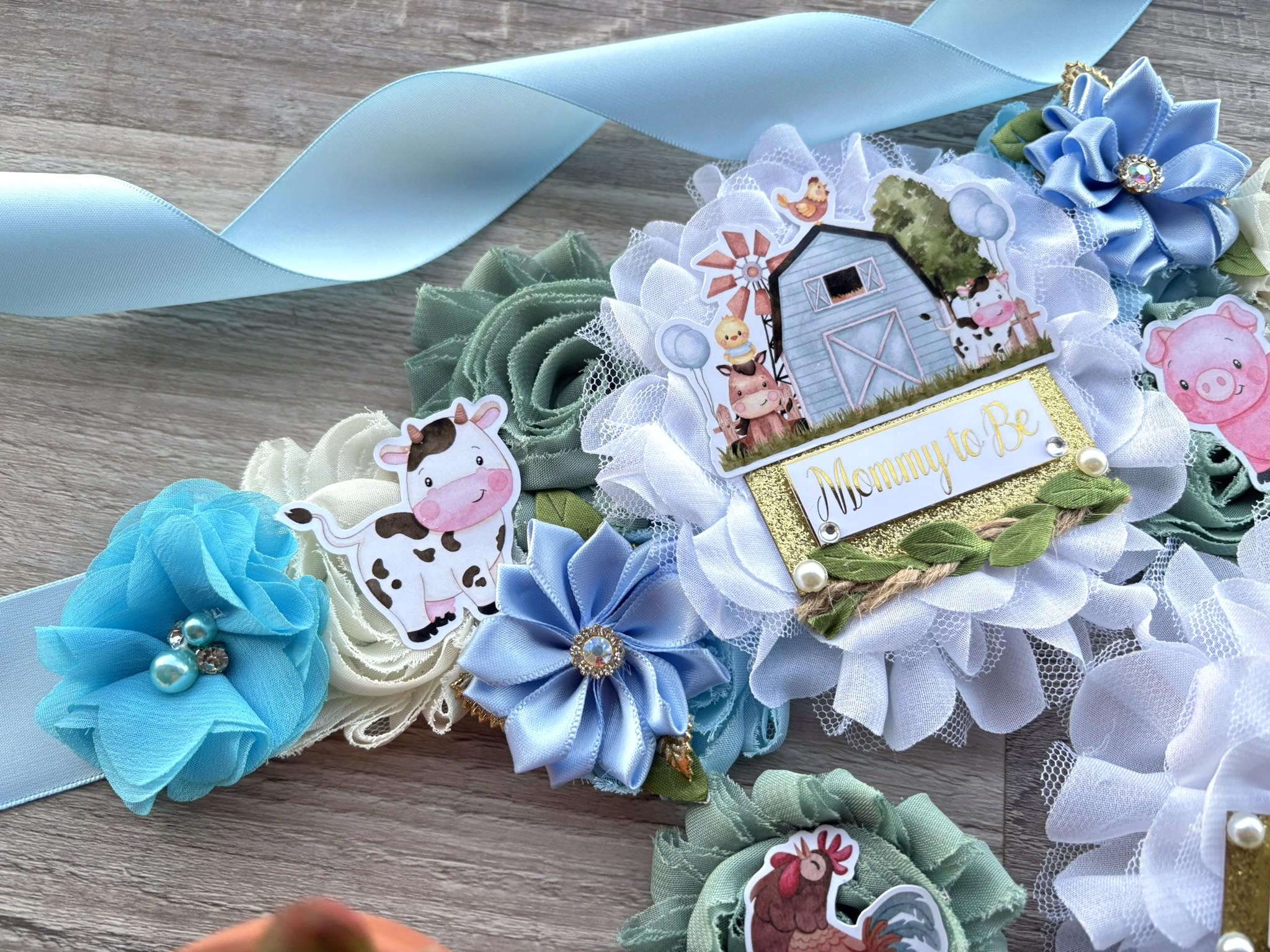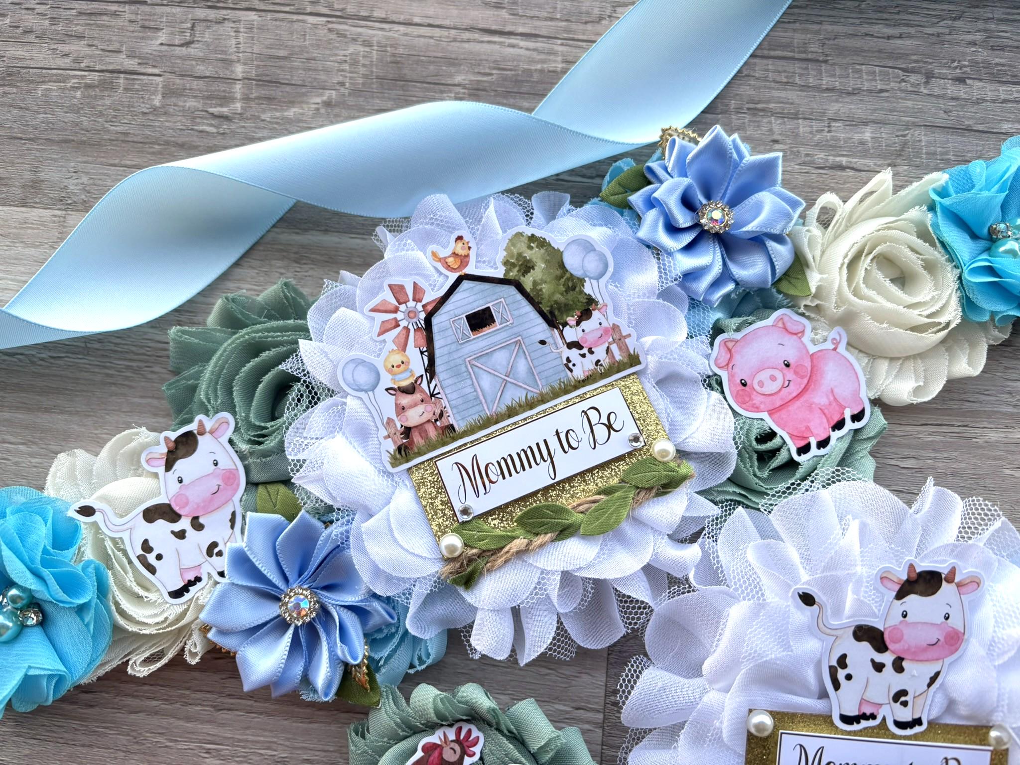 Farm Animal Boy Baby Shower, Barn Animal Maternity Sash, Cow Sheep Mommy To Be Ribbon Pin, Farm Daddy To Be Pin, Baby Shower Gift, Custom