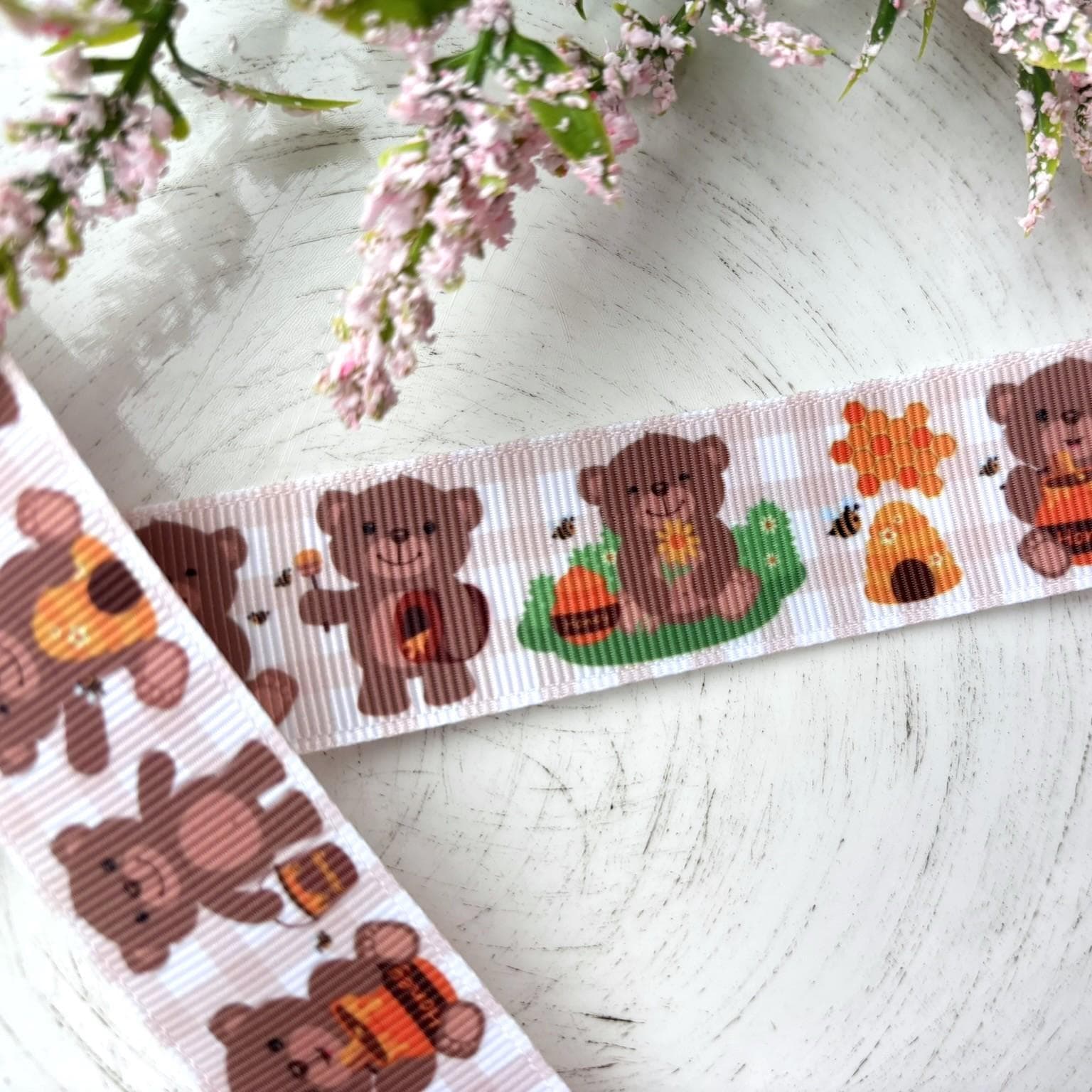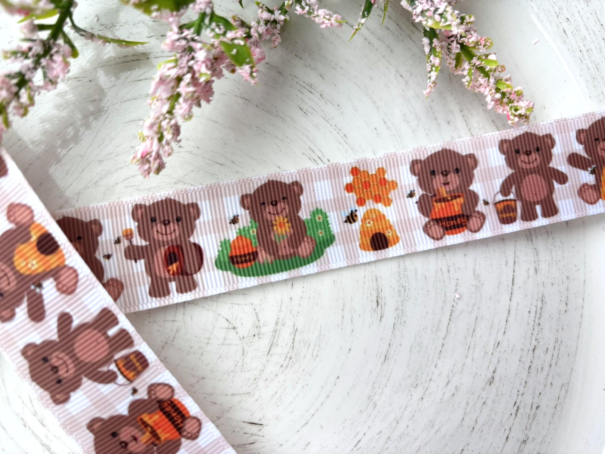 Honey Bear Grosgrain Ribbon, Diaper Cake Ribbon, Neutral Baby Shower Ribbon || 3 Yards of Ribbon - 1" (25mm)