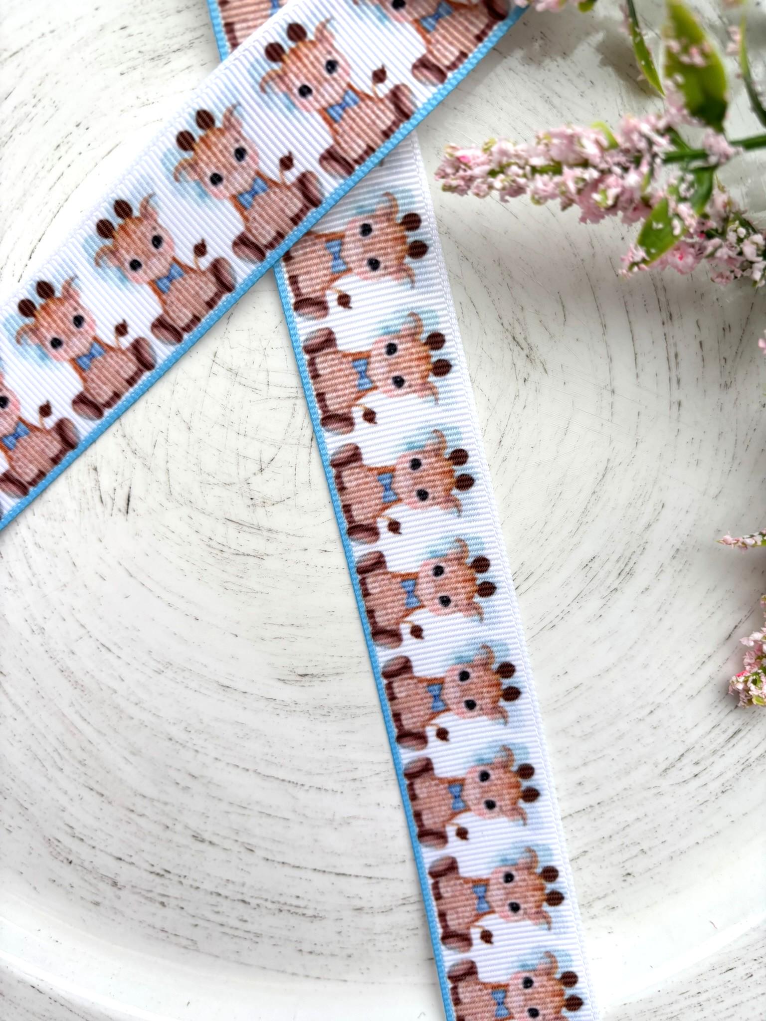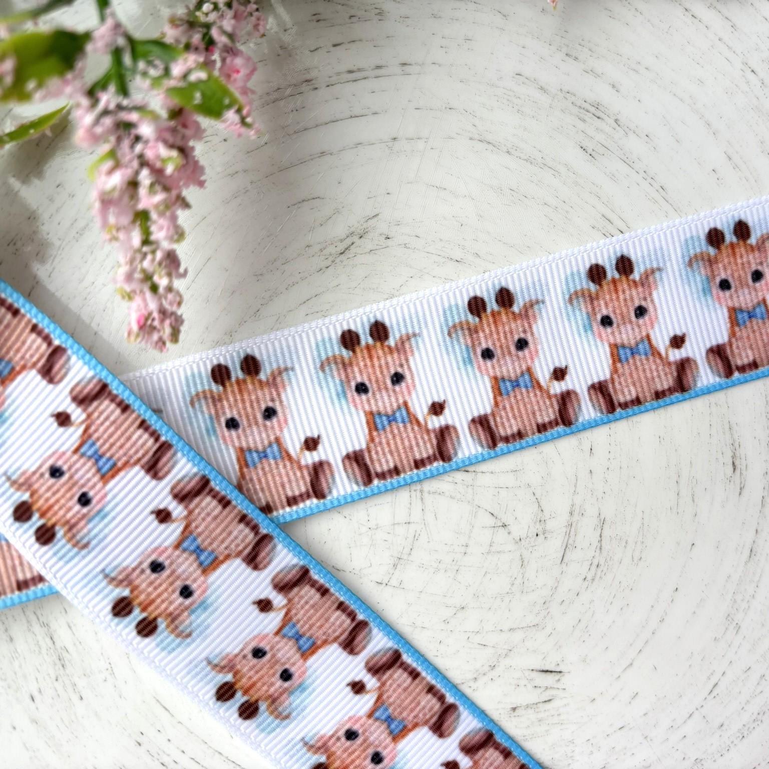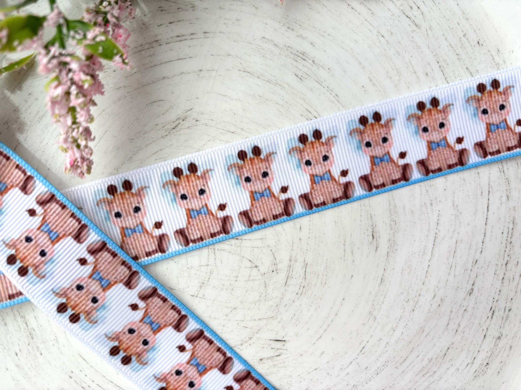 Boy Giraffe Grosgrain Ribbon, Diaper Cake Ribbon, Boy Safari Ribbon || 3 Yards of Ribbon - 1" (25mm)
