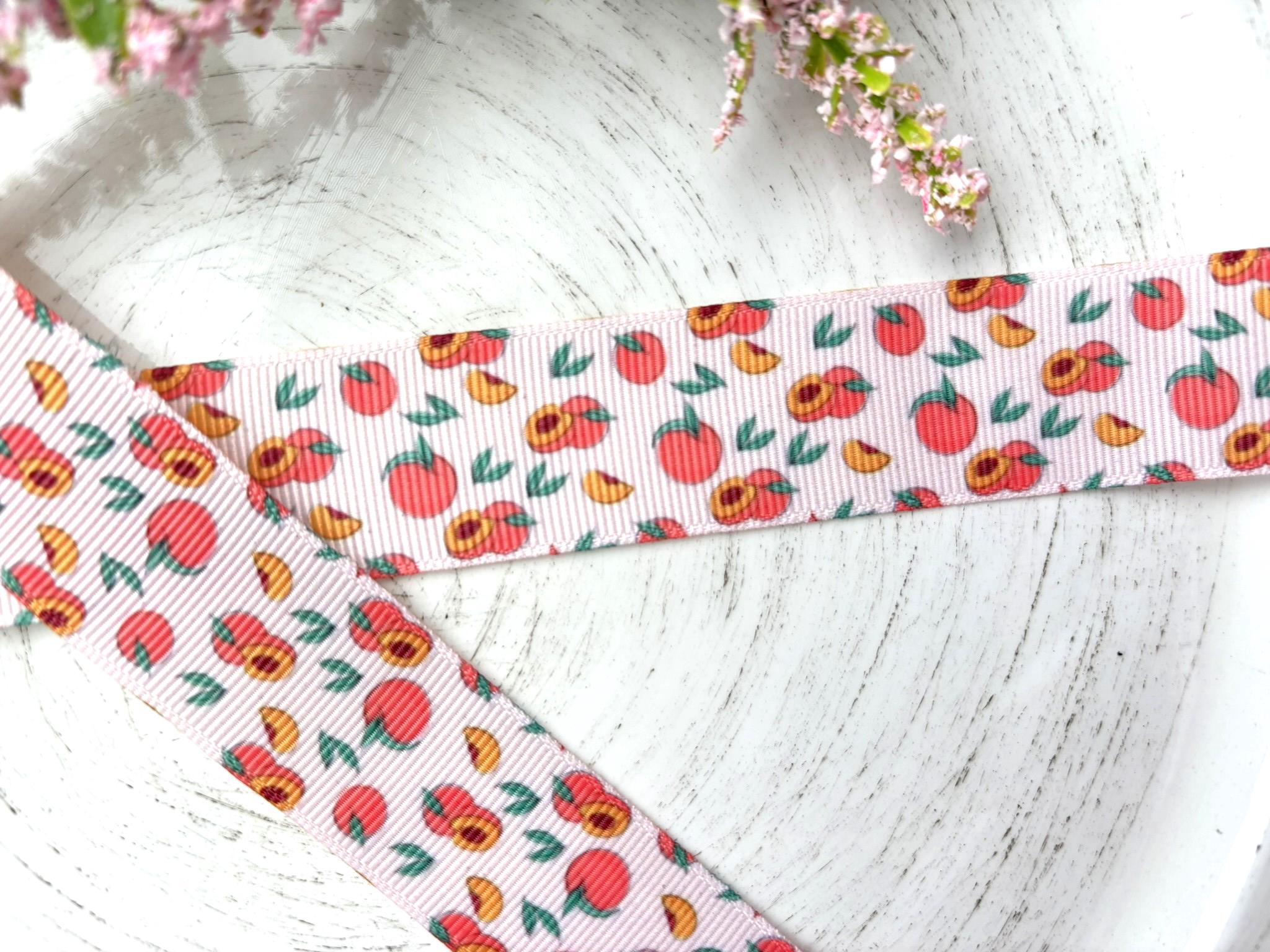 Peach Fruit Grosgrain Ribbon, Diaper Cake Ribbon, Peach Ribbon || 3 Yards of Ribbon - 1" (25mm)