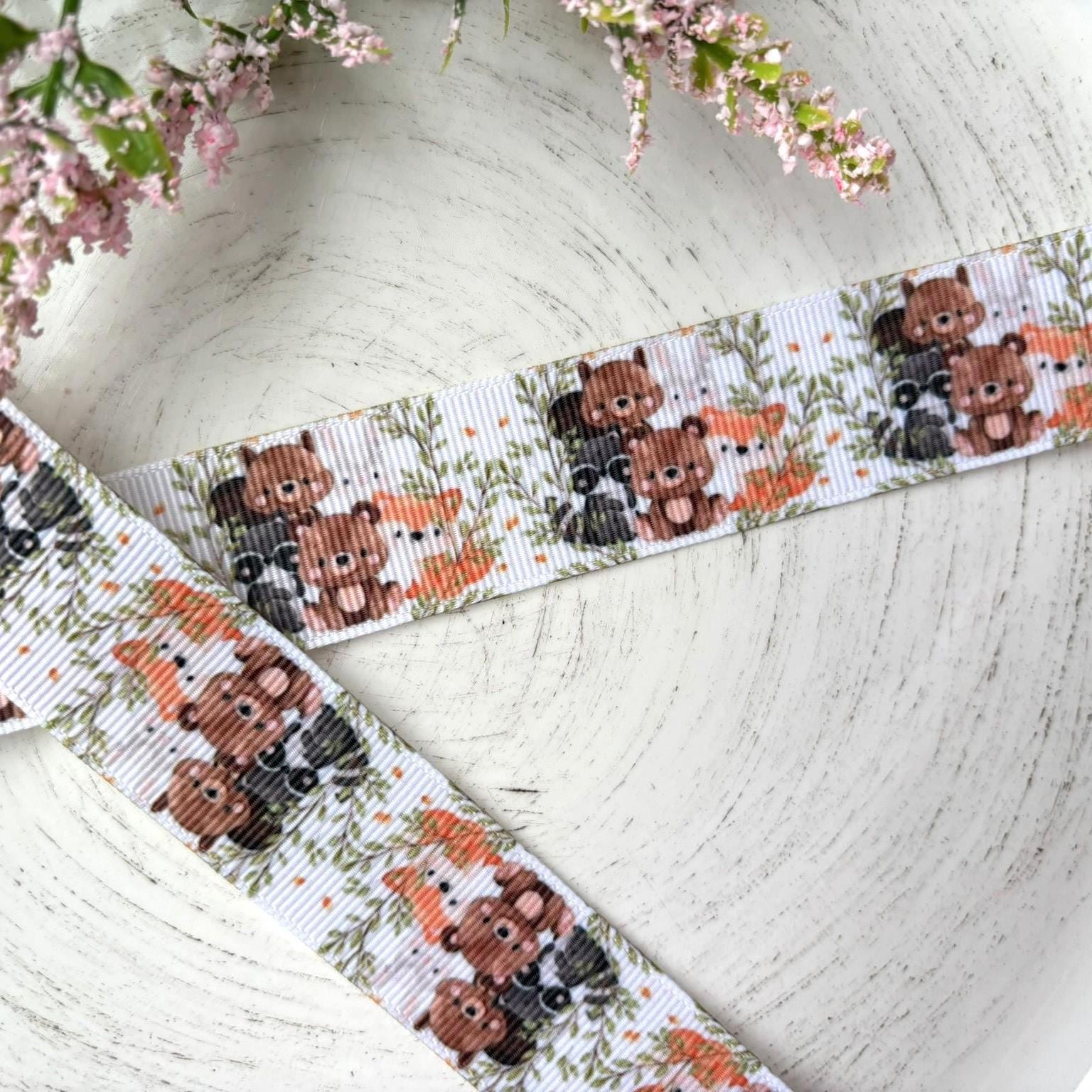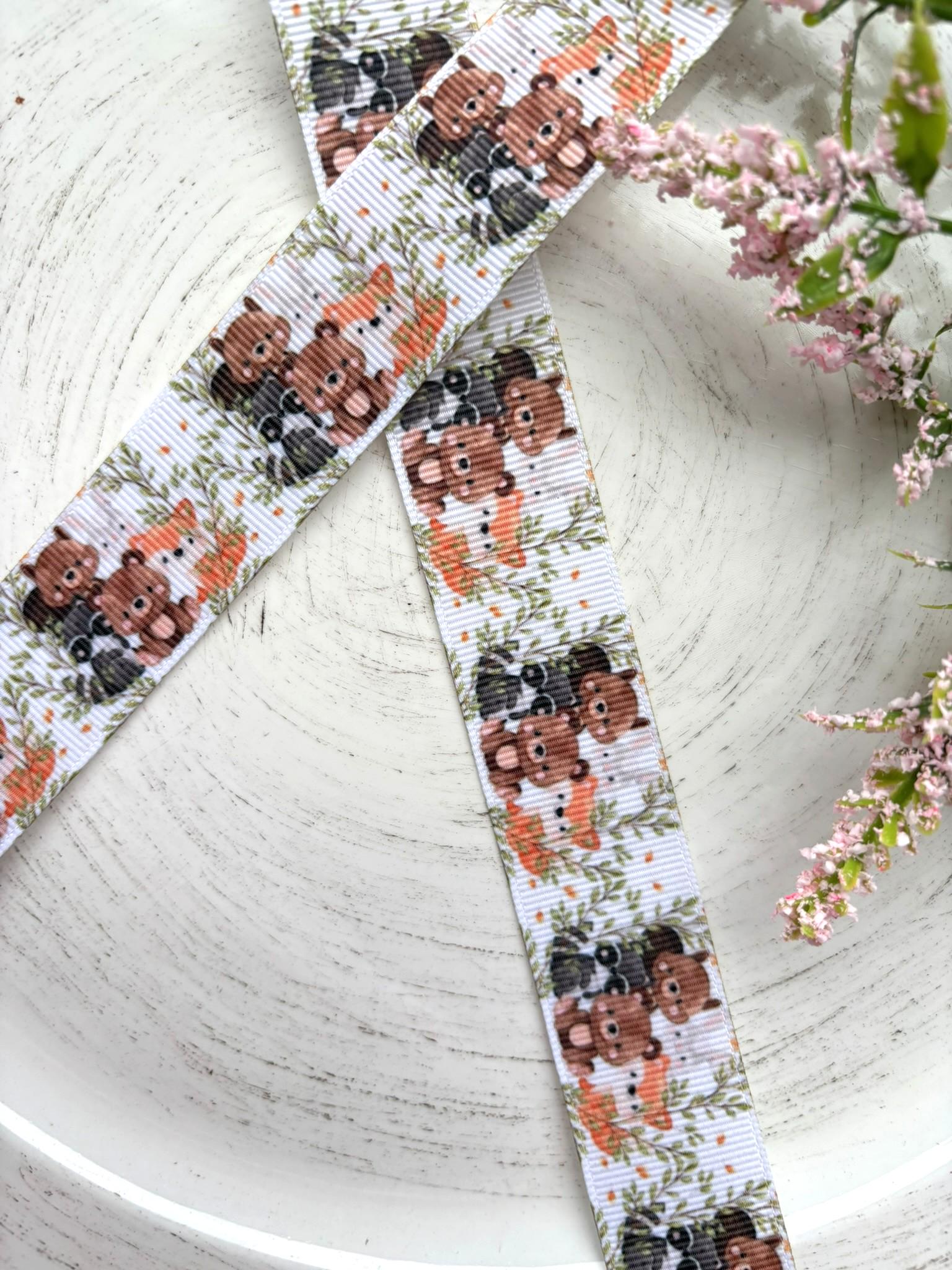 Woodland Animal Grosgrain Ribbon, Diaper Cake Ribbon, Pink Baby Woodland Ribbon || 3 Yards of Ribbon - 1" (25mm)