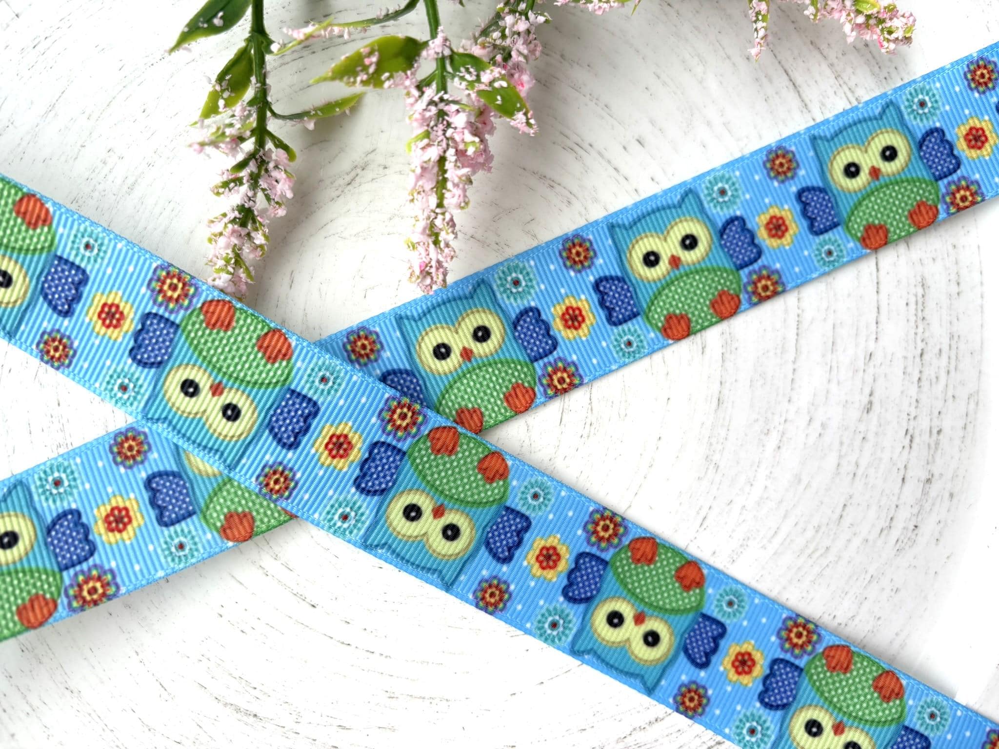 Owl Grosgrain Ribbon, Diaper Cake Ribbon, Blue Baby Owl Ribbon || 3 Yards of Ribbon - 1" (25mm)