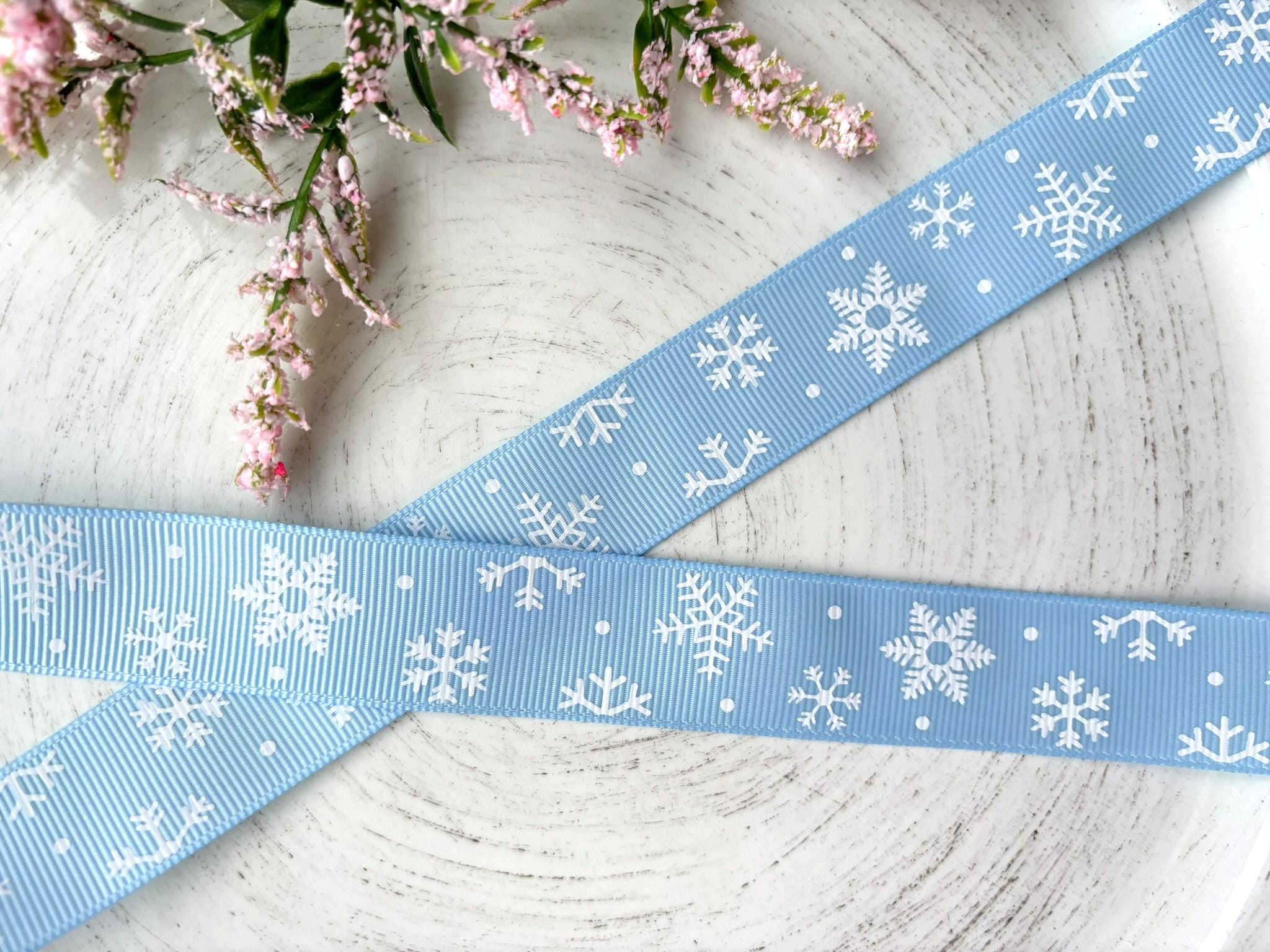 Snowflakes Grosgrain Ribbon, Diaper Cake Ribbon, Blue Snowflake Ribbon || 3 Yards of Ribbon - 1" (25mm)