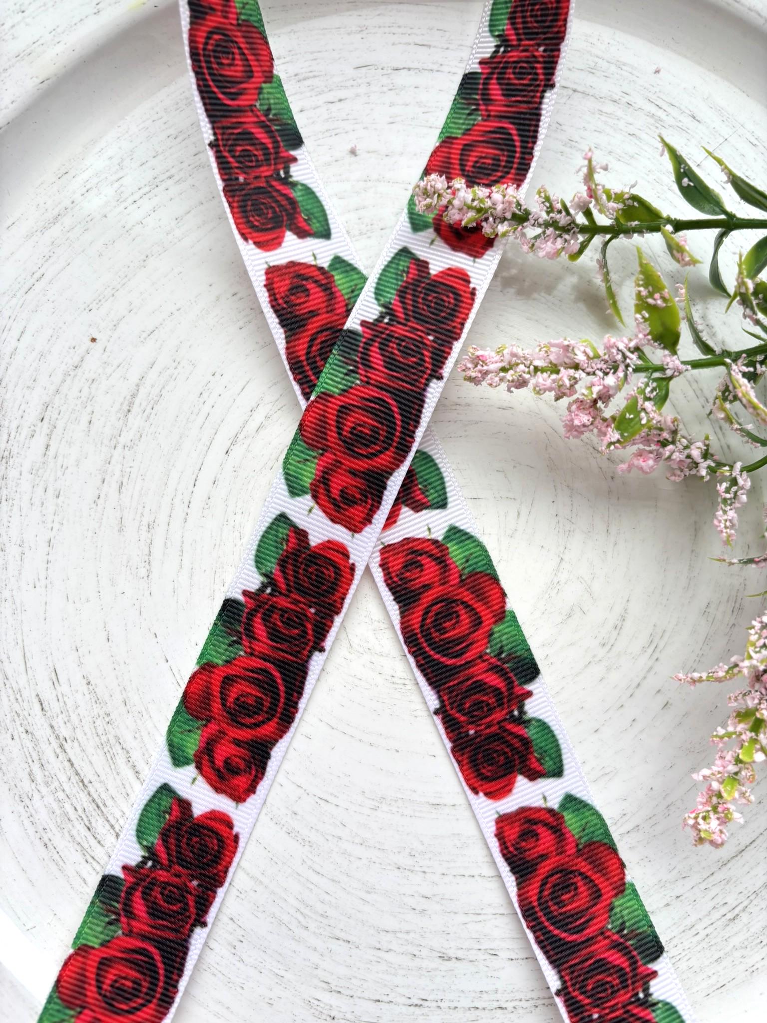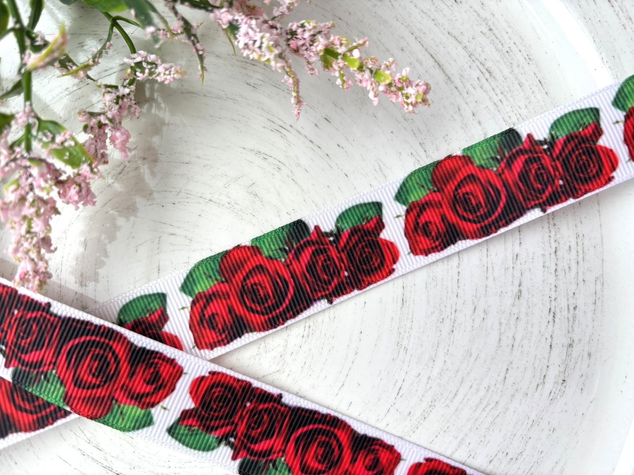 Roses Grosgrain Ribbon, Diaper Cake Ribbon, Red Flower Ribbon || 3 Yards of Ribbon - 1" (25mm)