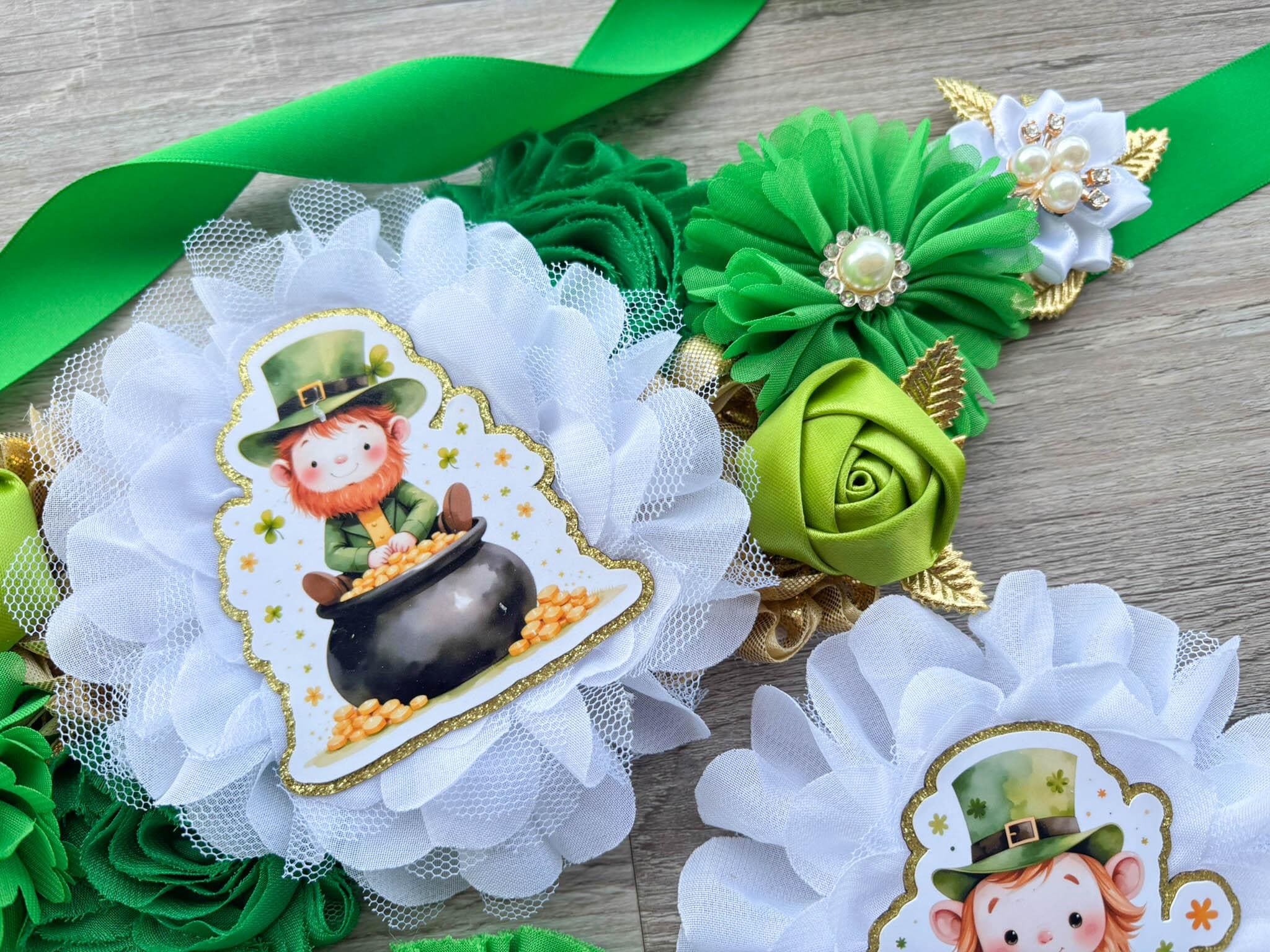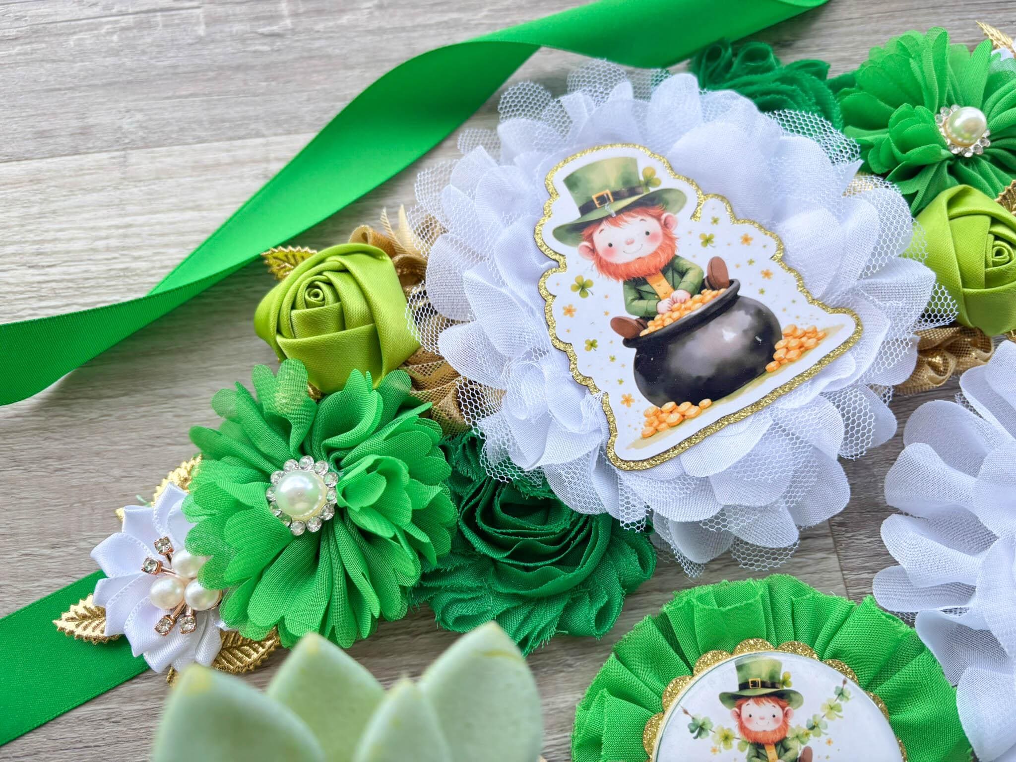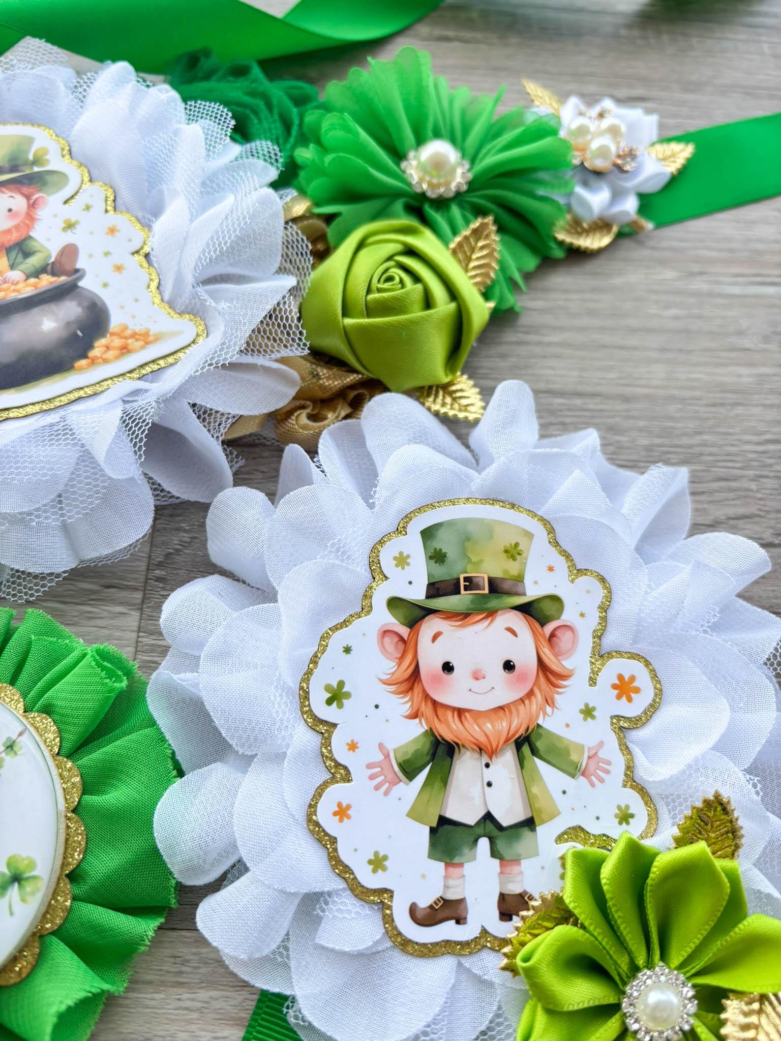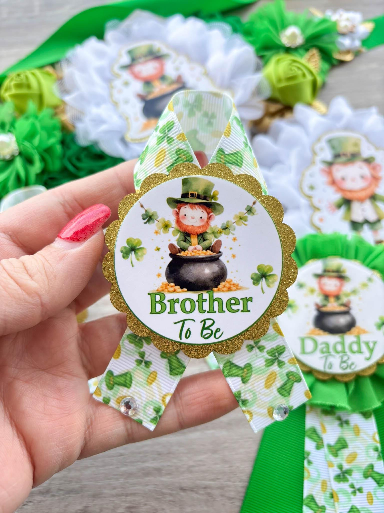 Saint Patrick Baby Shower, Maternity Sash, Clover Mommy To Be Pin, Green Daddy To Be Pin, St. Patrick's Day Baby Shower, New Parents Pin