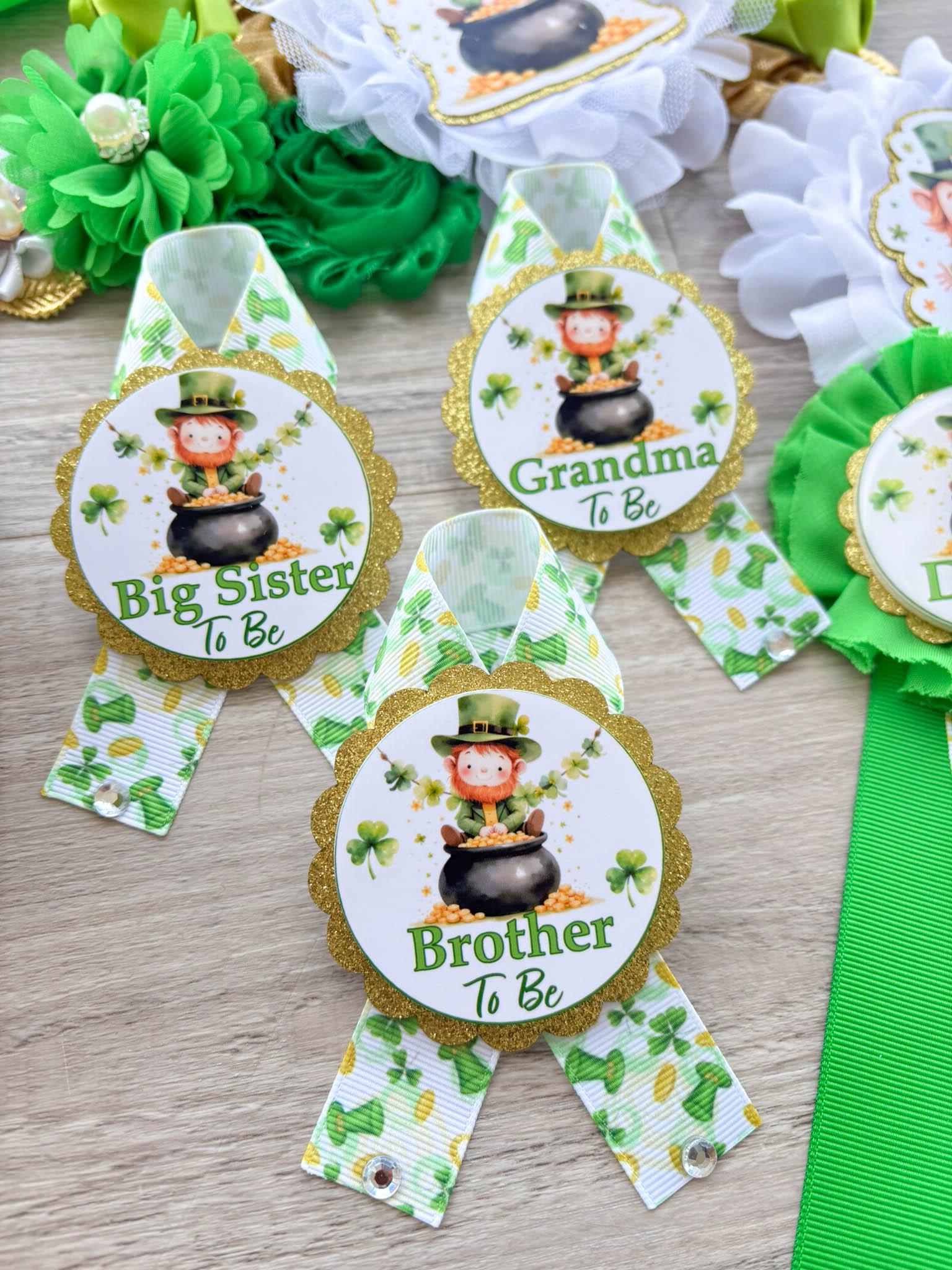 This St. Patrick's Day Pins - Baby Shower Set is made especially for a Baby Shower or a Photo Prop.