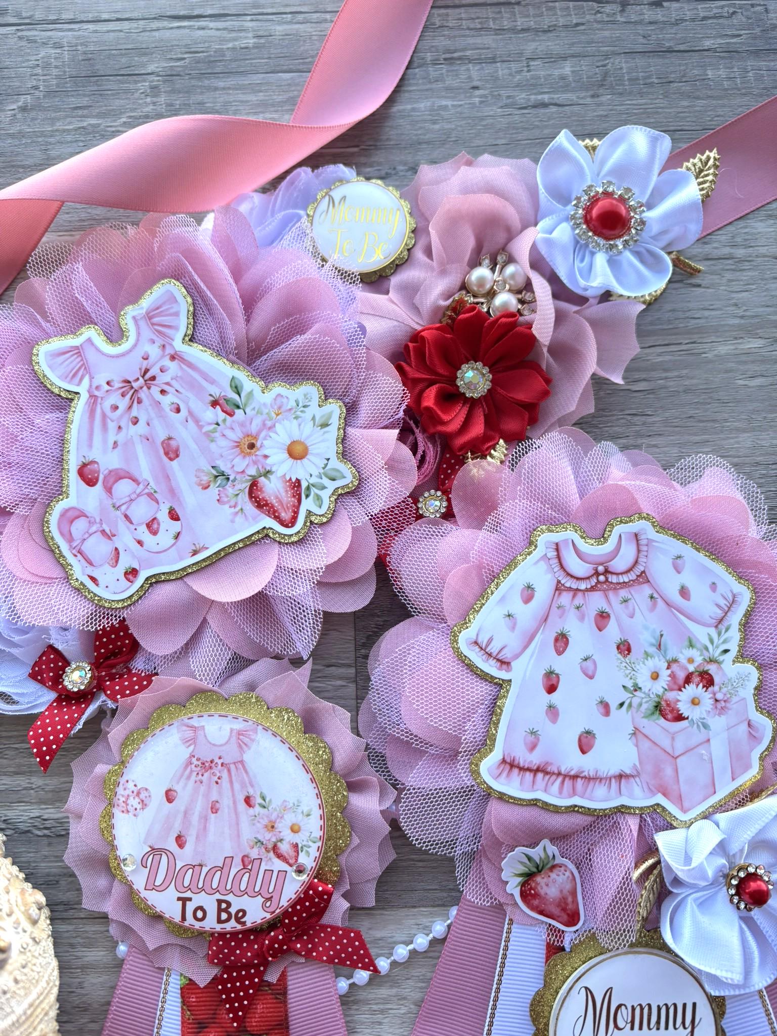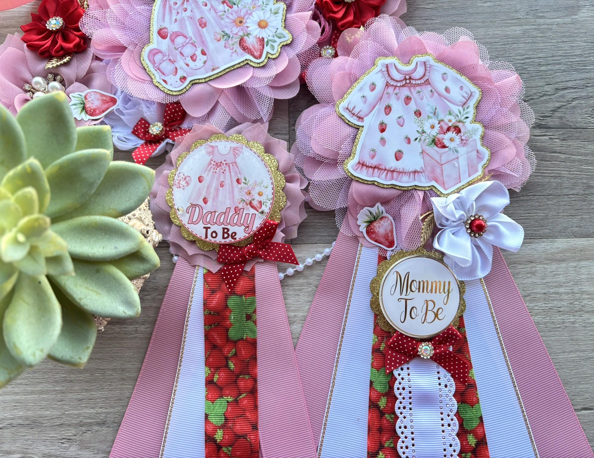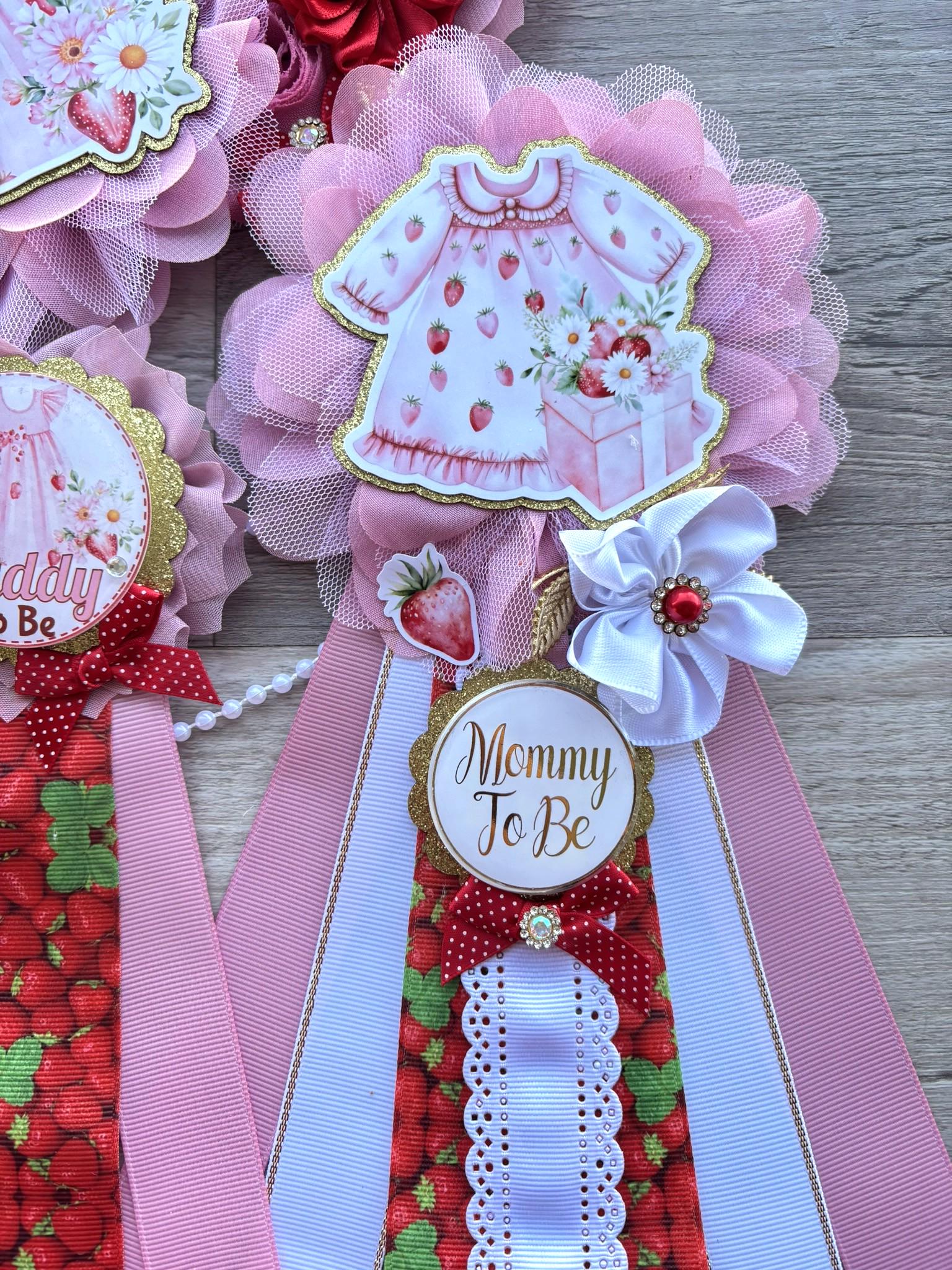 A Berry Sweet Girl Is On The Way Baby Shower, Girl Red Strawberry Maternity Sash, Mommy To Be Pin, Daddy To Be Pin, Spring Baby Shower