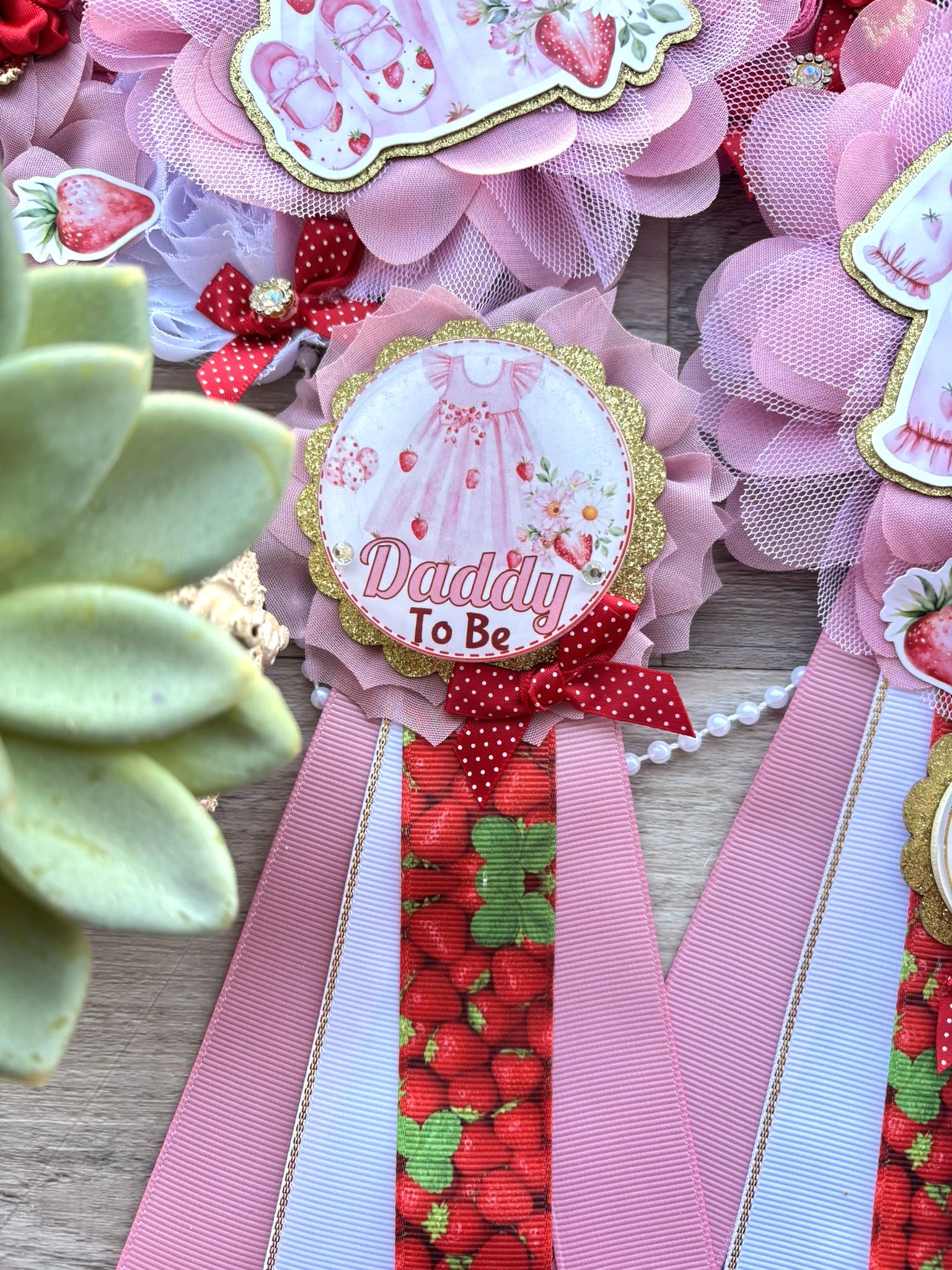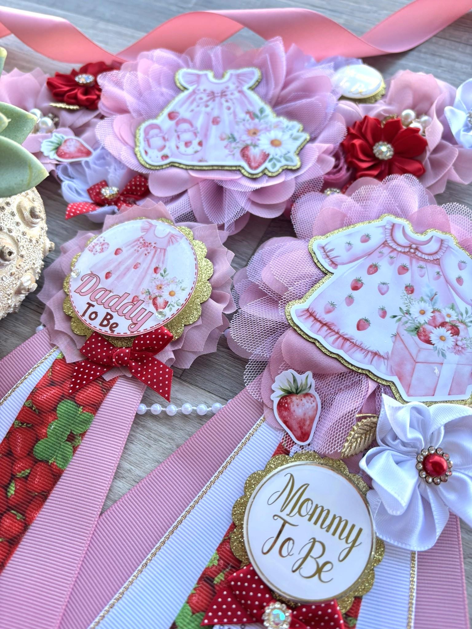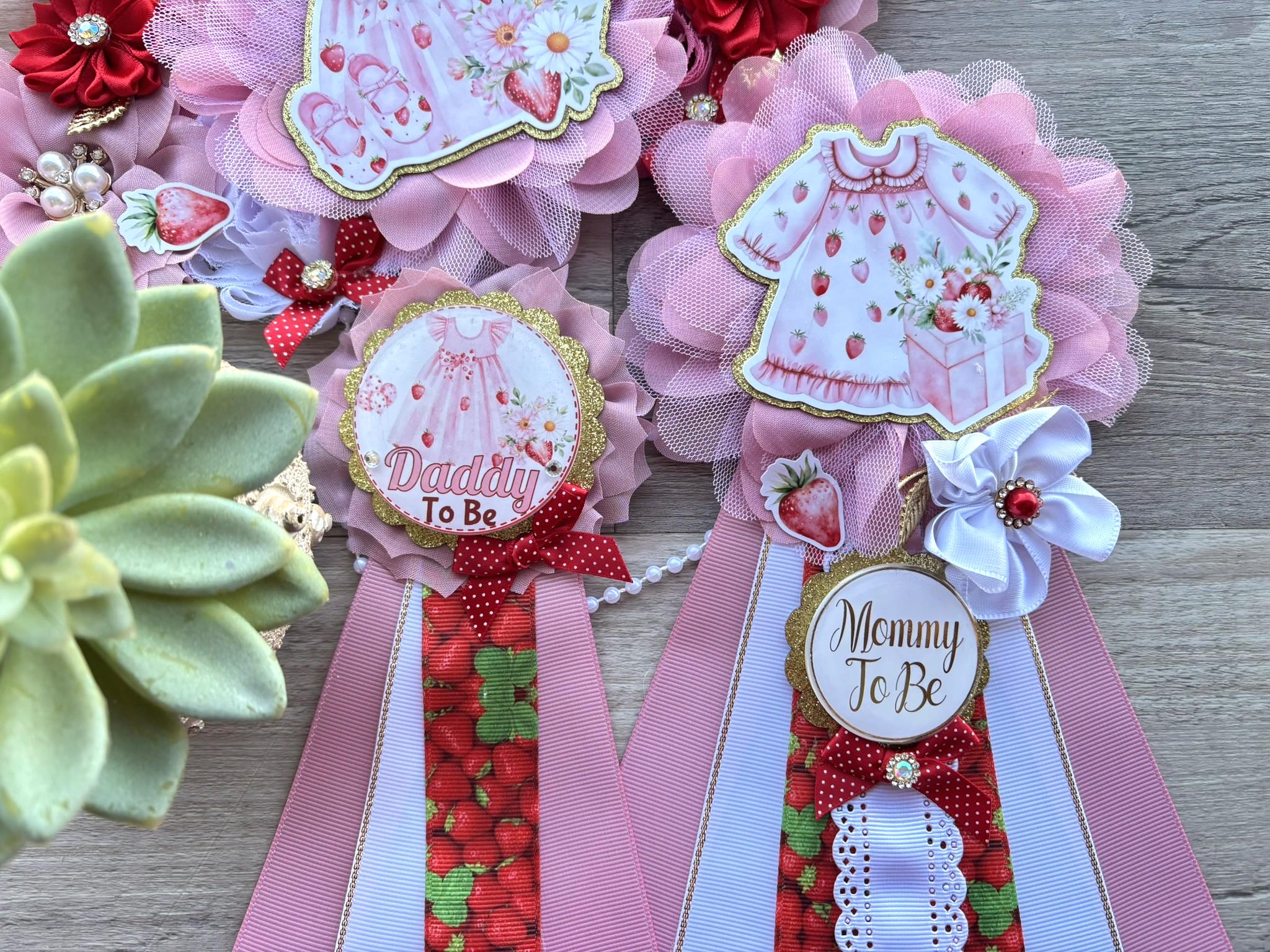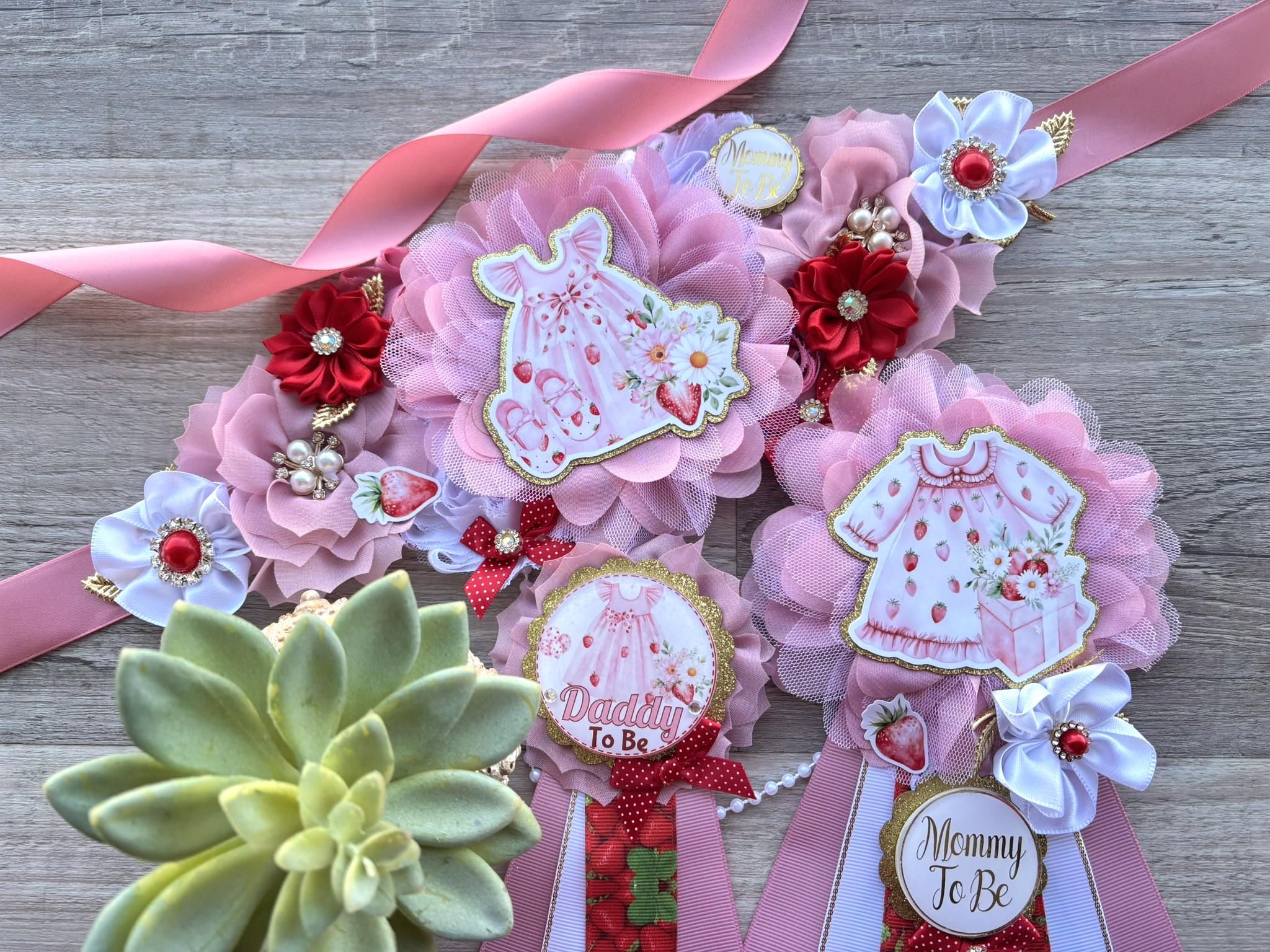 A Berry Sweet Girl Is On The Way Baby Shower, Girl Red Strawberry Maternity Sash, Mommy To Be Pin, Daddy To Be Pin, Spring Baby Shower