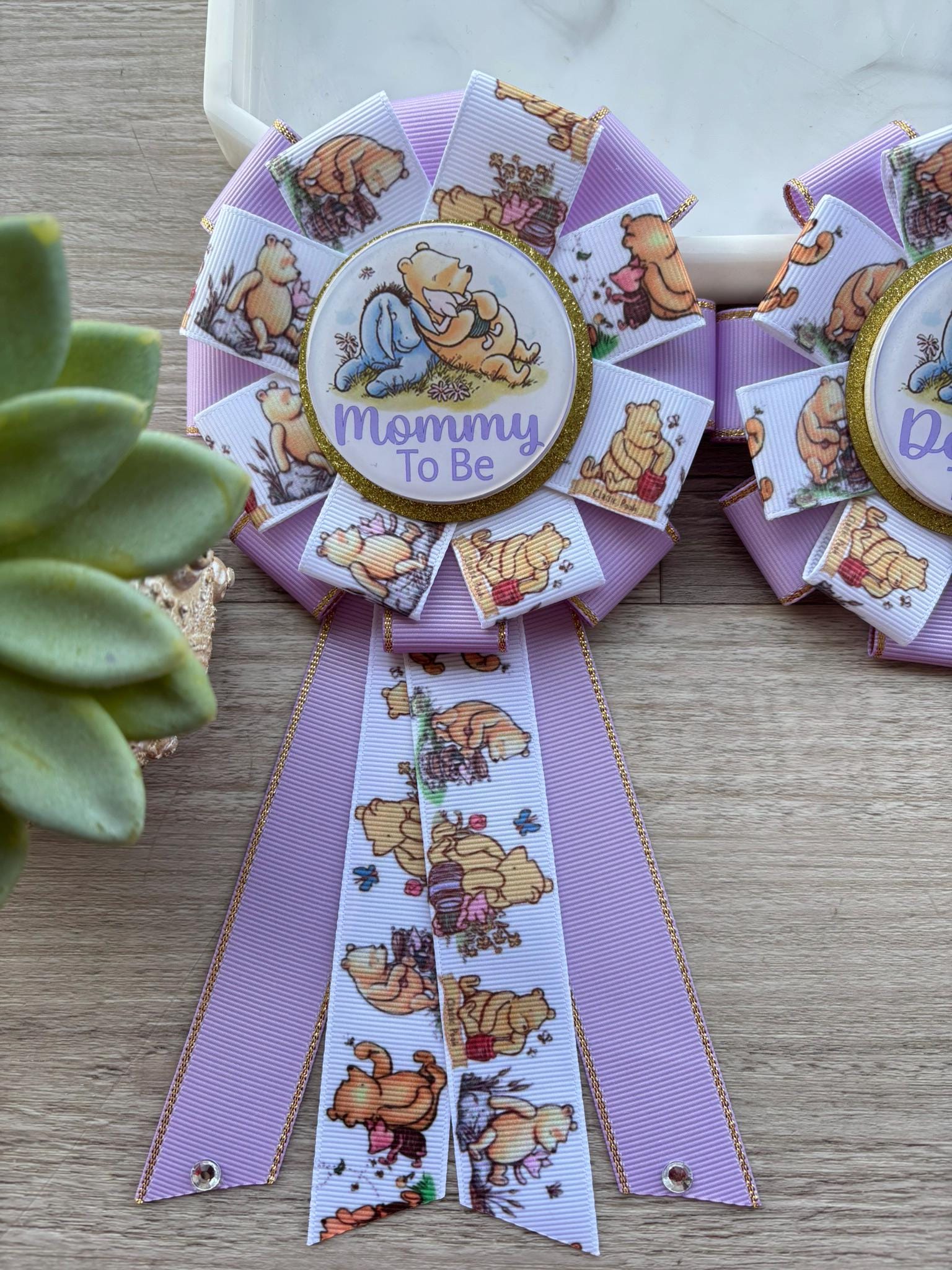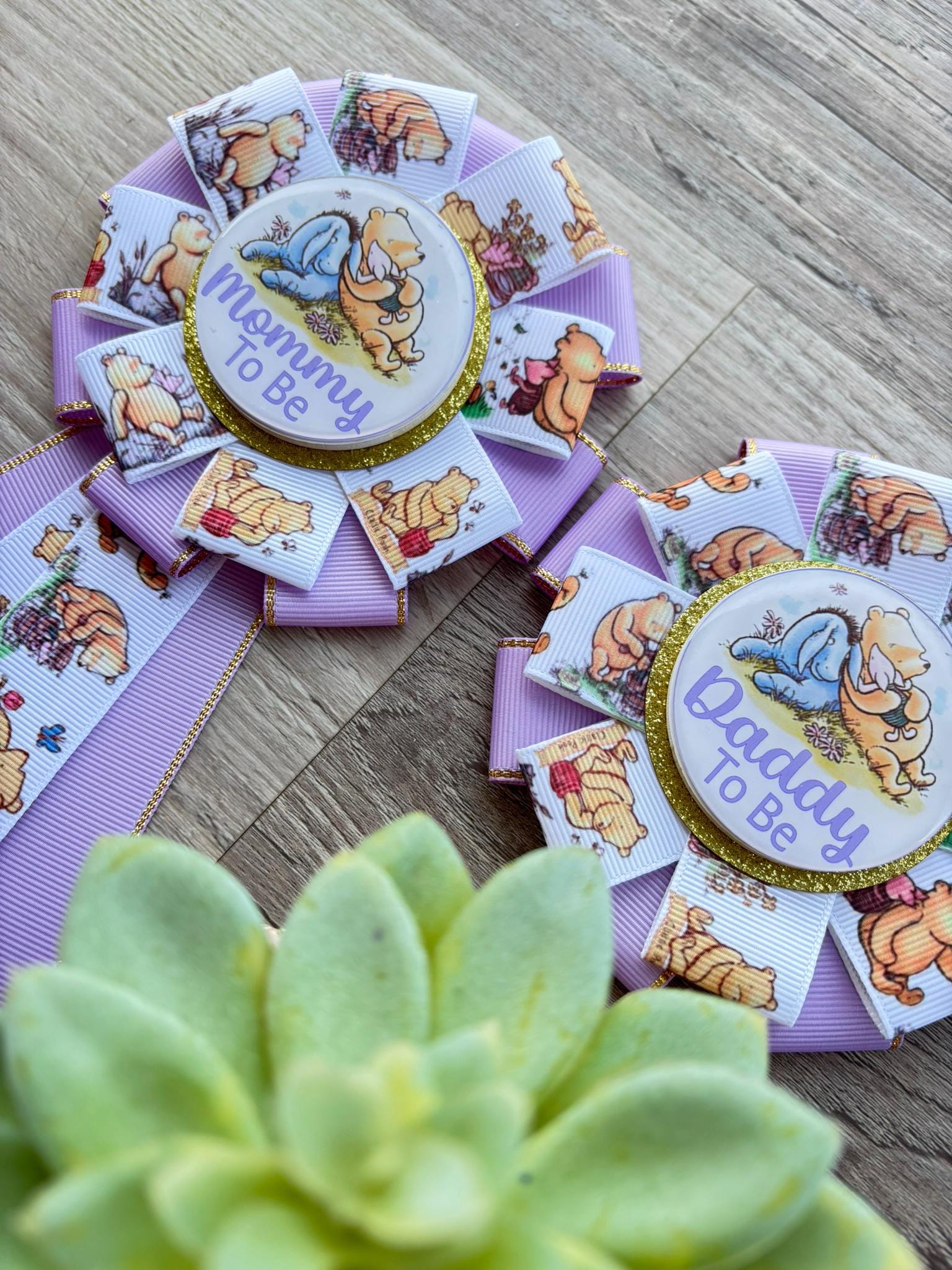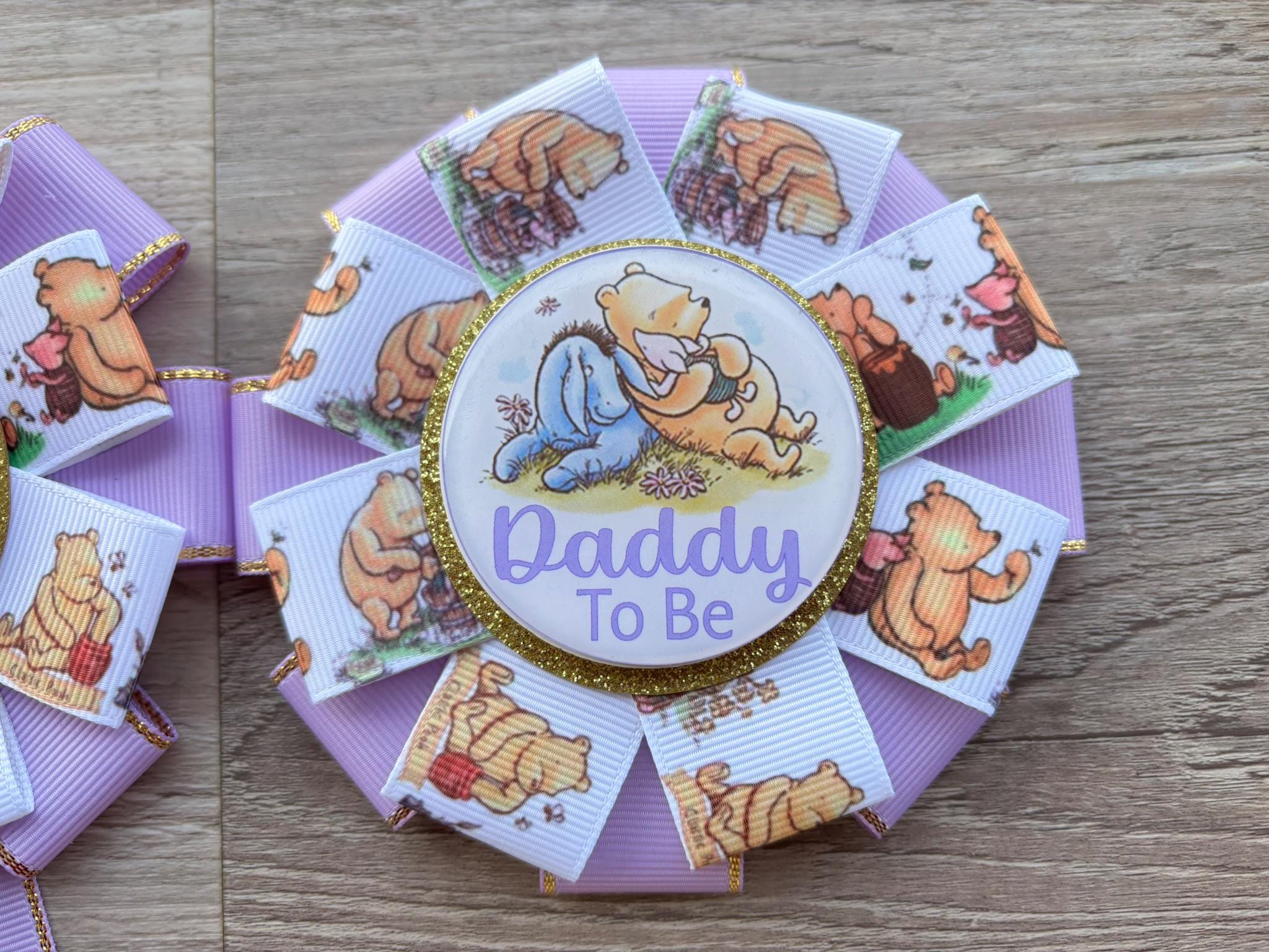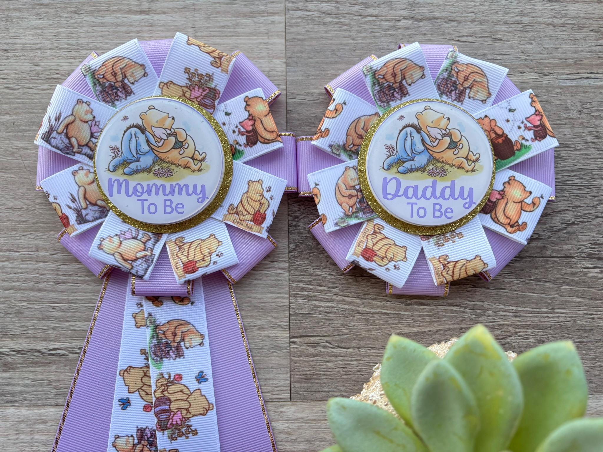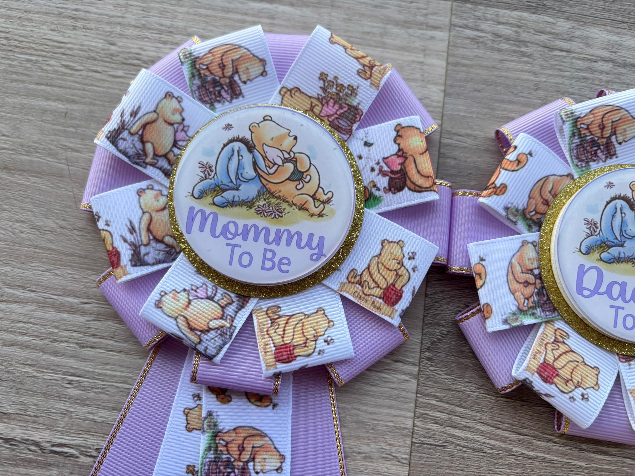Lavender Winnie Mom & Dad Pins, Winnie The Pooh Baby Shower, Girl Mommy To Be Ribbon, Daddy To Be Pin, Parent's To Be Pins