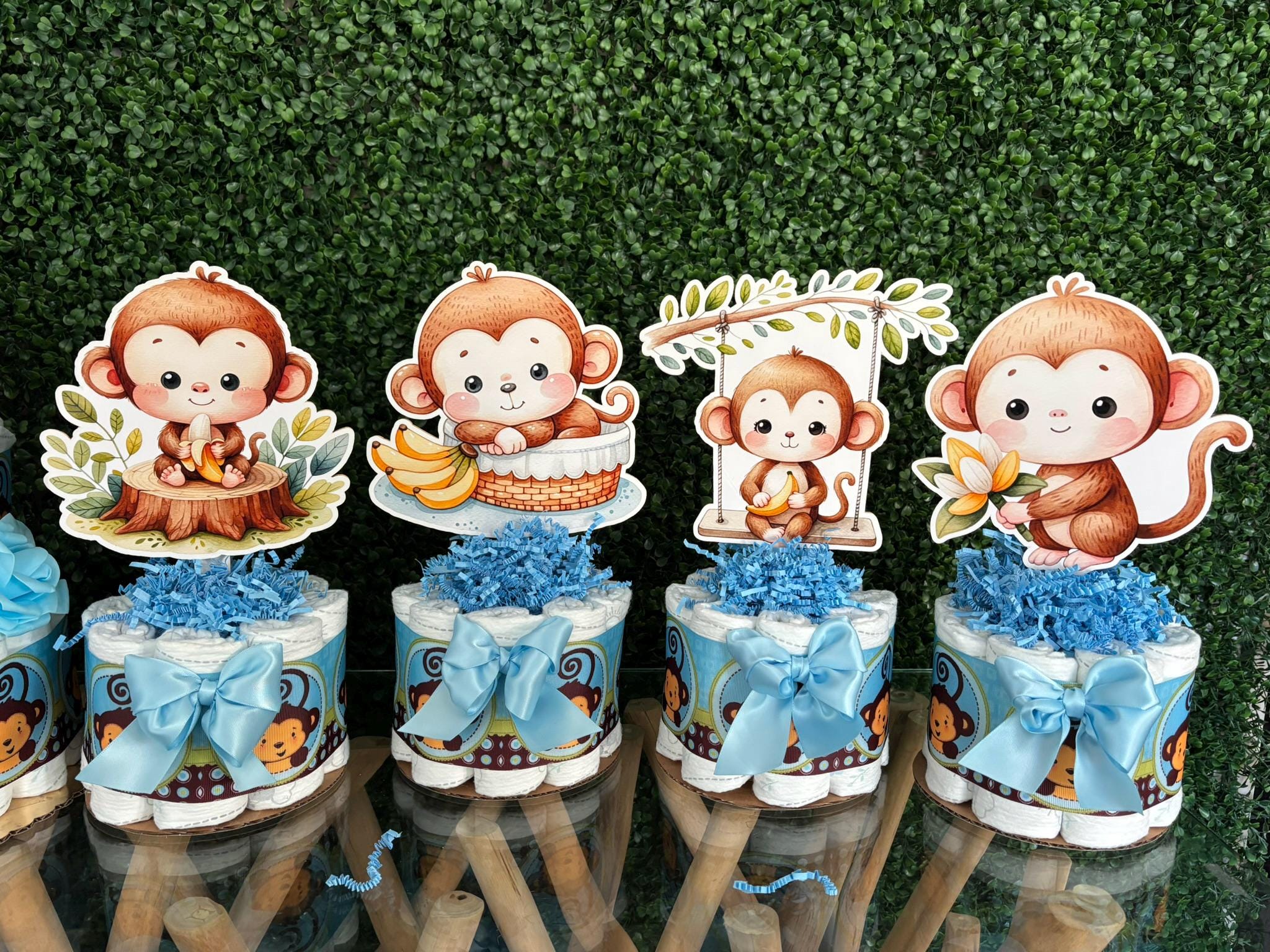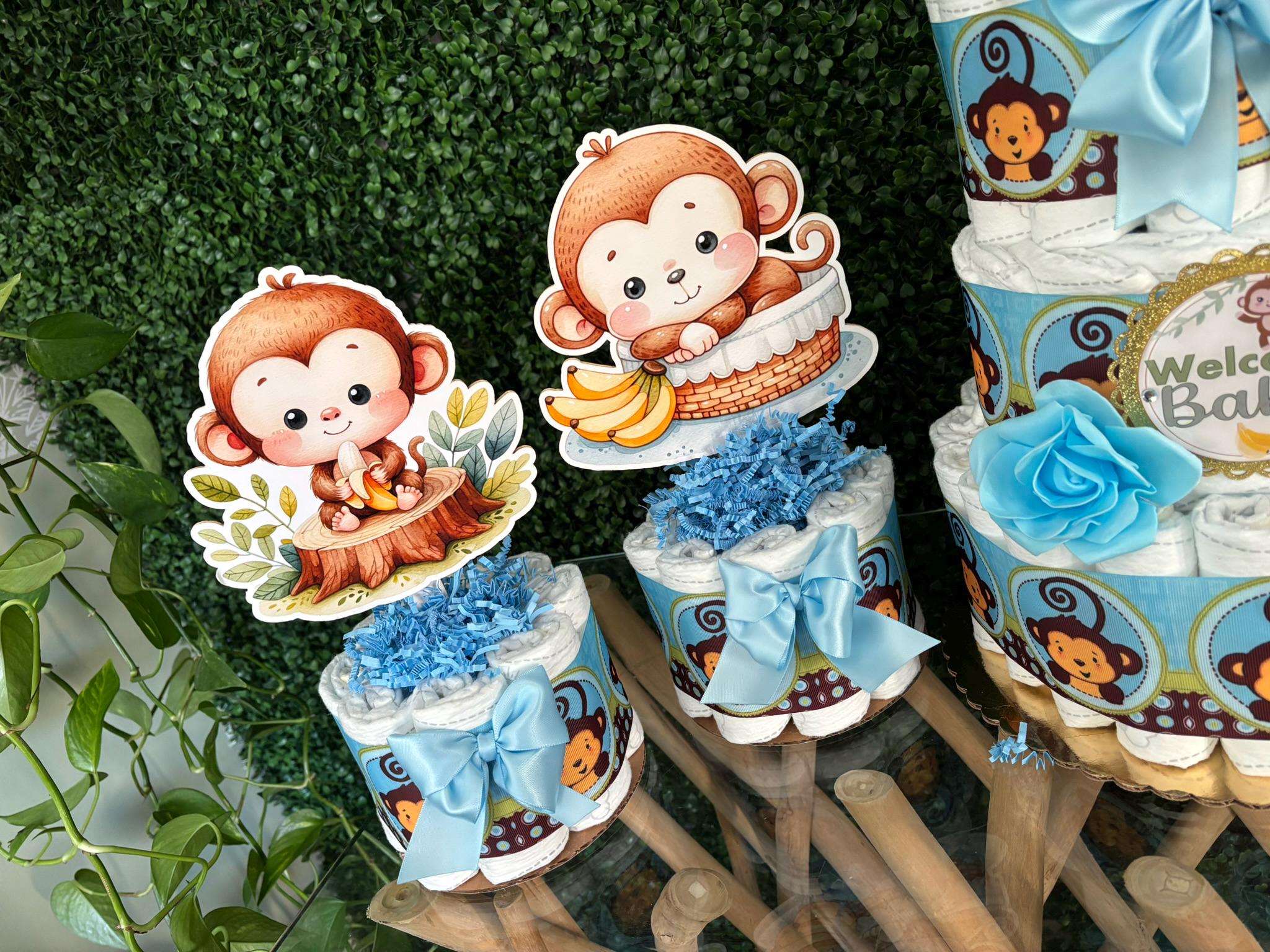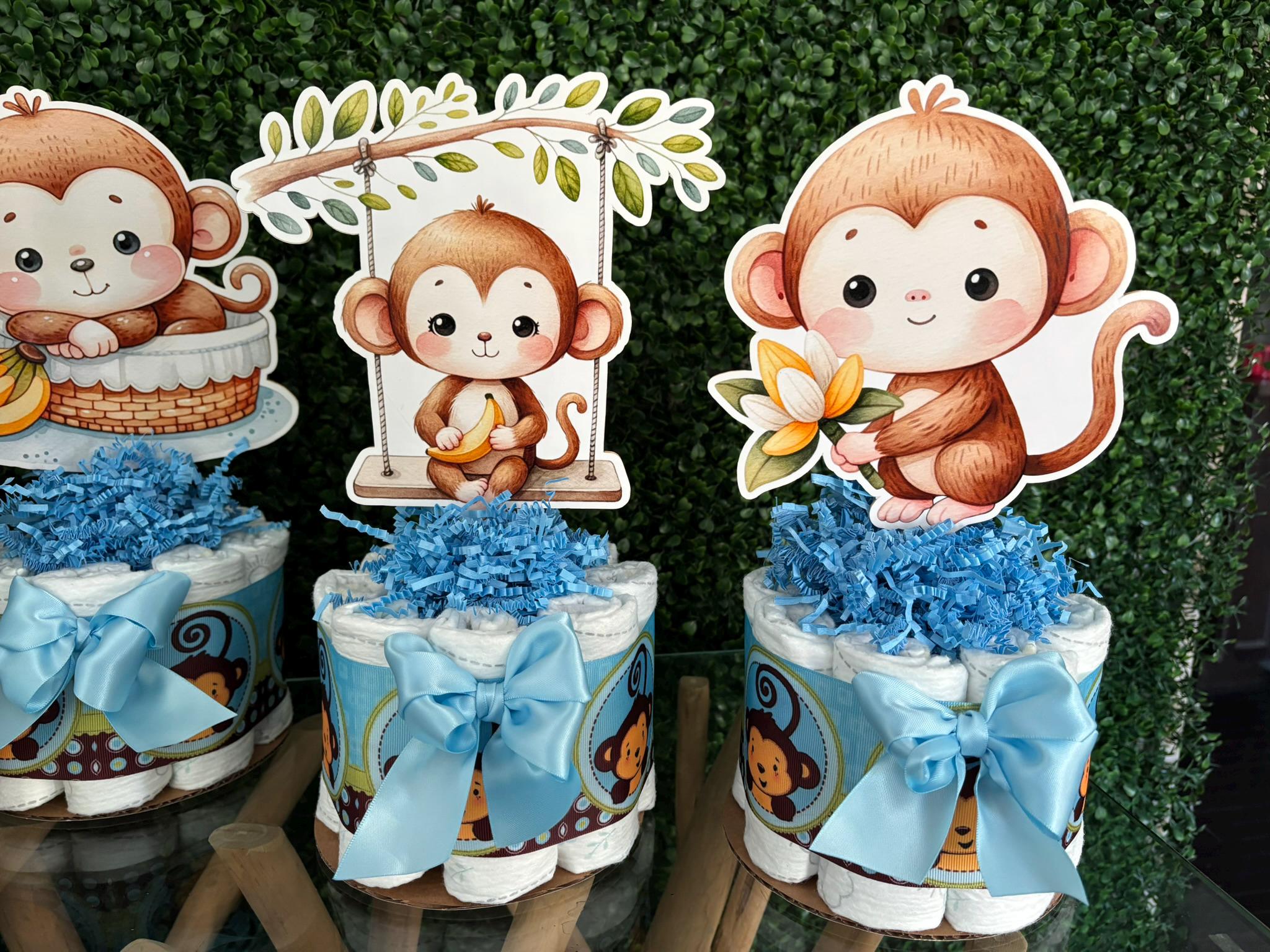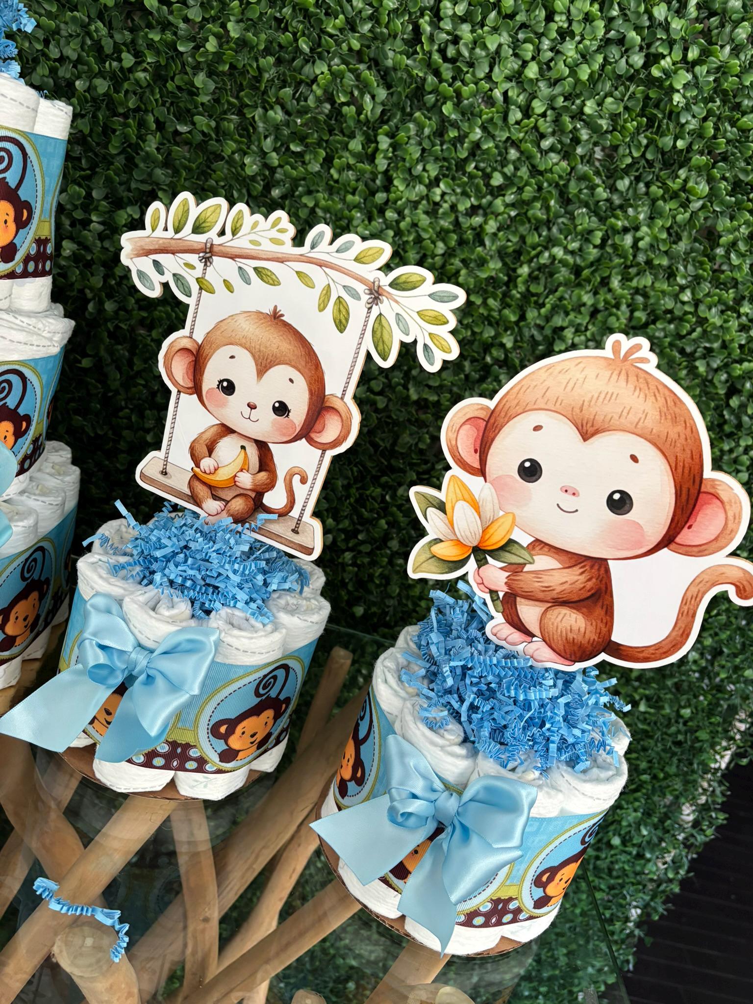 This Gorgeous Monkey Diaper Cake is the perfect centerpieces for your baby shower. We can match any shower theme.