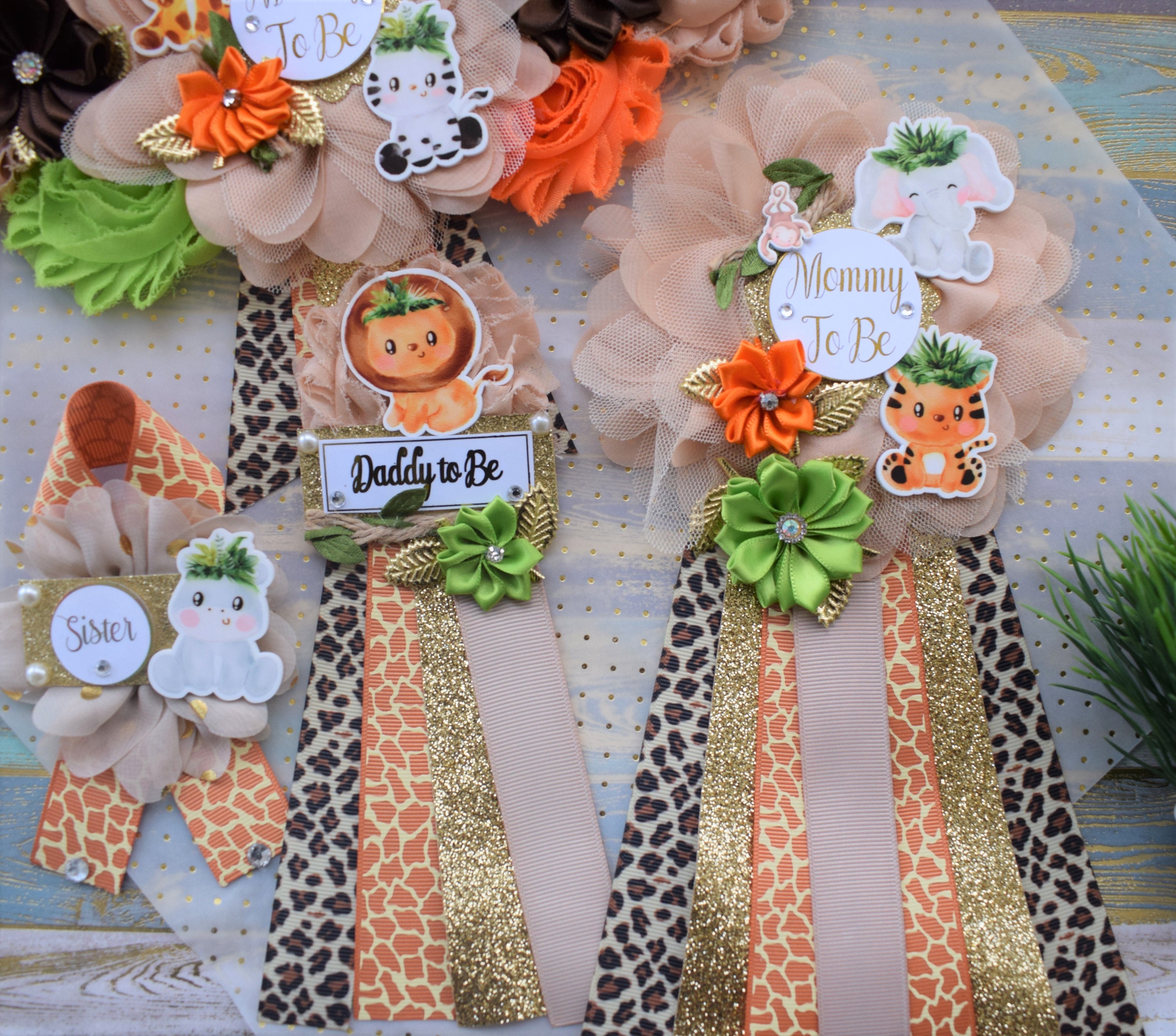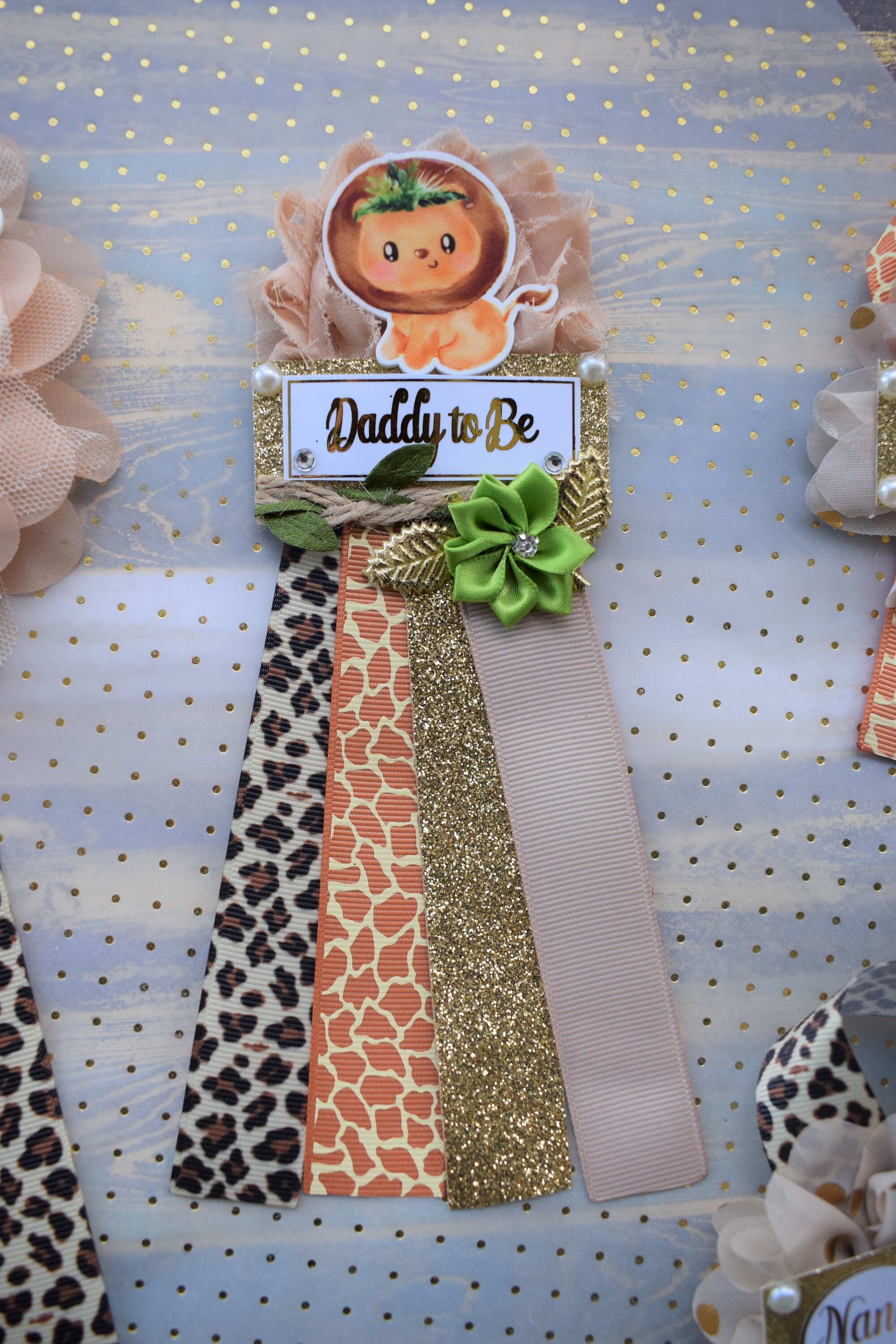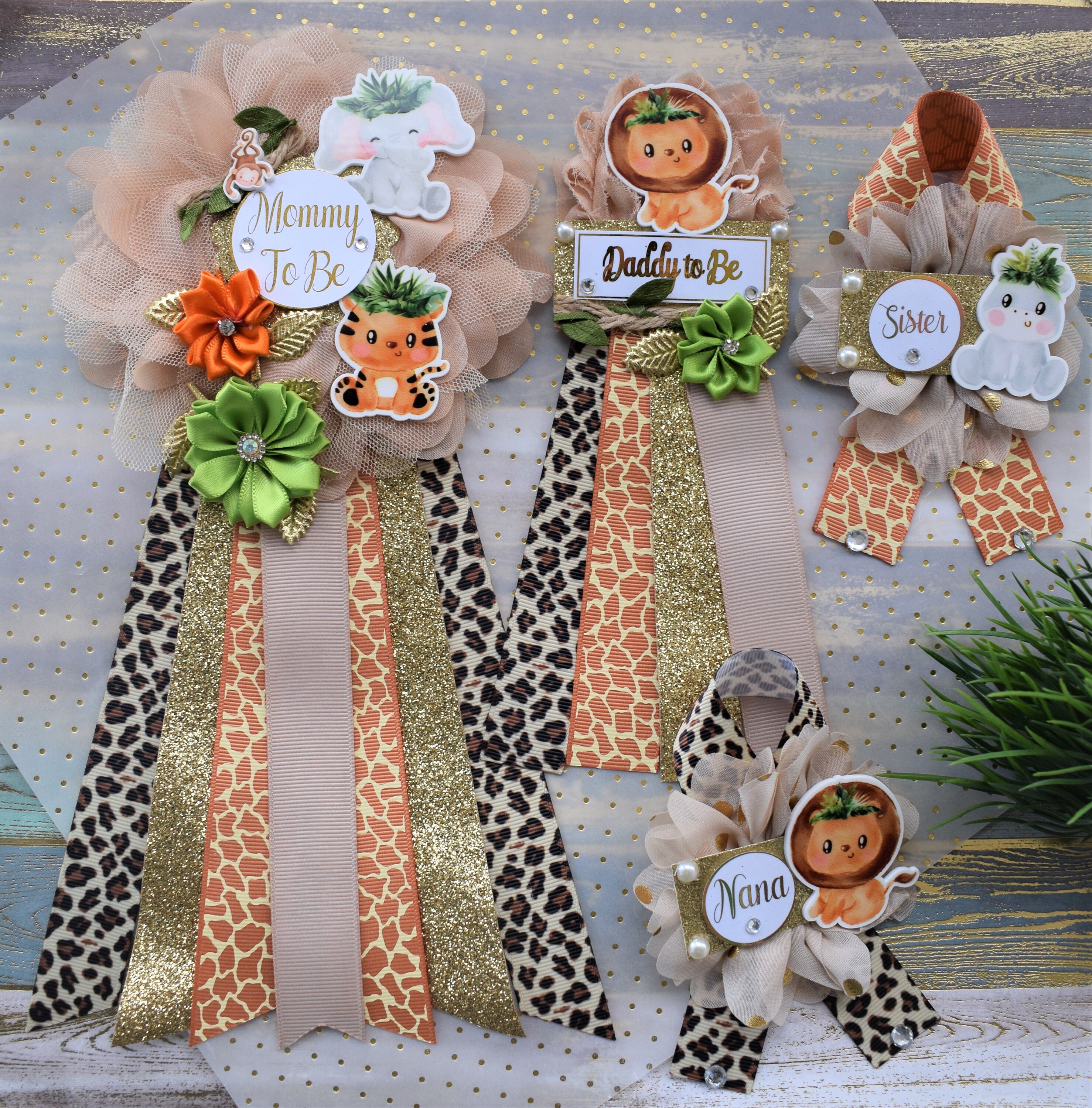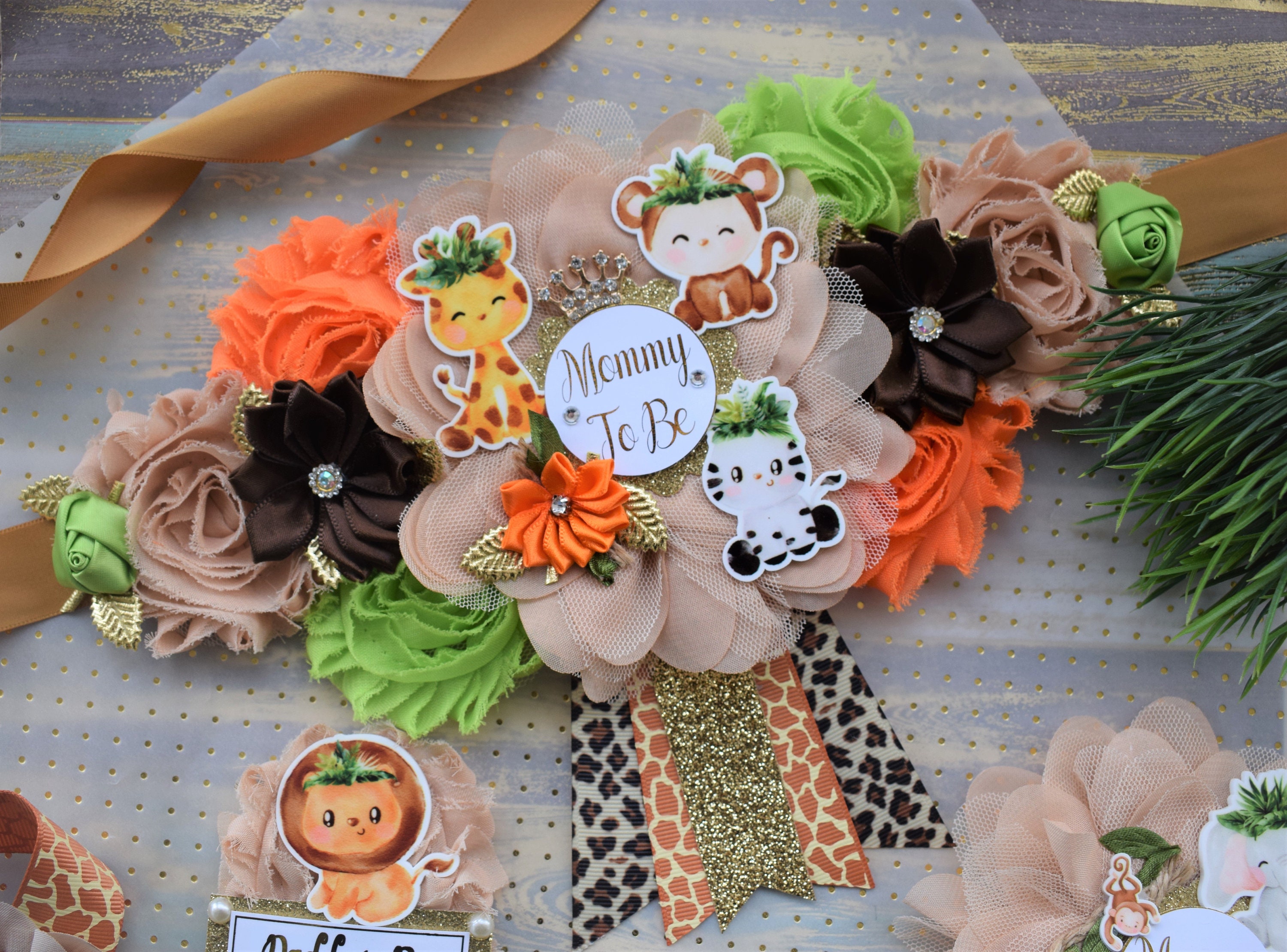 Safari Jungle Baby Shower Sash and Pin Set, Jungle Safari Baby Shower, Safari Flower Sash, Safari Corsage Pin, Safari Shower, Custom Order