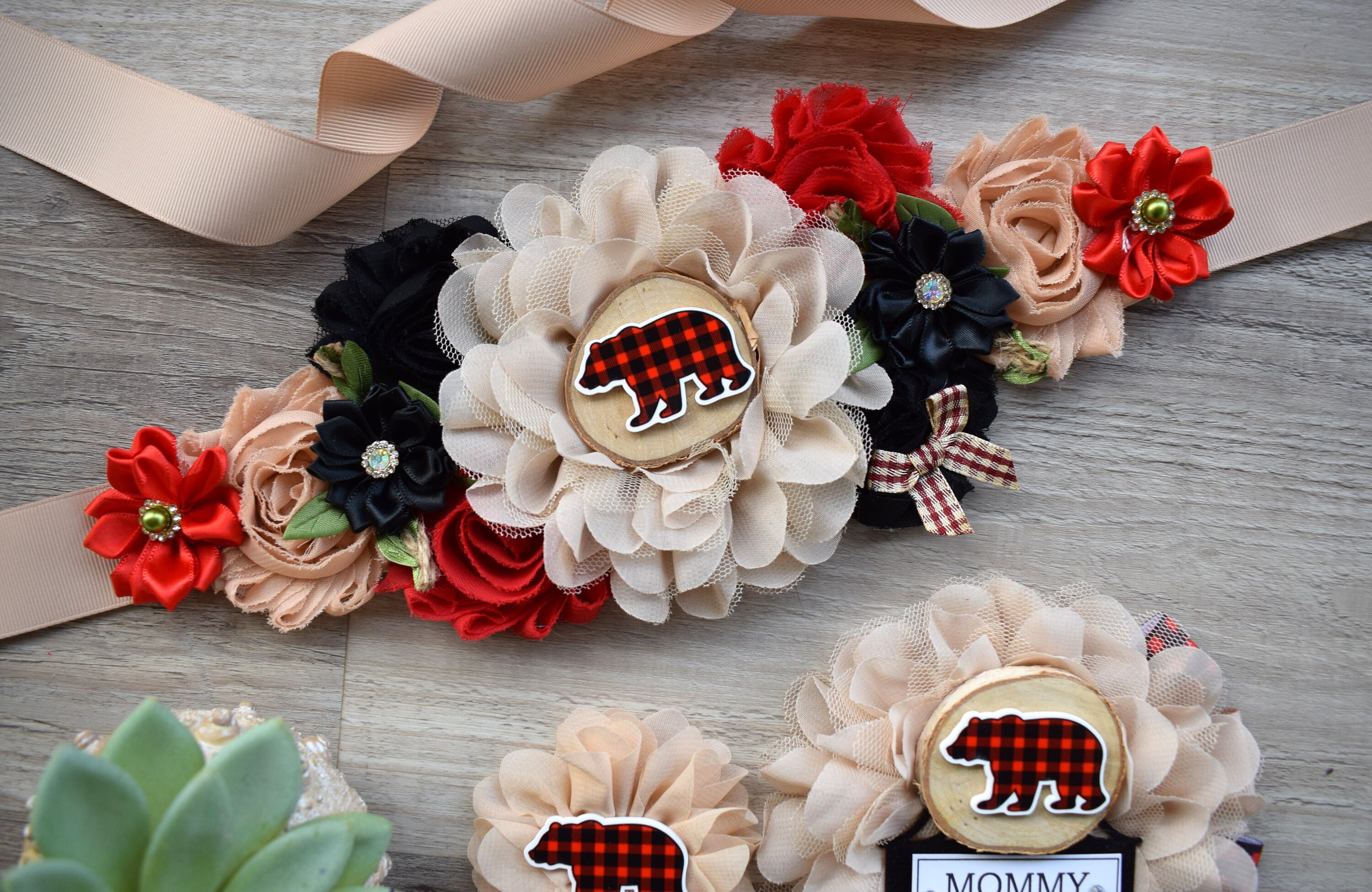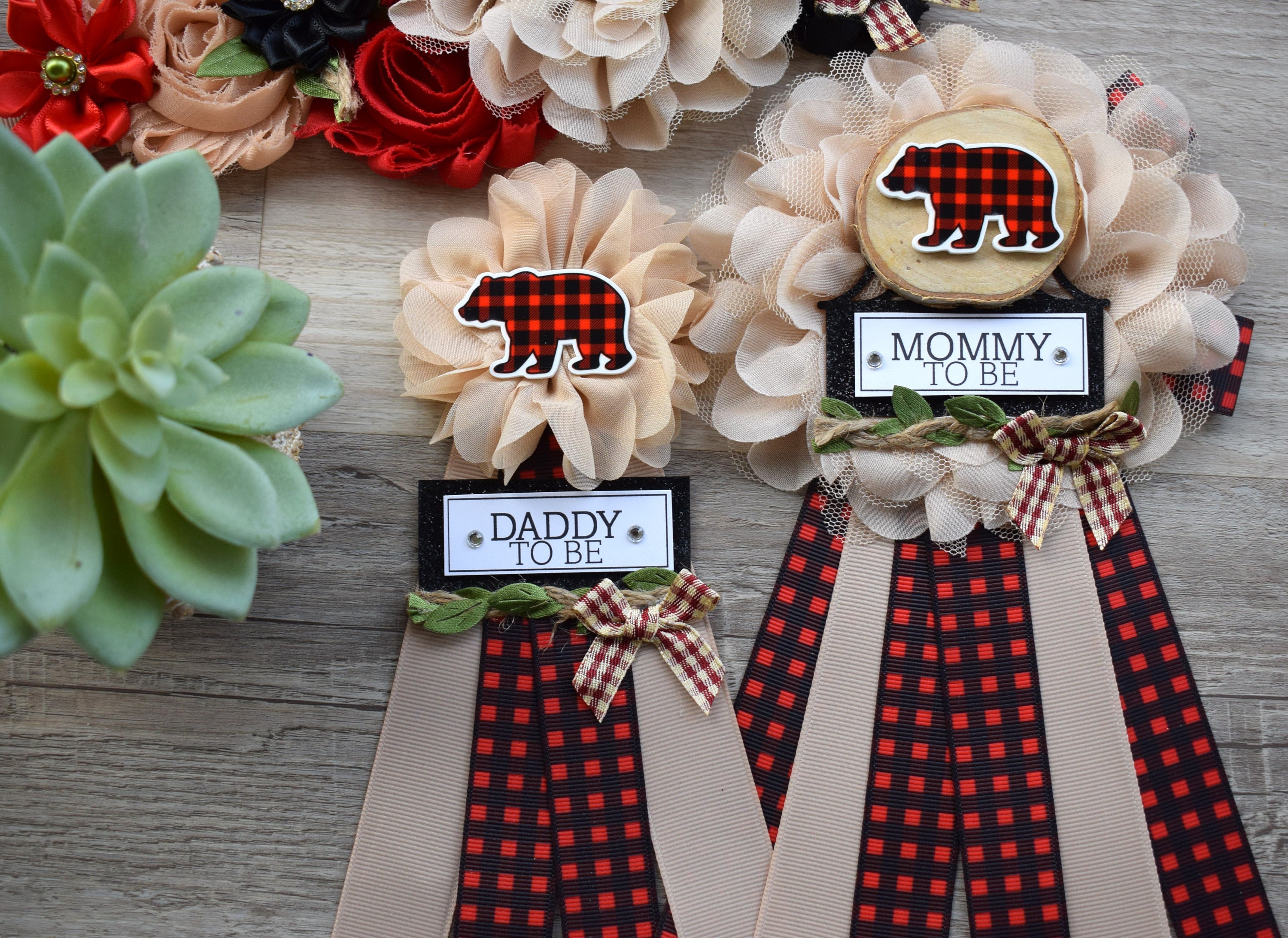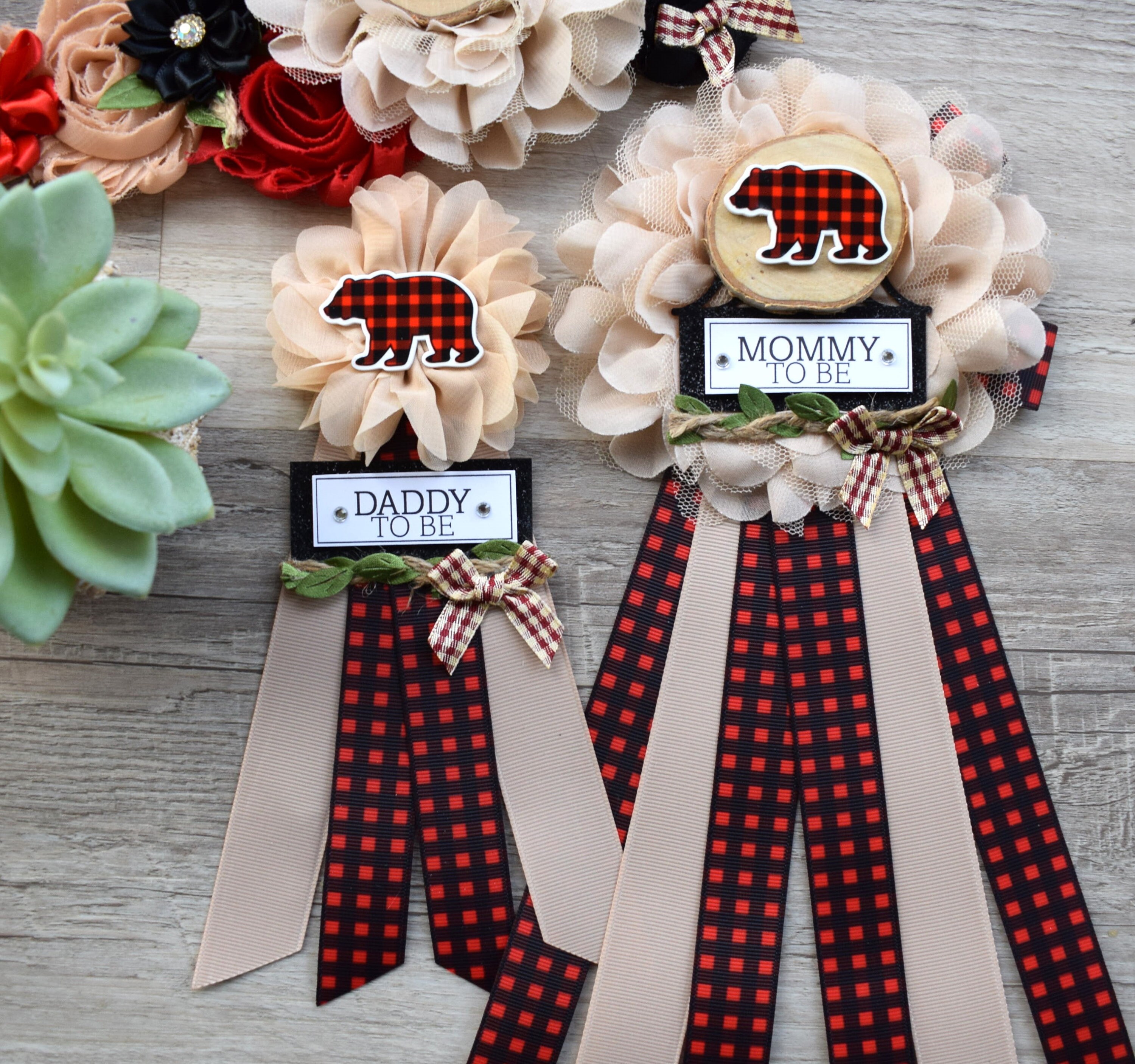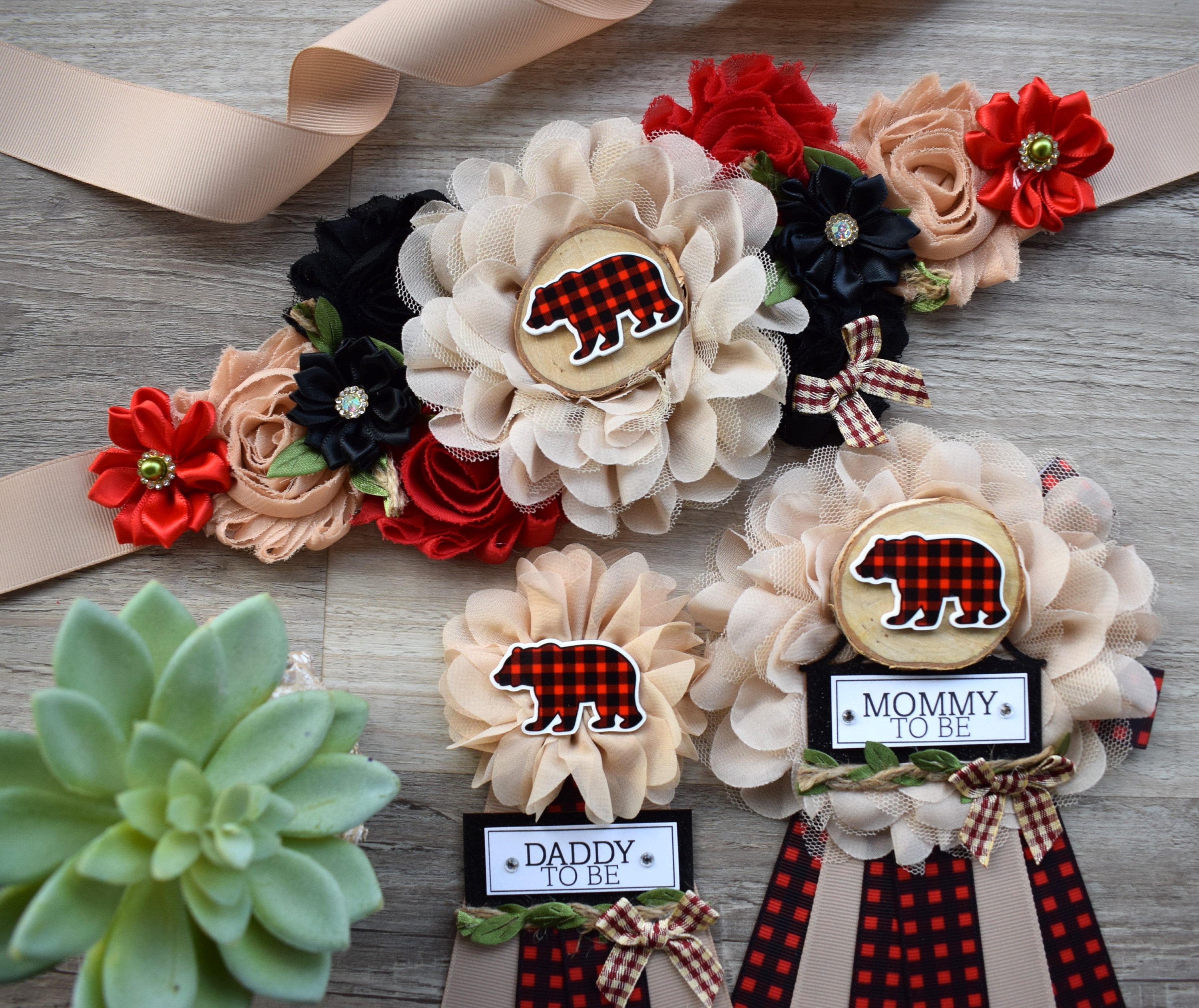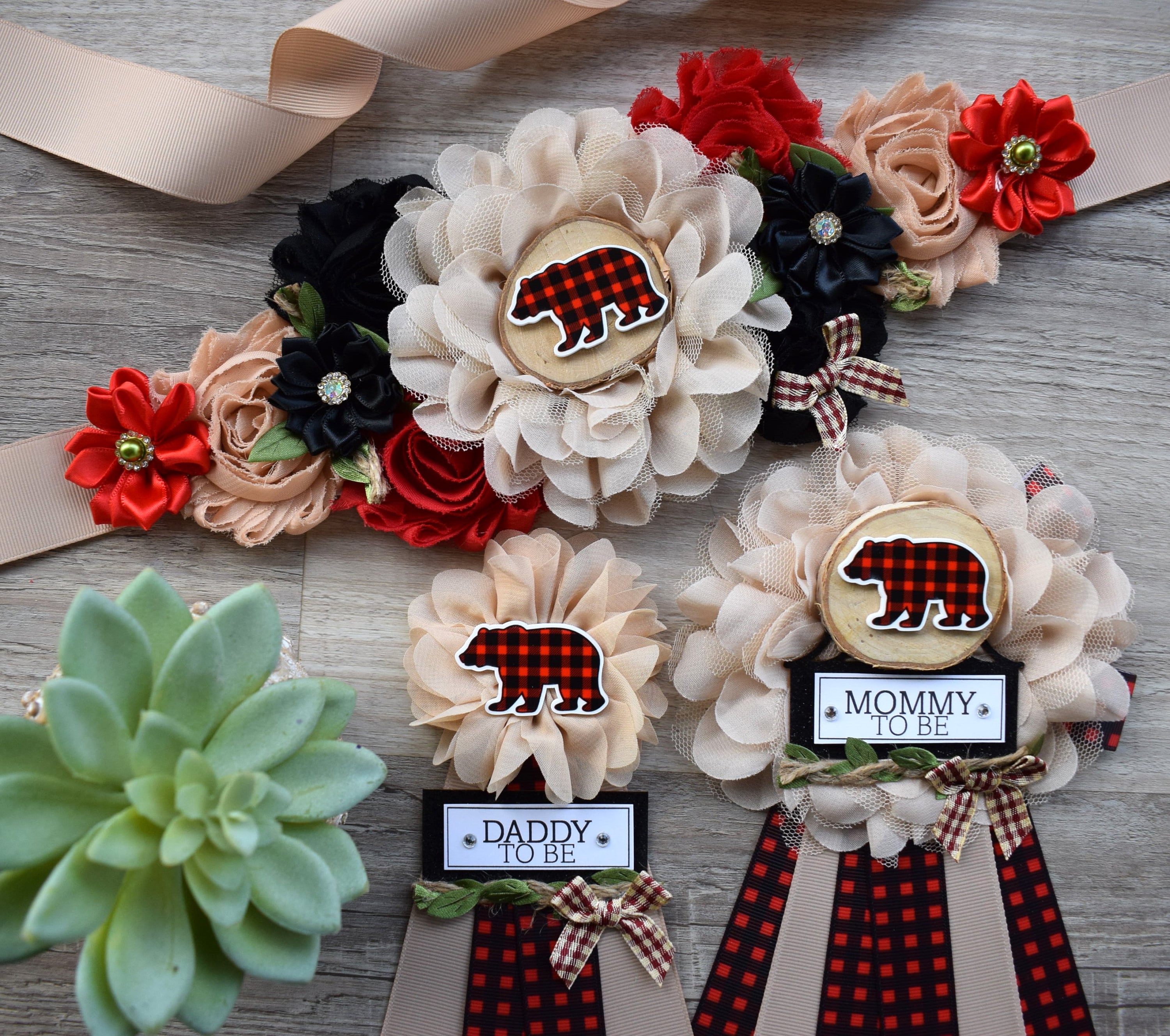 Bear Buffalo Plaid Baby Shower, Lumberjack Maternity Sash, Mommy To Be Pin, Daddy To Be Pin, Baby Shower Gift, Custom Order Welcome