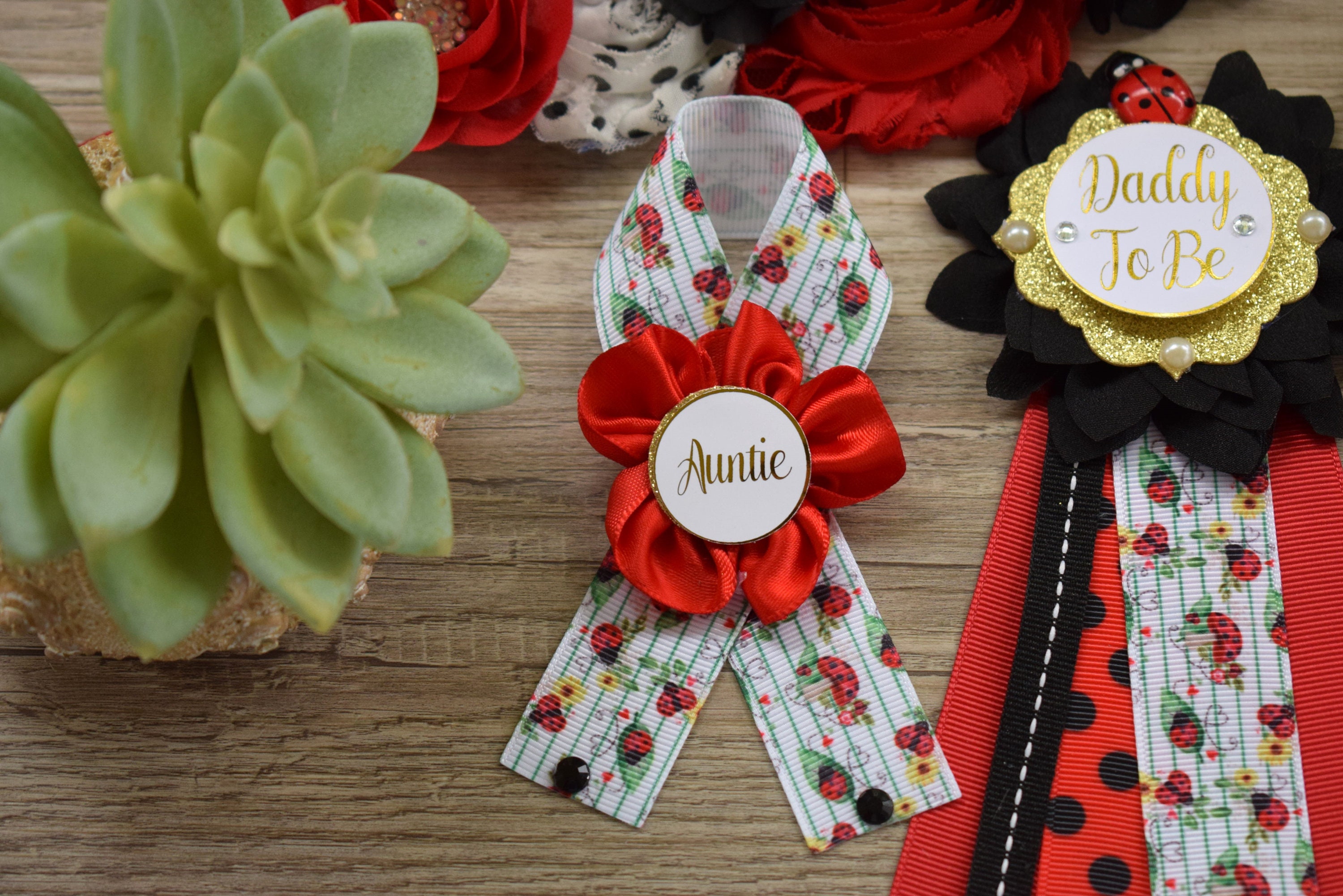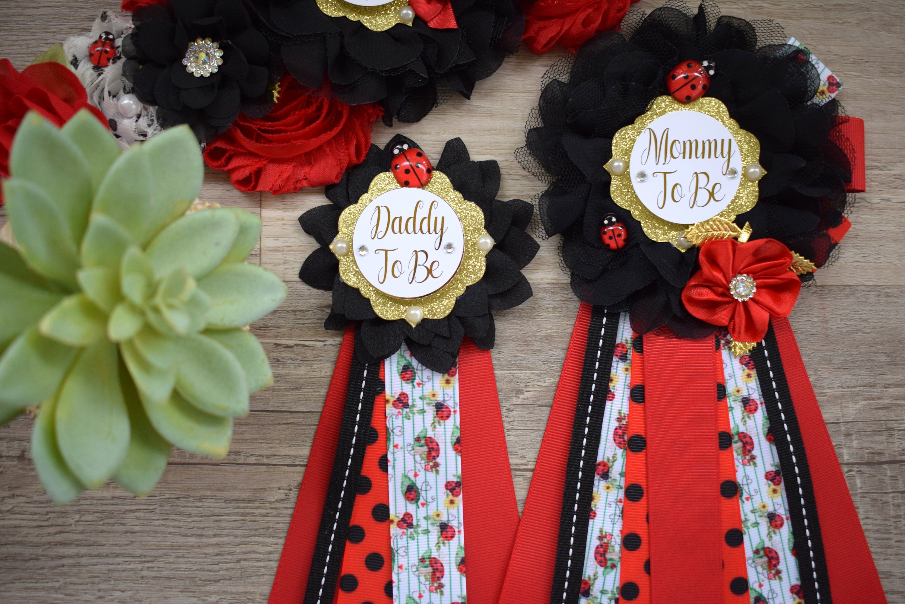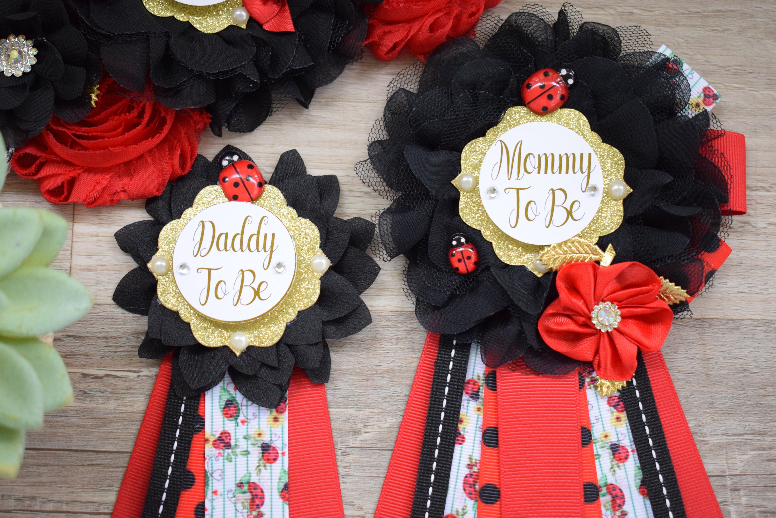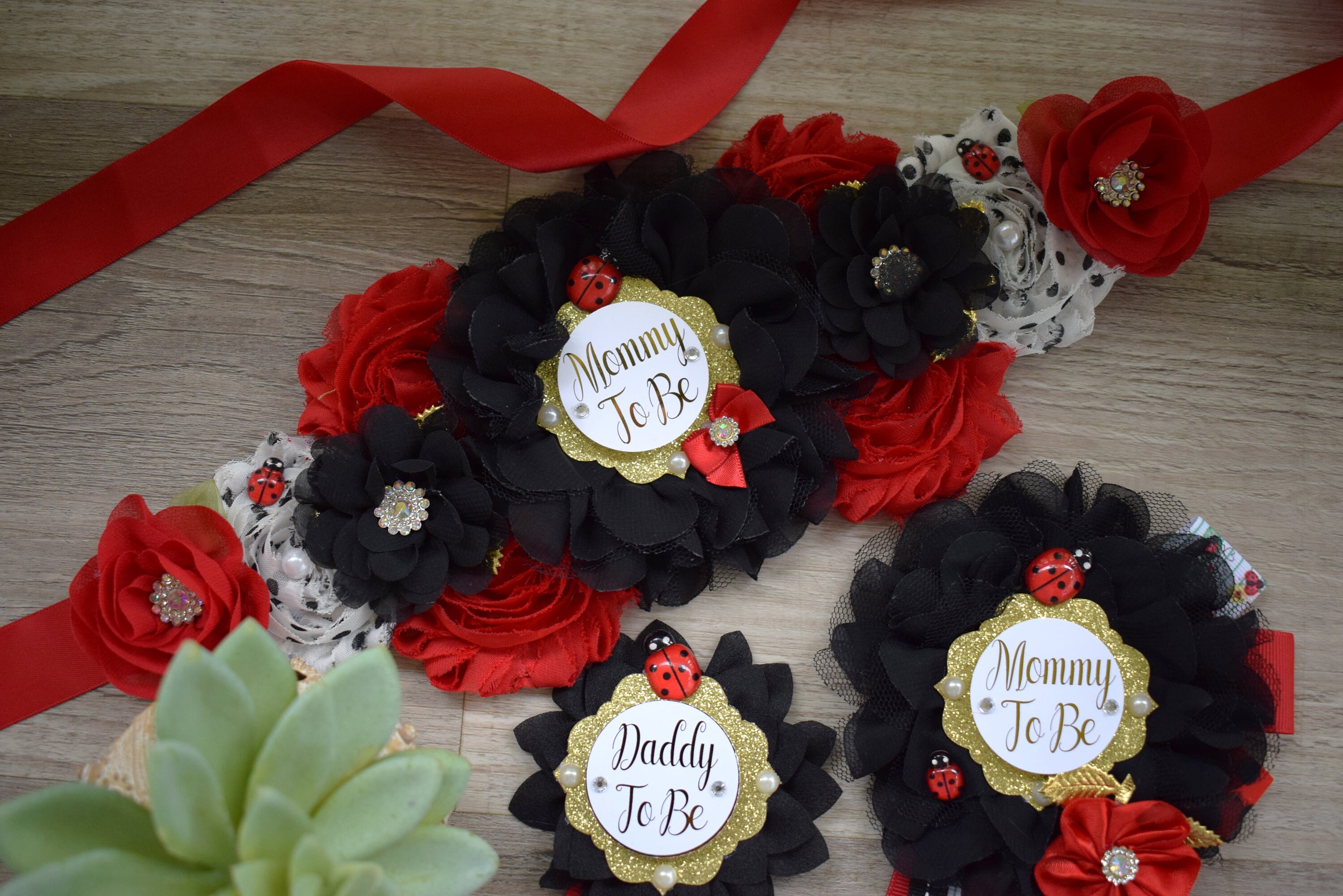 Ladybug Baby Shower, Lady Bug Maternity Sash, Bug Mommy To Be Pin, Red Black Daddy To Be Pin, Baby Shower Gift, Custom