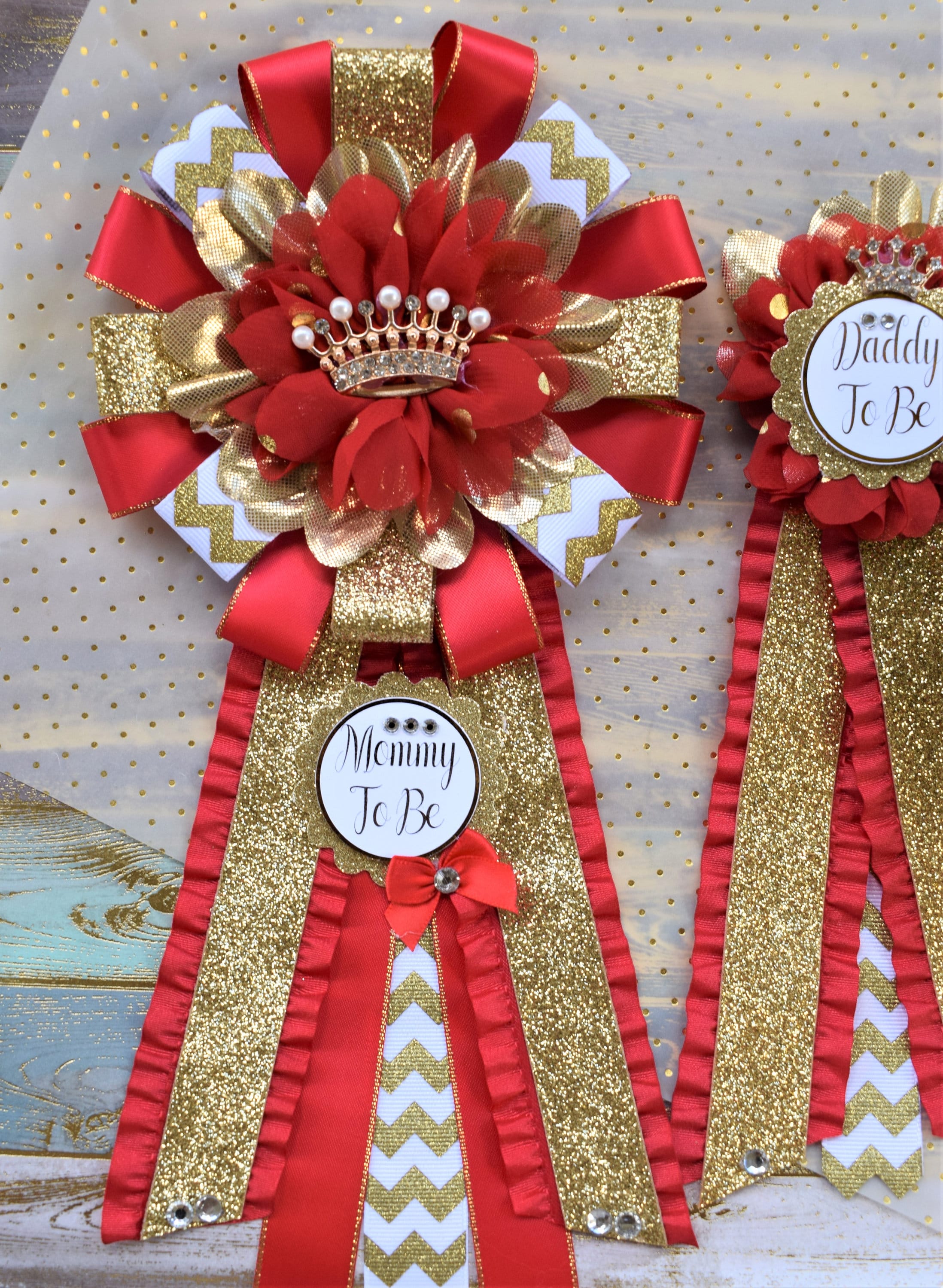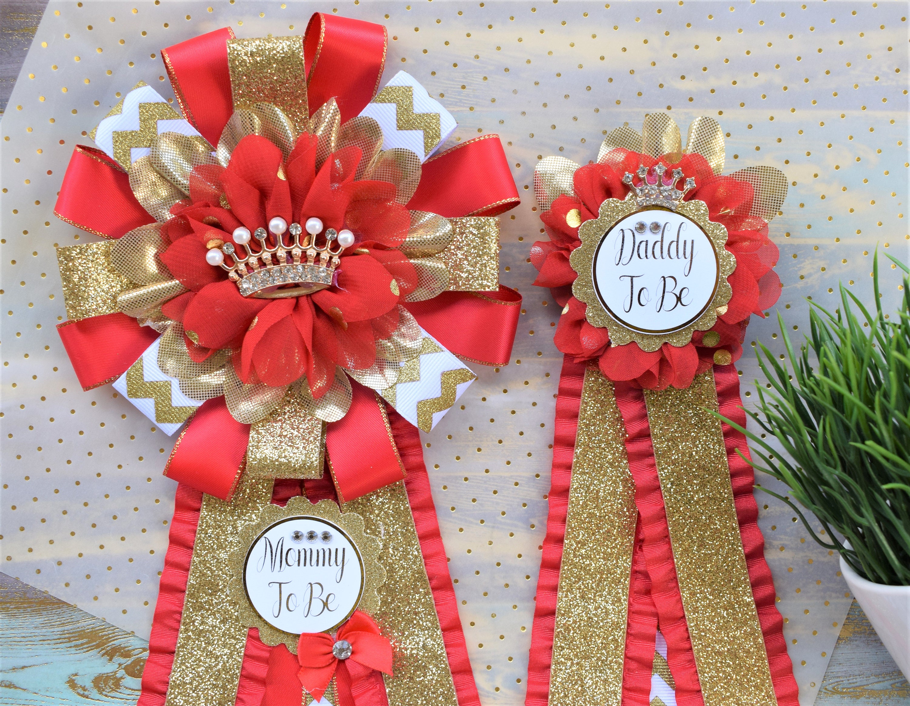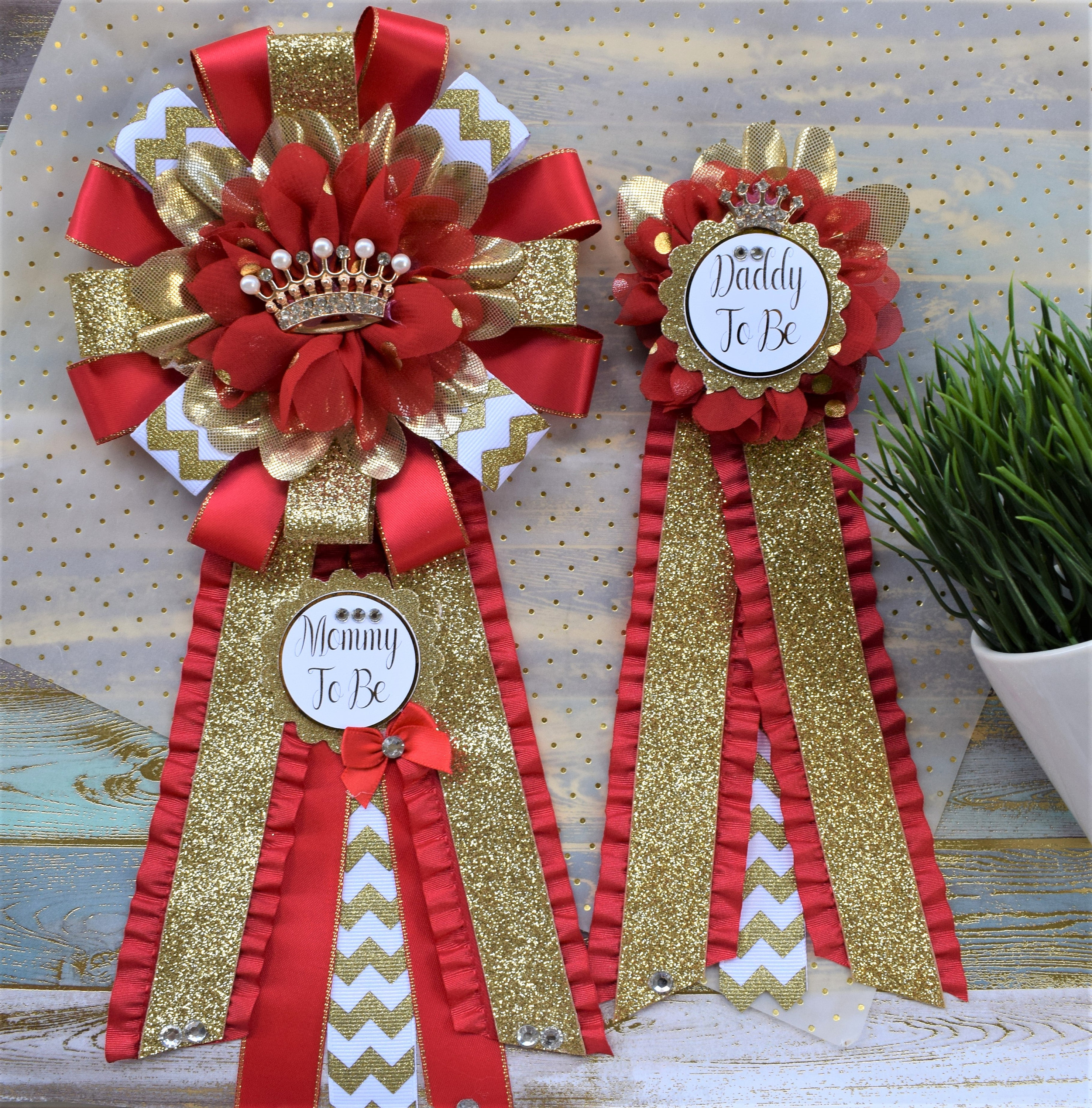 These Gold & Red Prince Corsage Pins were made especially for a Baby Shower or a Photo Prop.