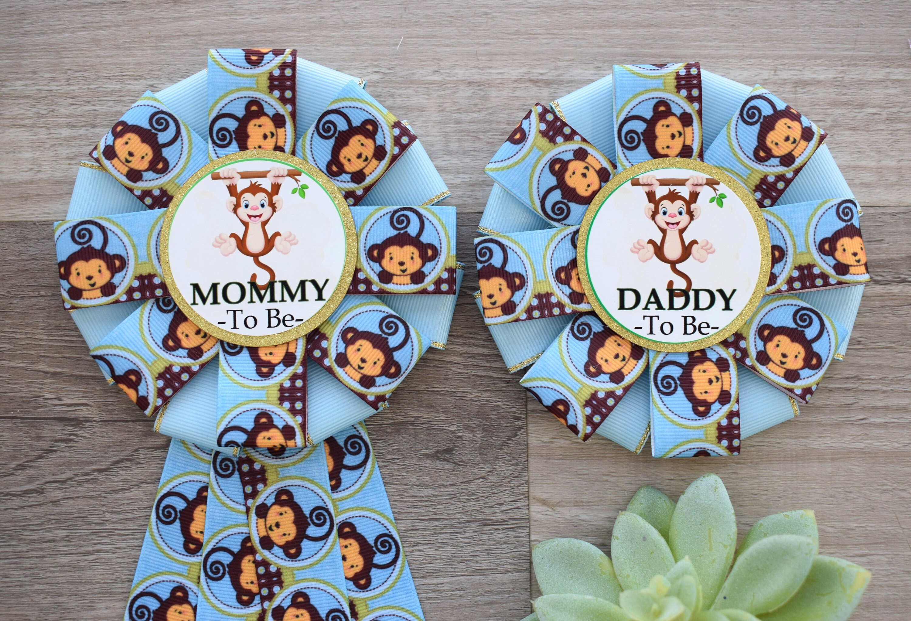 Monkey Mommy to Be Baby Shower Pin, Monkey Daddy to Be Corsage Pin, Monkey Baby Shower, Litter Monkey Mommy to Be Pin, Green Pin, Custom Pin