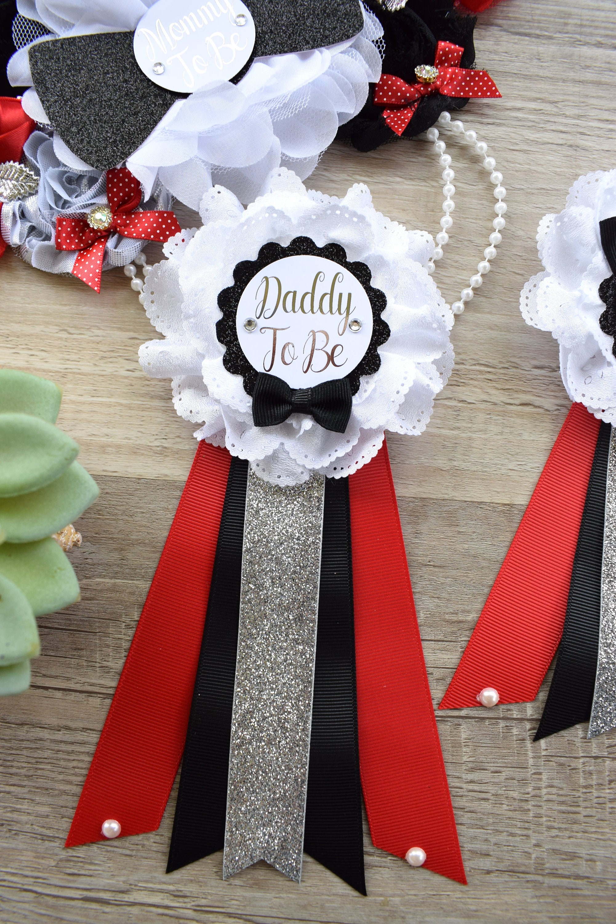 *Daddy to Be Pin: This pin measures approx. 8" from top of the flower to bottom of the ribbon.
