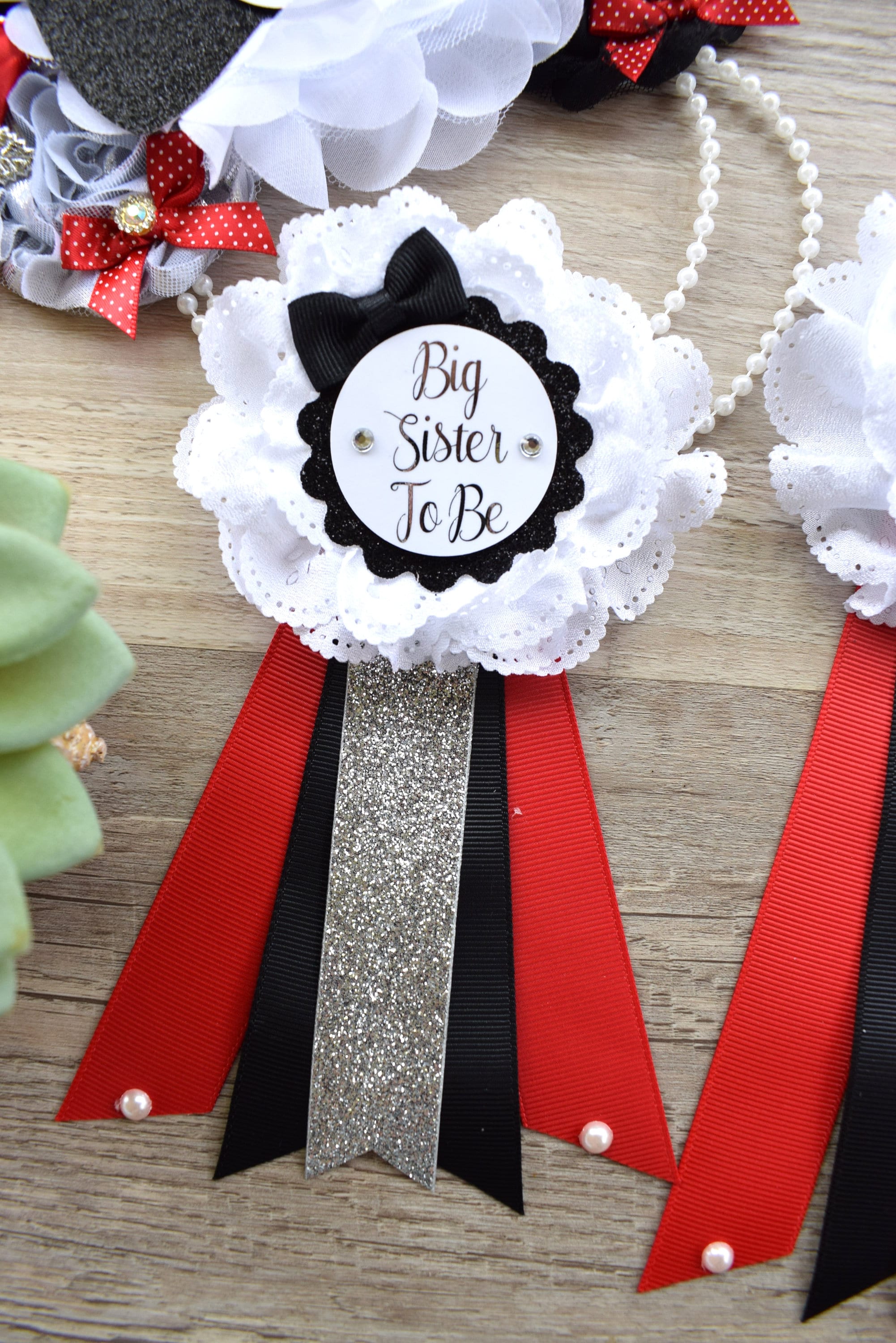 *Sister to Be Pin: This pin measures approx. 6" inch from top of the flower to bottom of the ribbon.