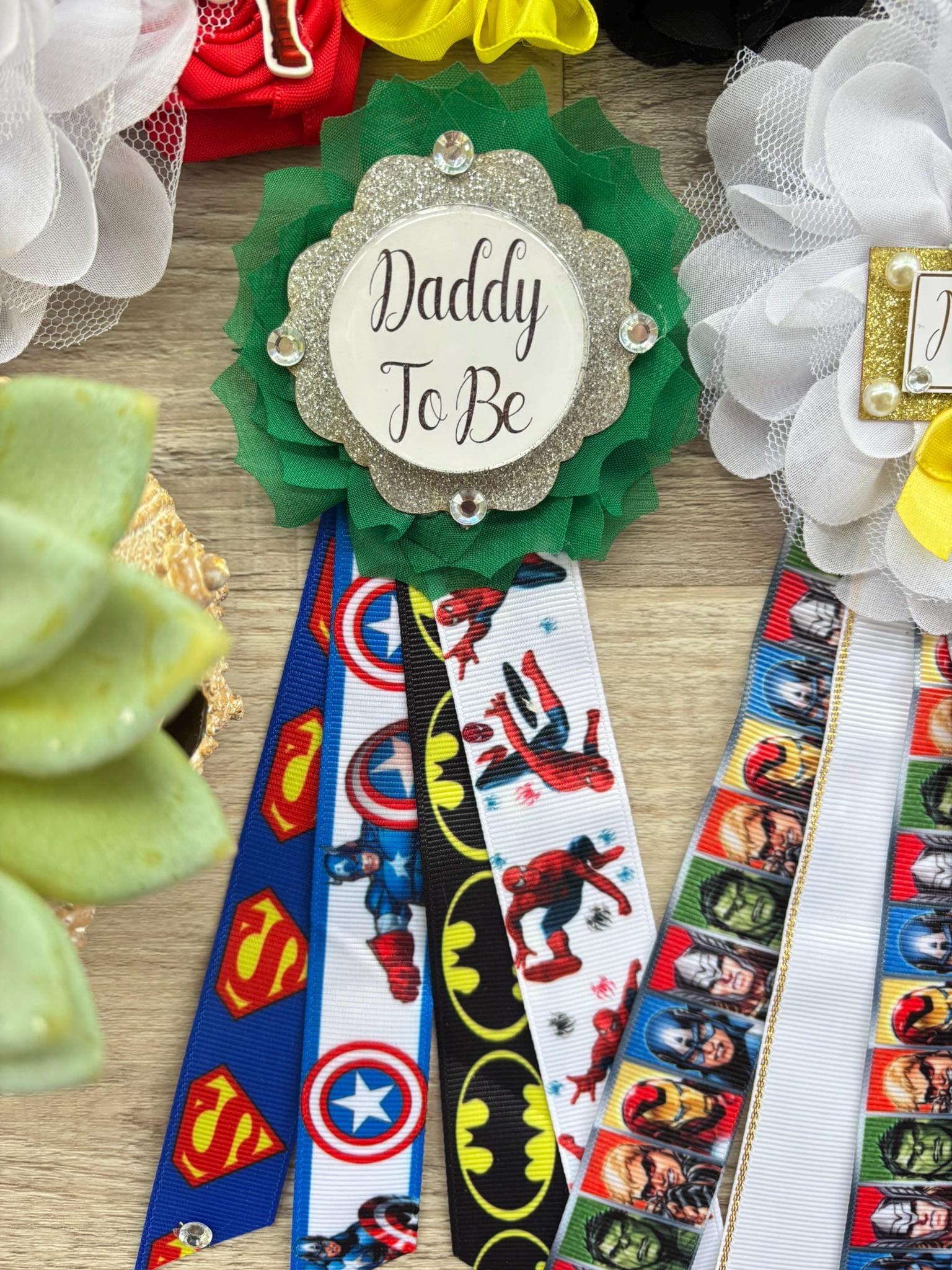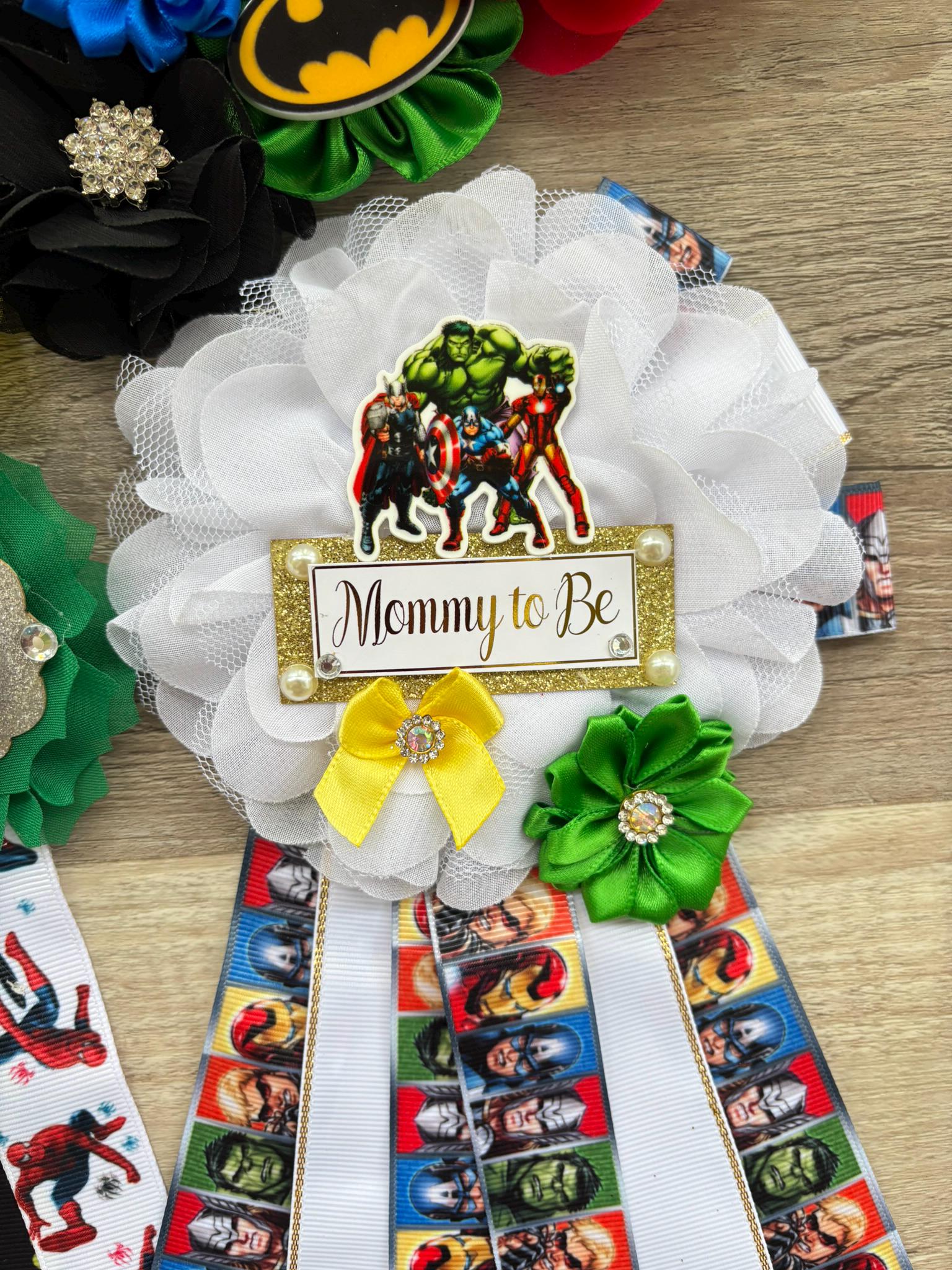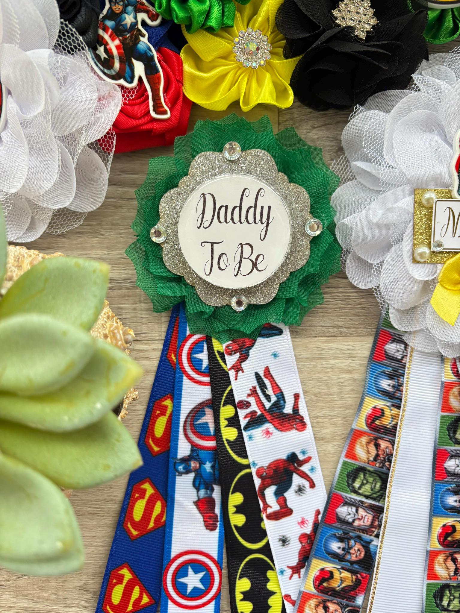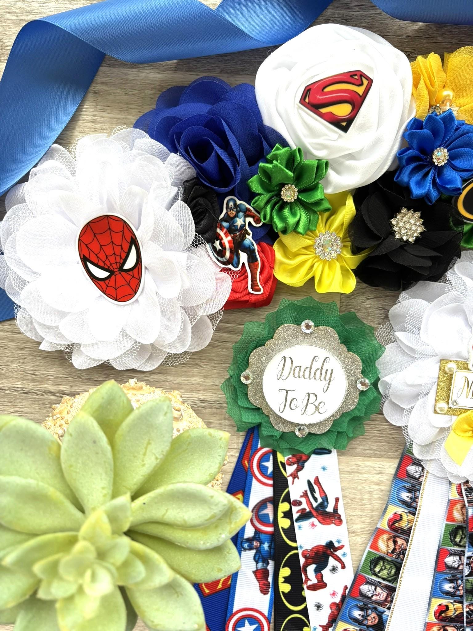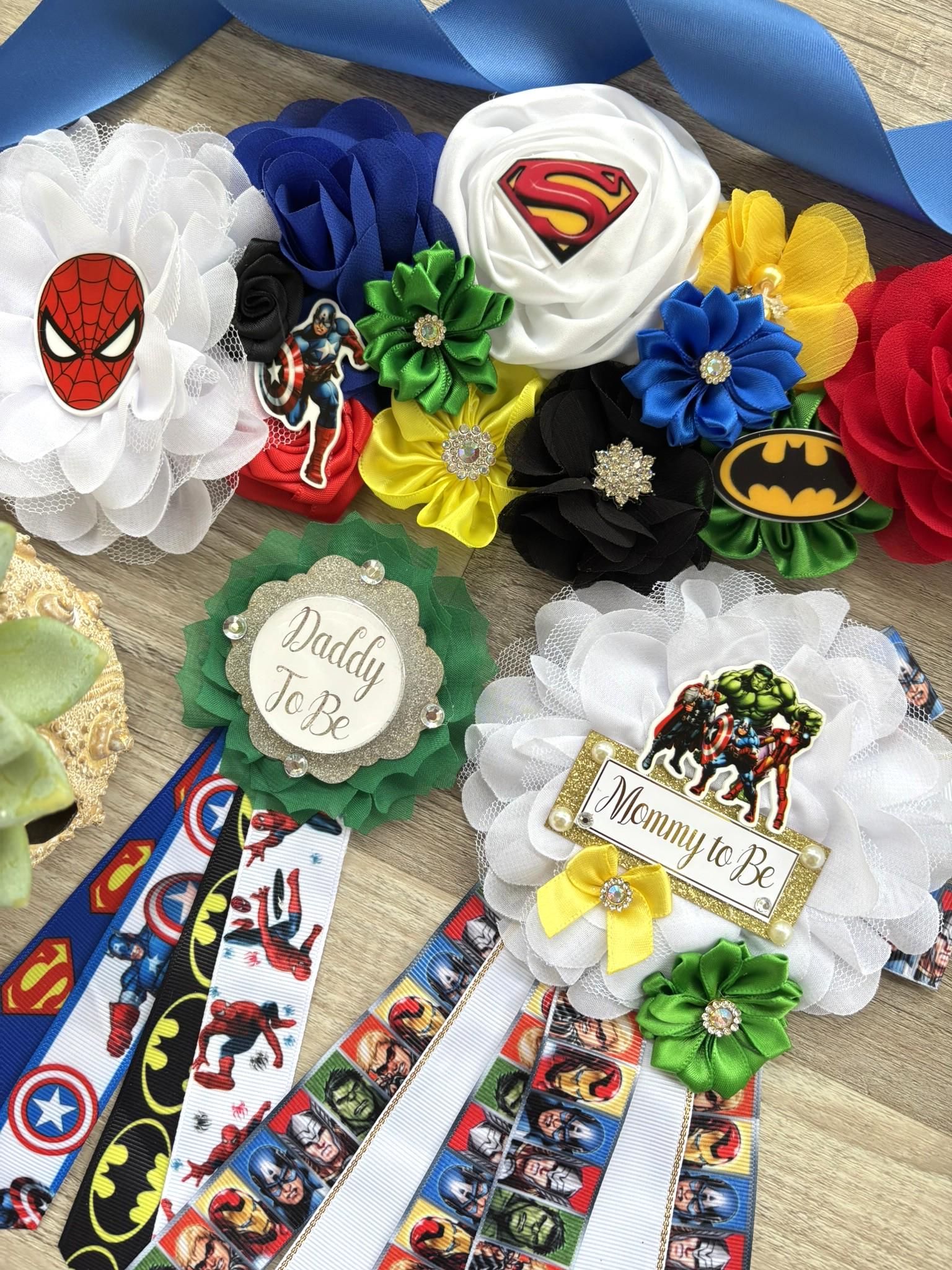 This Hero Sash and Pins set is made especially for a Baby Shower or a Photo Prop.