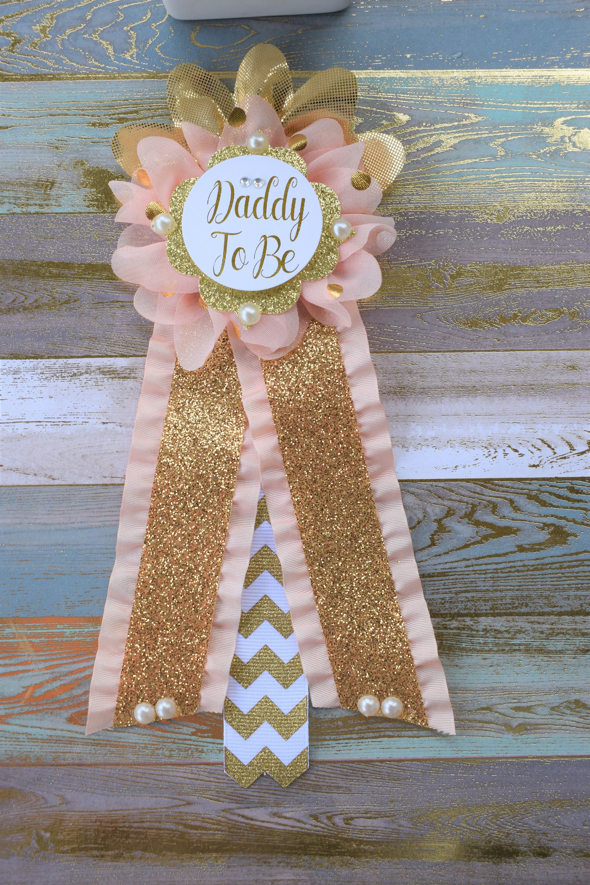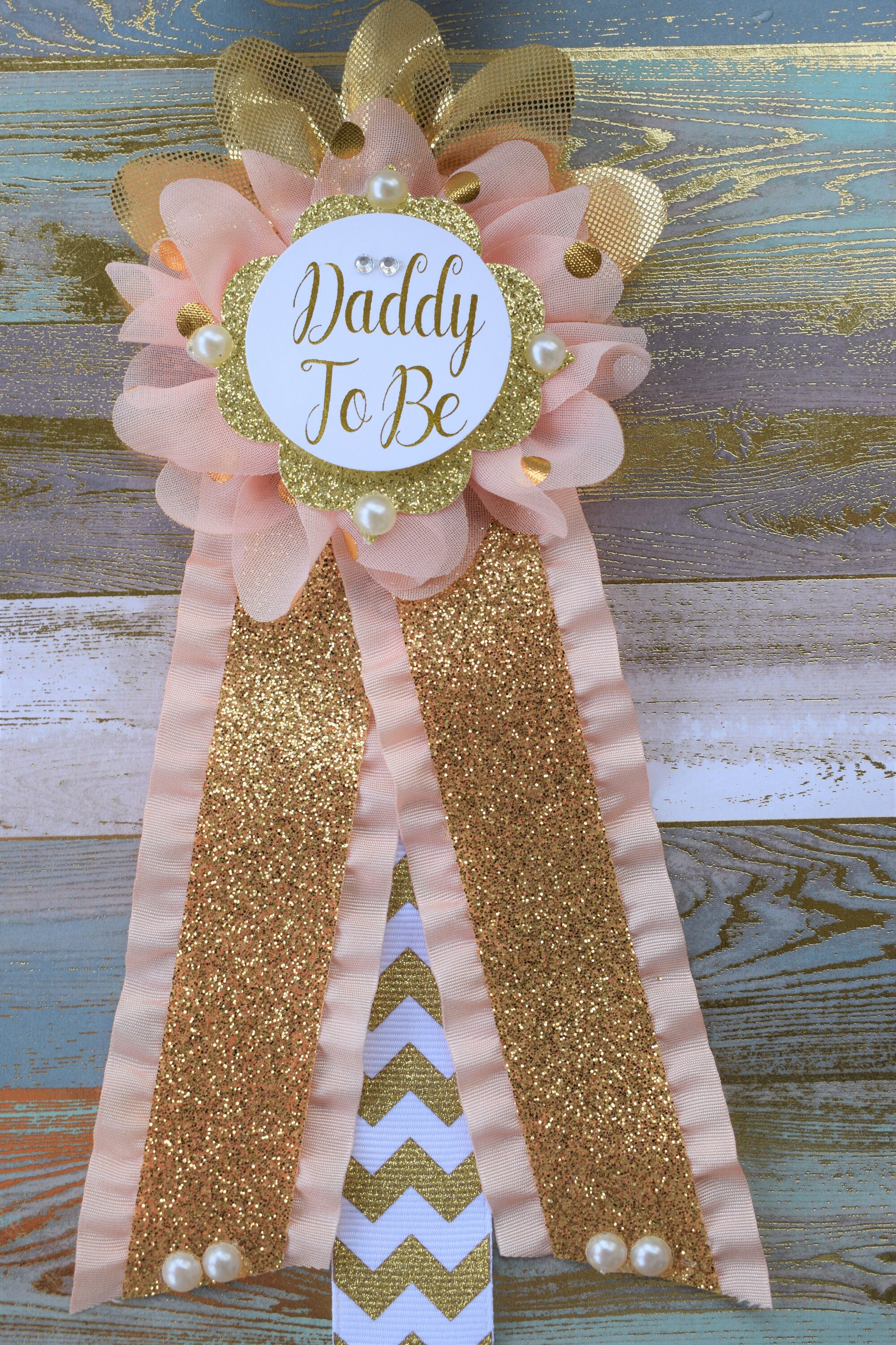 ☆Daddy to Be Pin: This pin measures approx. 7" from top of the flower to bottom of the ribbon.