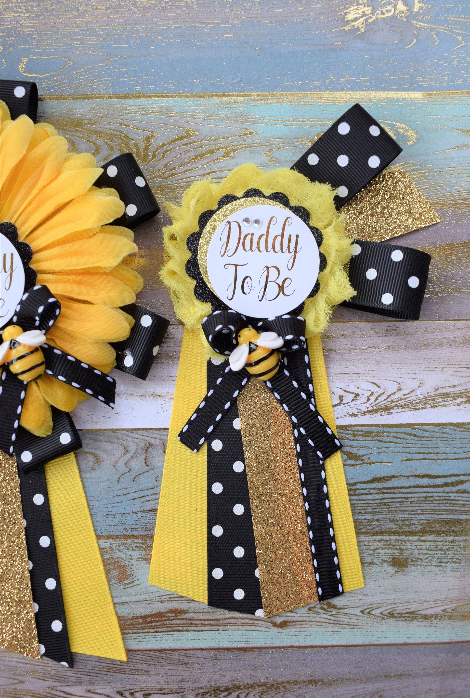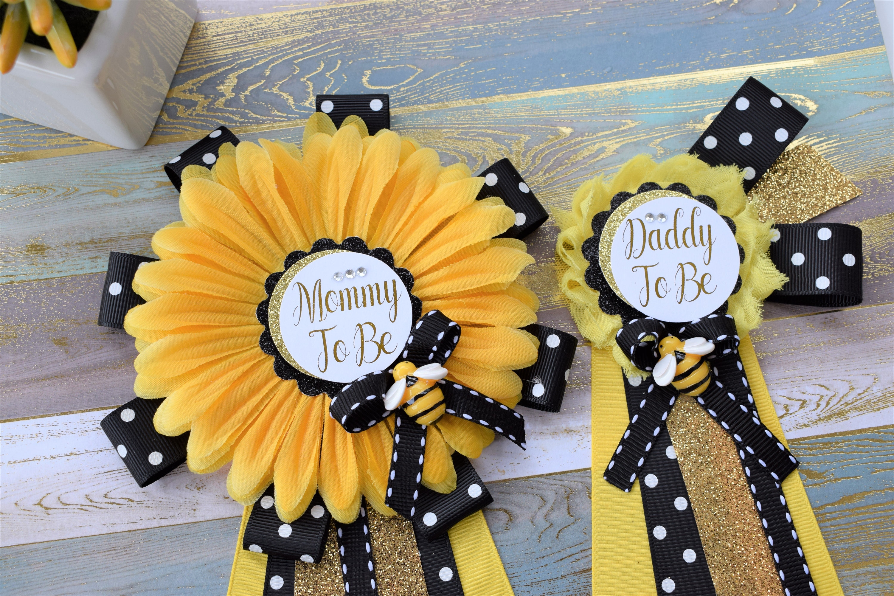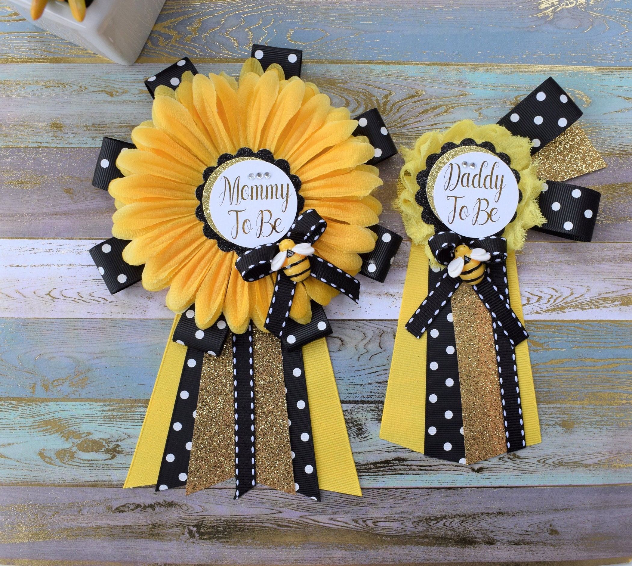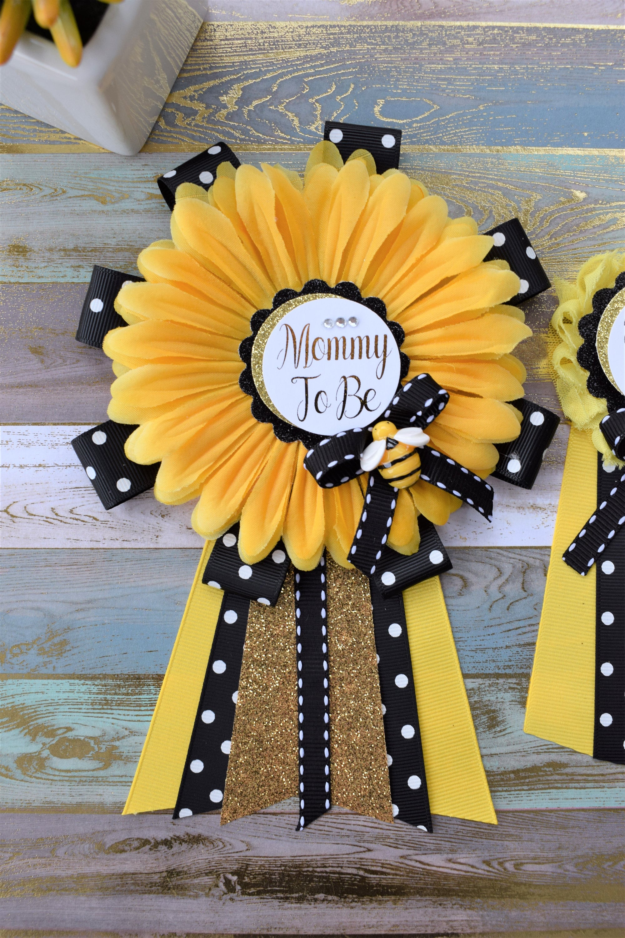 Sunflower Baby Shower, Yellow Black Flower Corsage Pin, Mommy To Be, Daddy To Be, Gender Reveal Baby Shower, Bumble Bee & Sunflower Theme