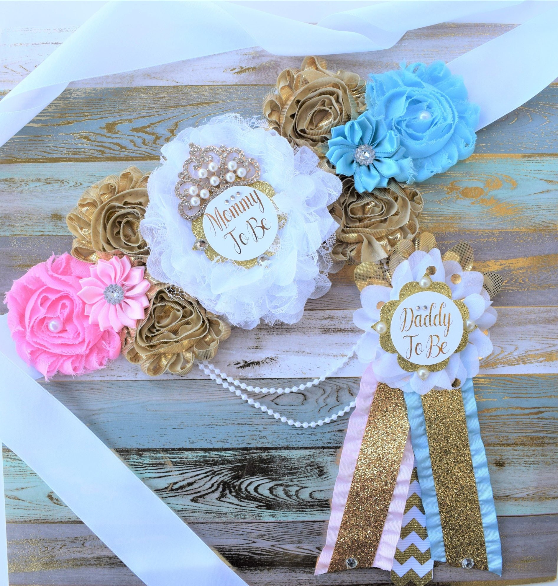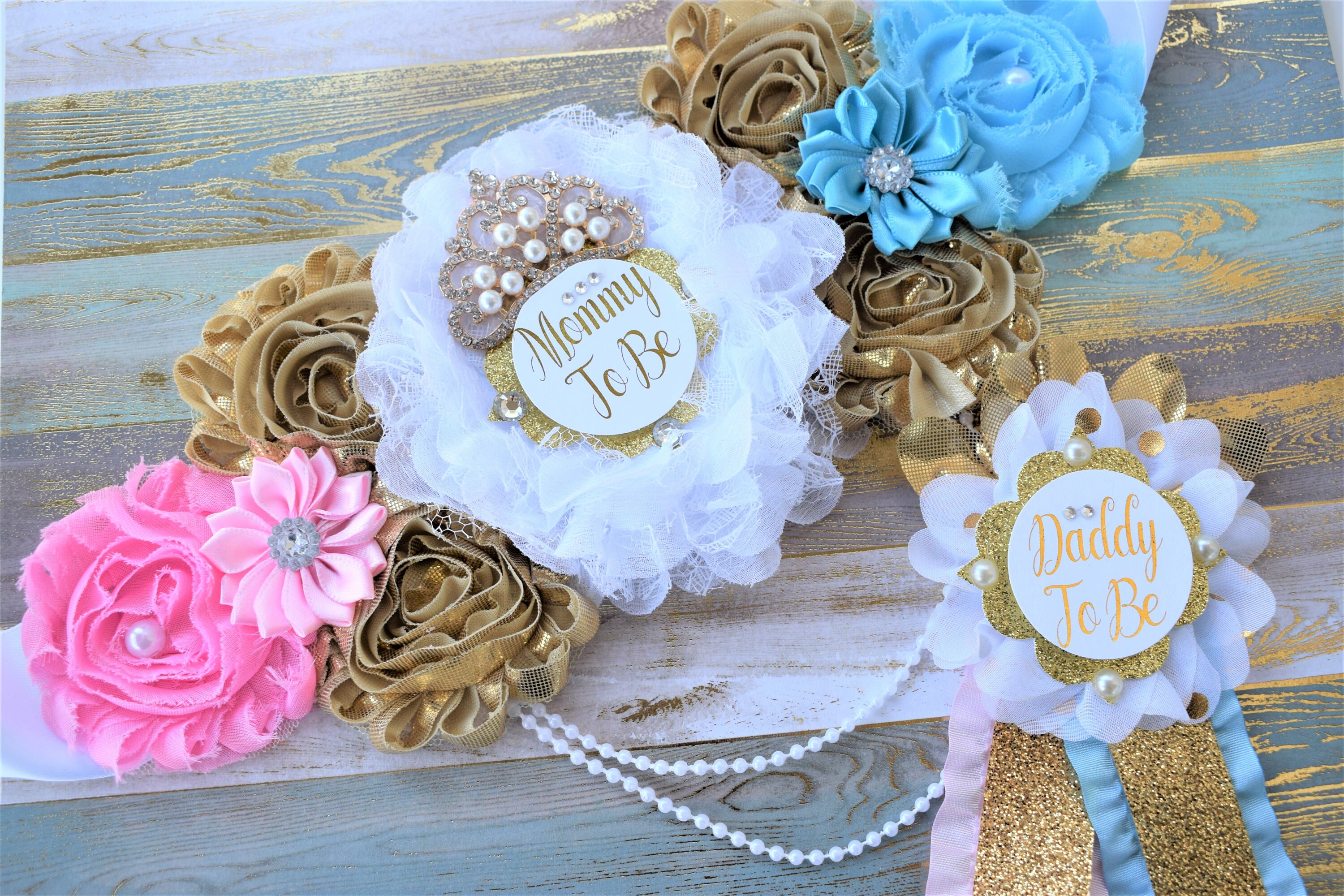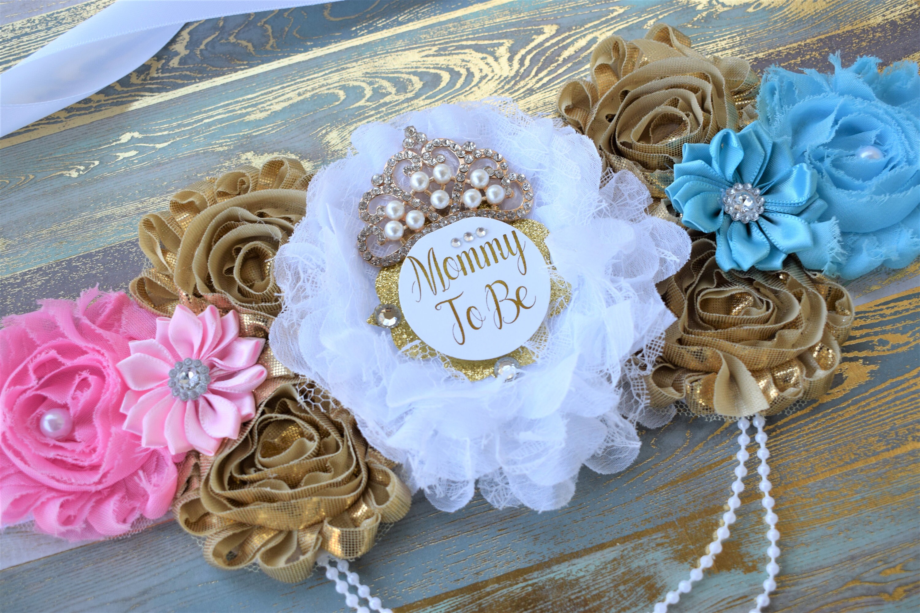 Gender Reveal Baby Shower, Pink Blue Maternity Sash, Reveal Flower Sash, Gender Reveal Belly Sash, Gender Reveal Baby Shower, Gender Reveal