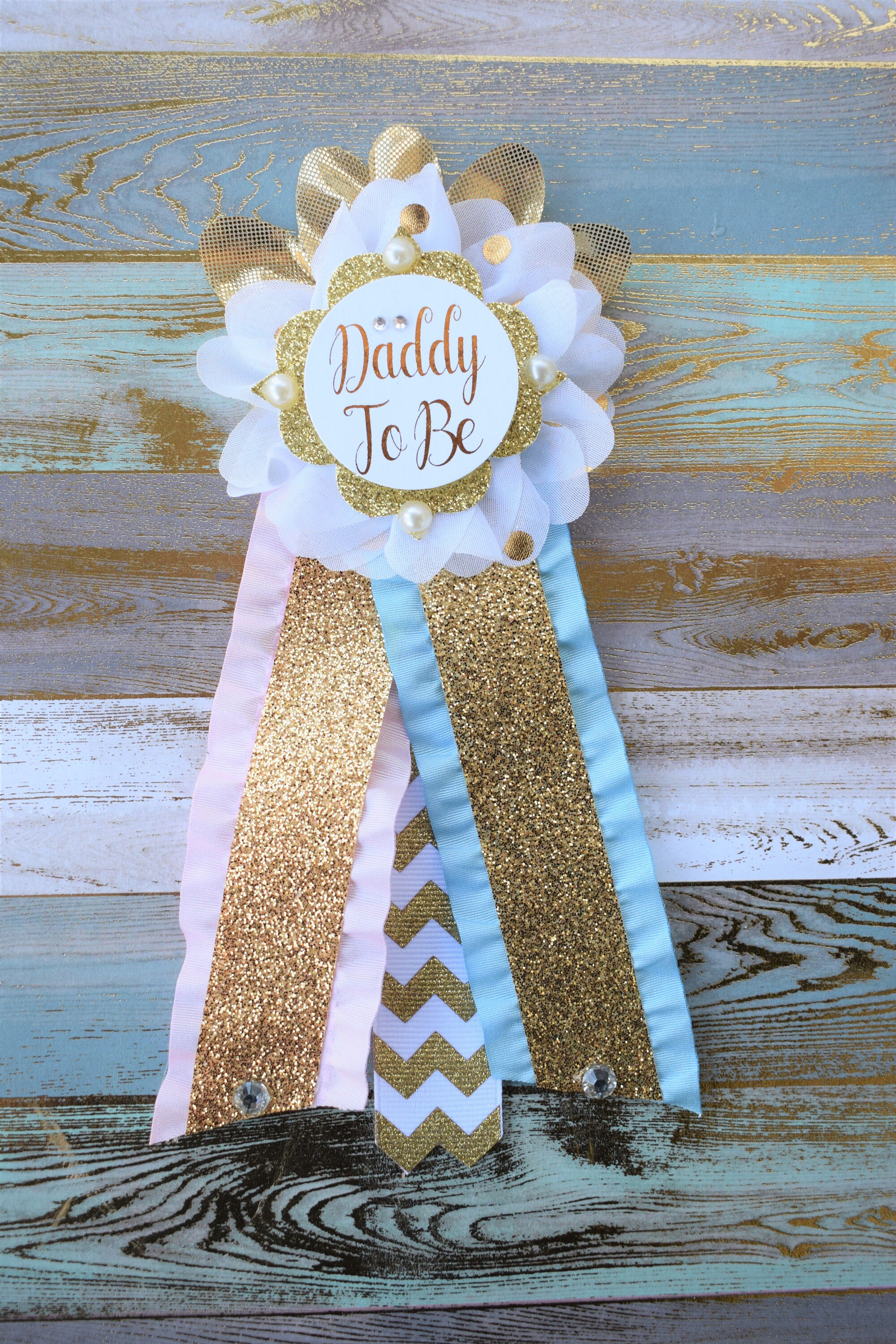 ☆Daddy to Be Pin: This pin measures approx. 7" from top of the flower to bottom of the ribbon.