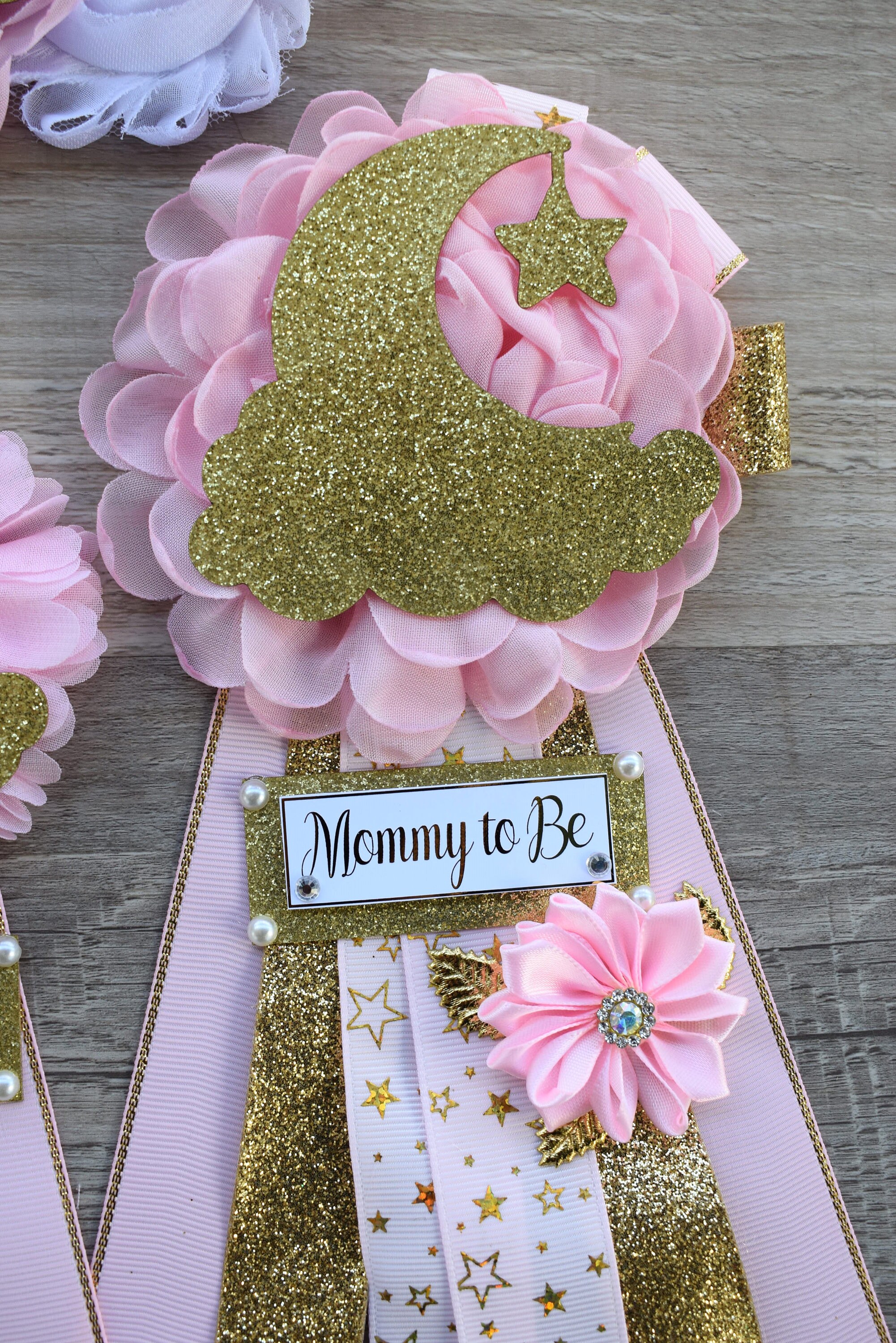 ☆Mommy to Be Pin: This pin measures approx. 8'' from top of the flower to bottom of the ribbon.