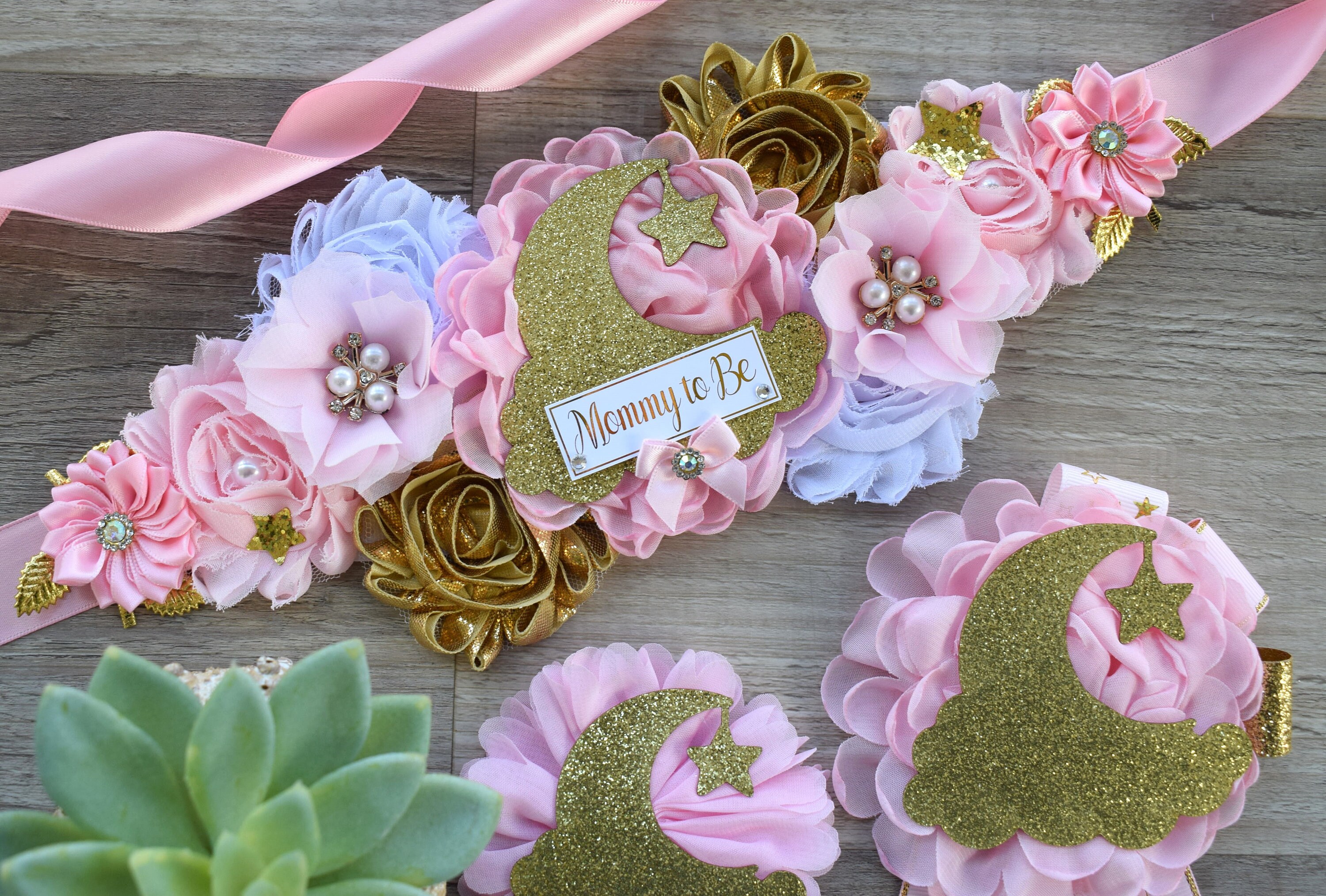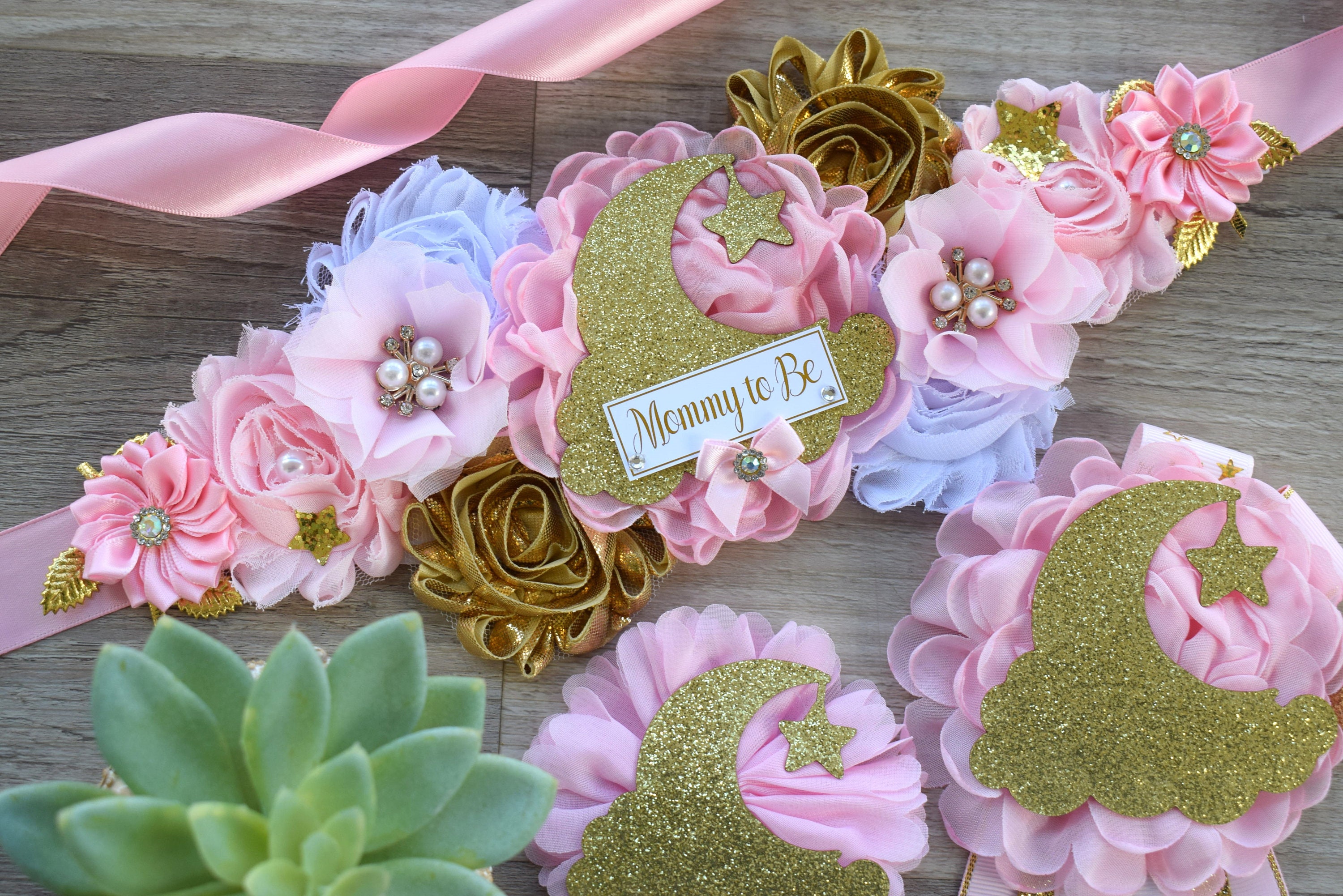 This Pink & Gold Princess Flower Sash is made especially for a Baby Shower or a Photo Prop.