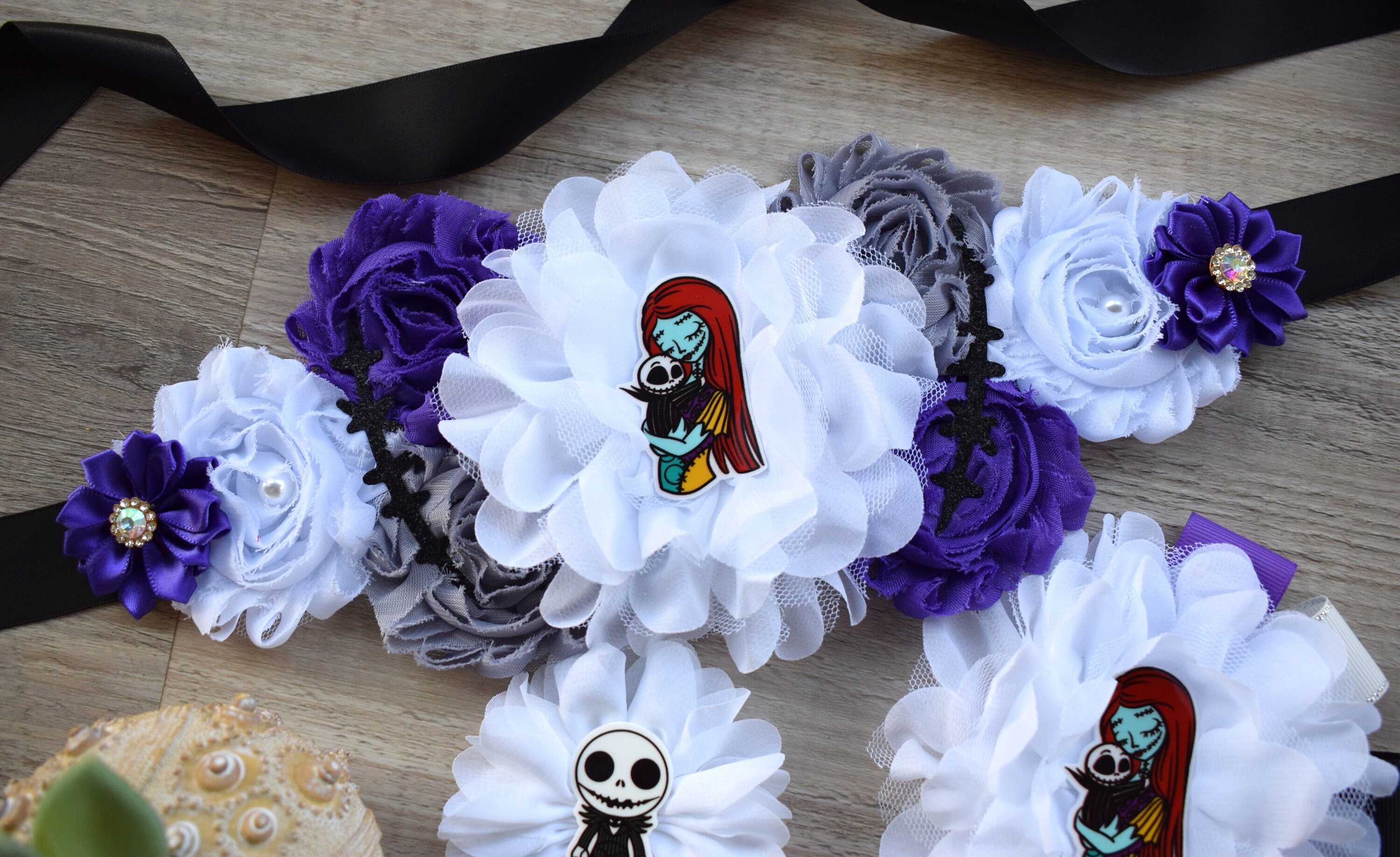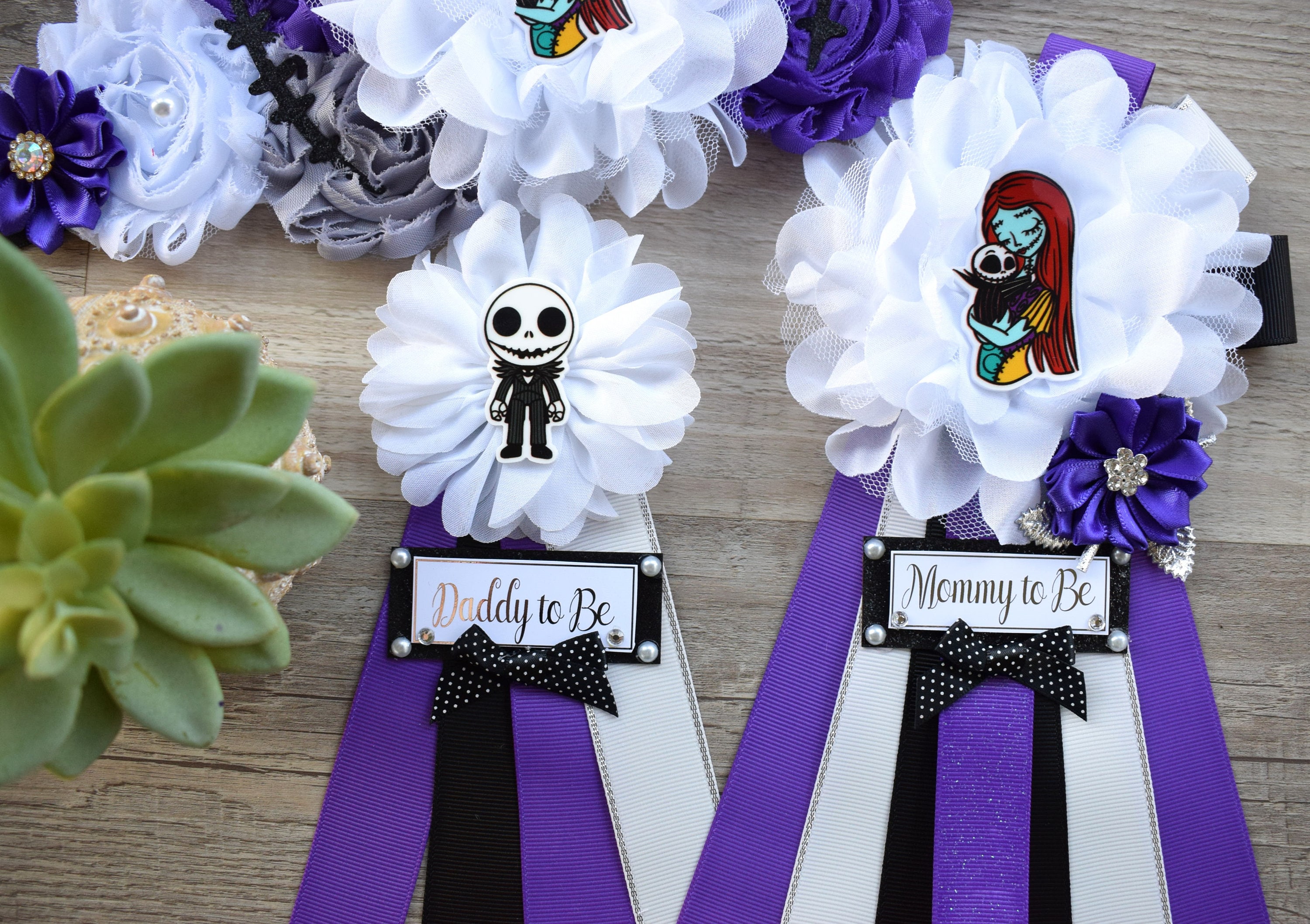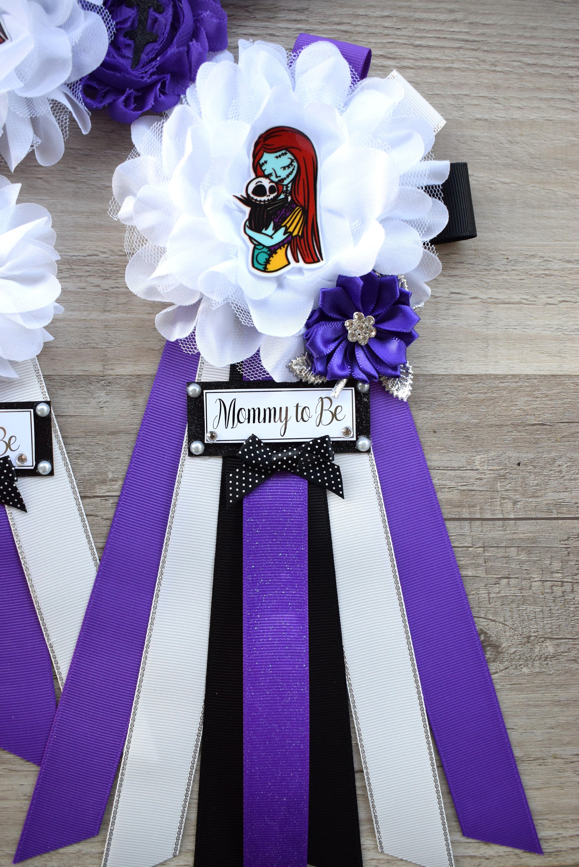 NMBC Baby Shower, Halloween Baby Shower, Purple Flower Sash, Purple Black Maternity Sash, Mommy To Be Ribbon, Daddy To Be Pin