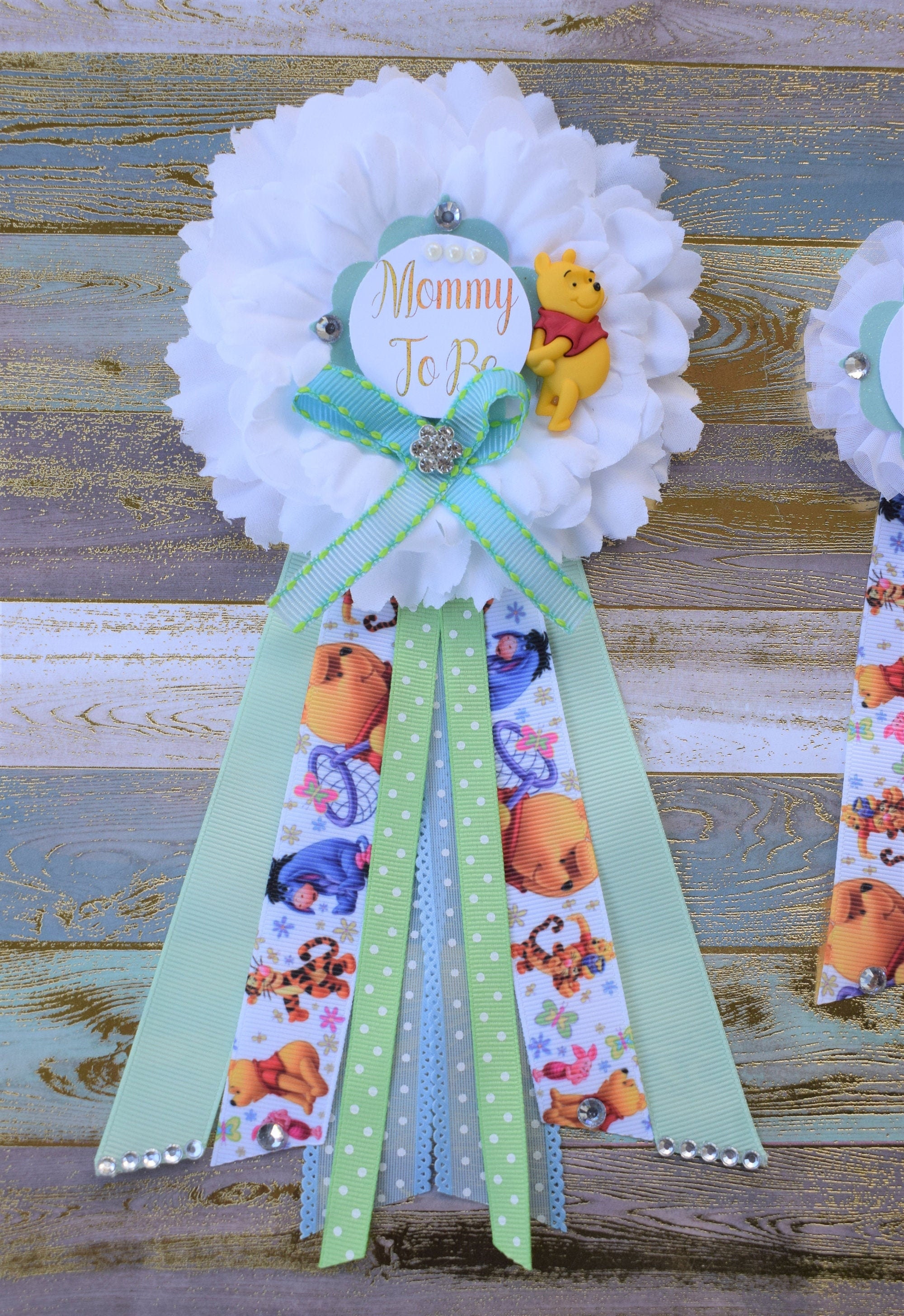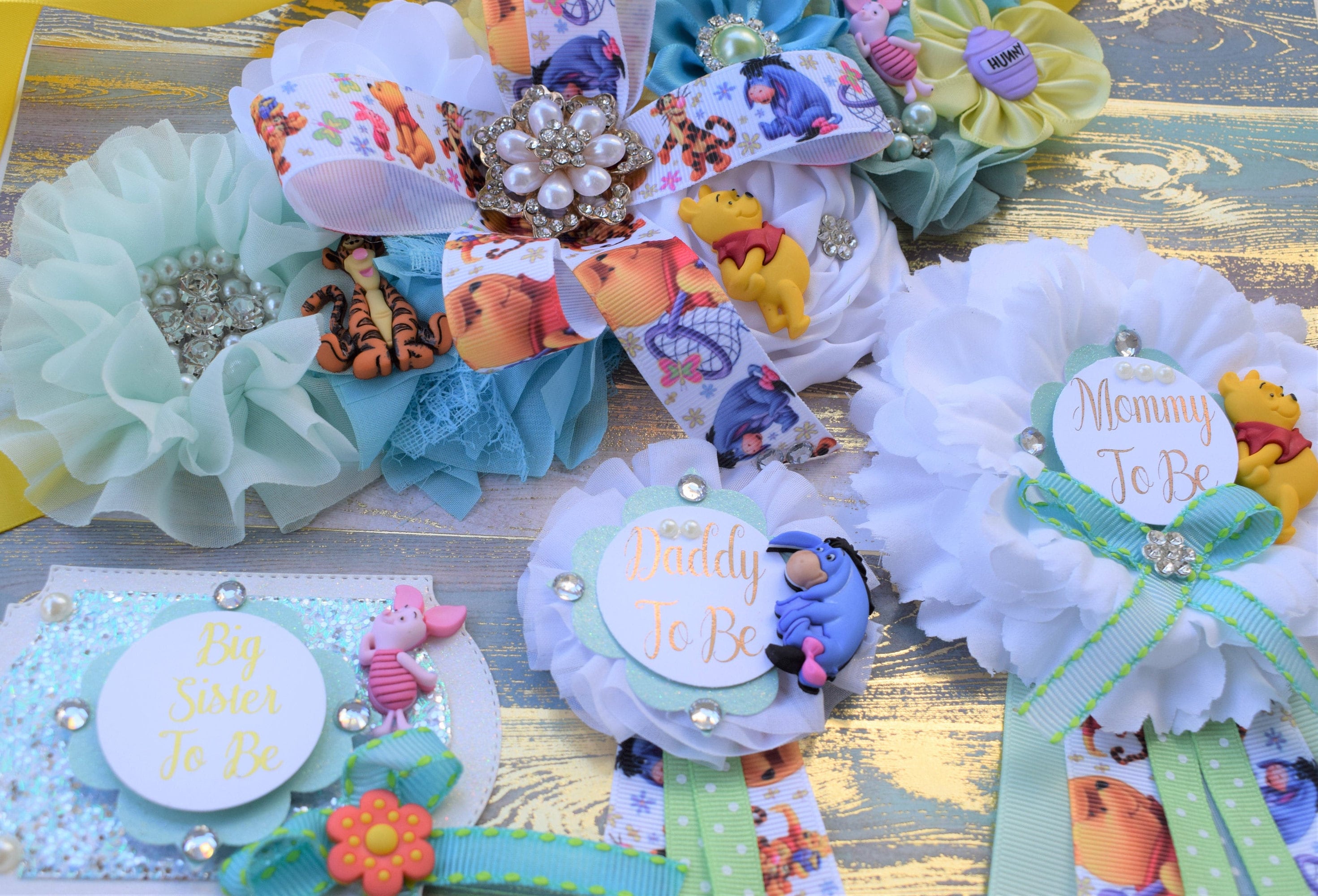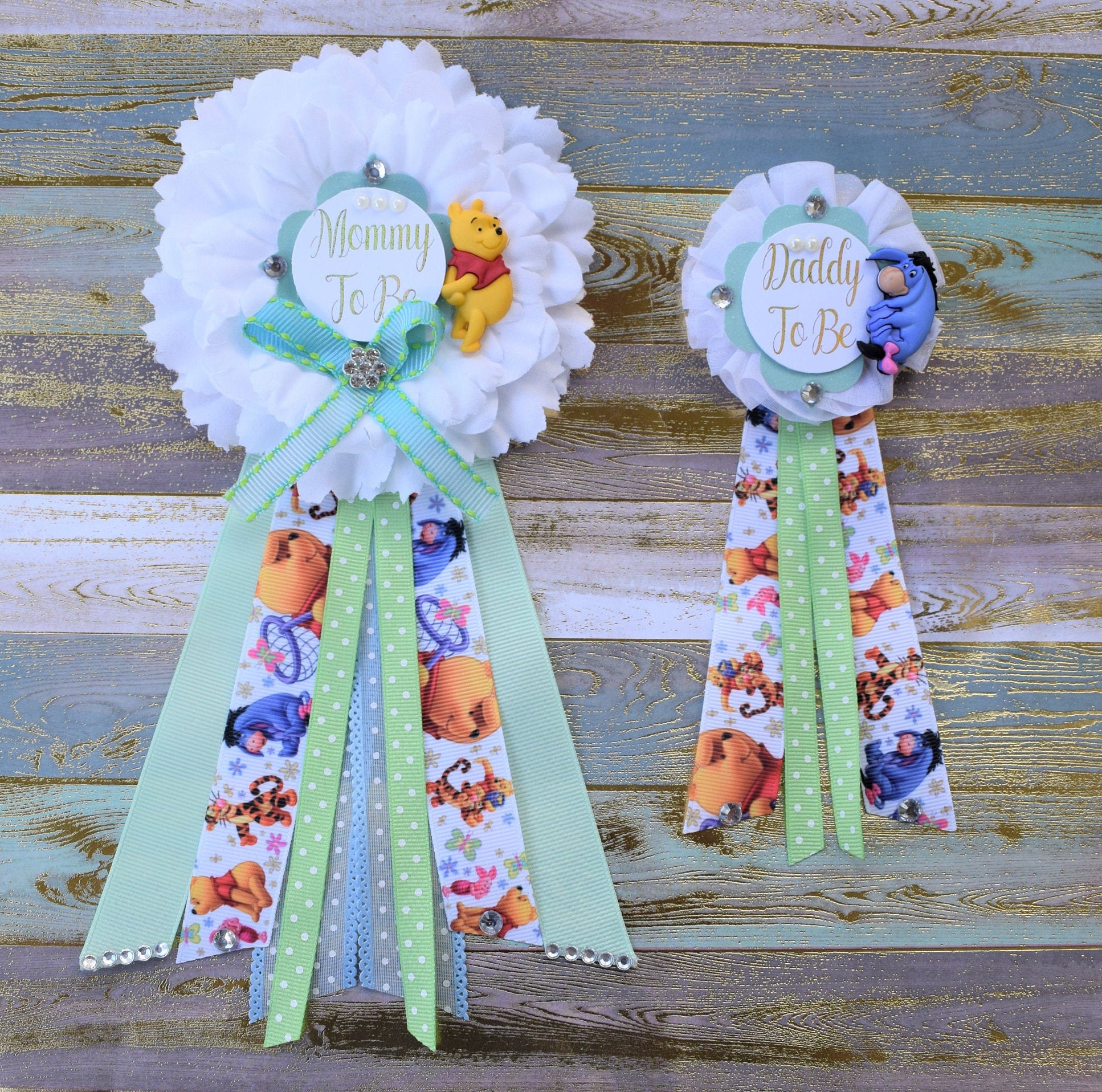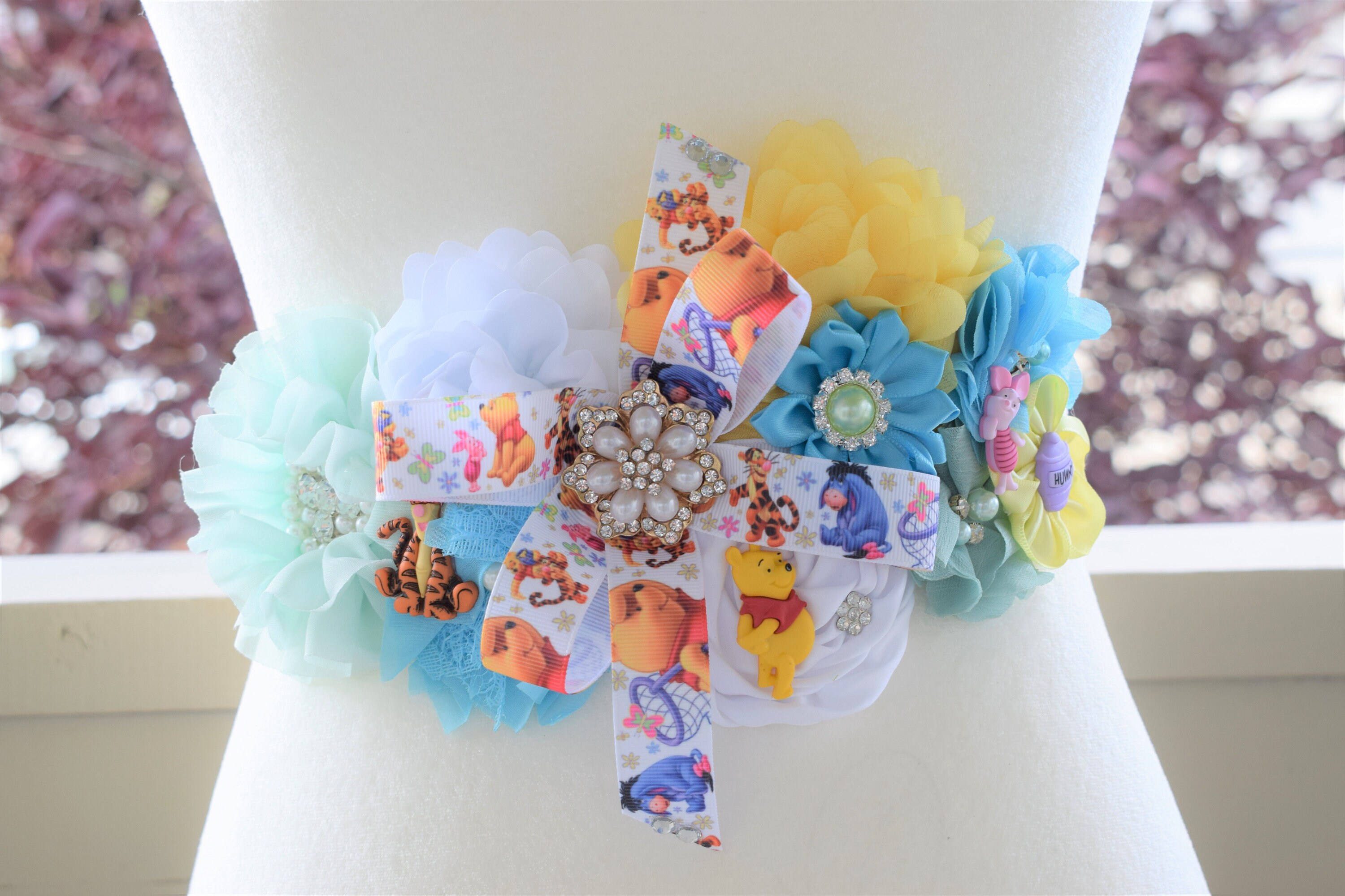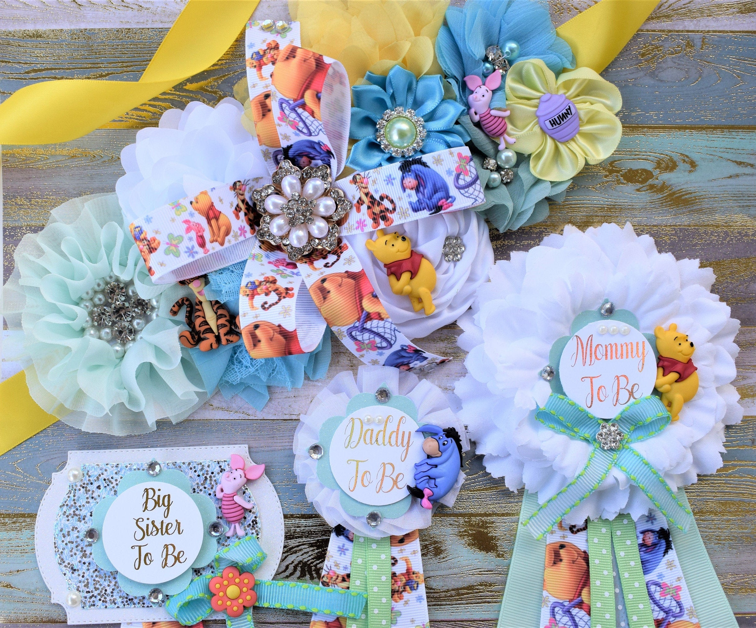 Winnie the Pooh Baby Shower Sash, Winnie the Pooh Maternity Sash, Winnie the Pooh, Winnie the Pooh Mommy and Daddy Pin, Winnie Flower Sash