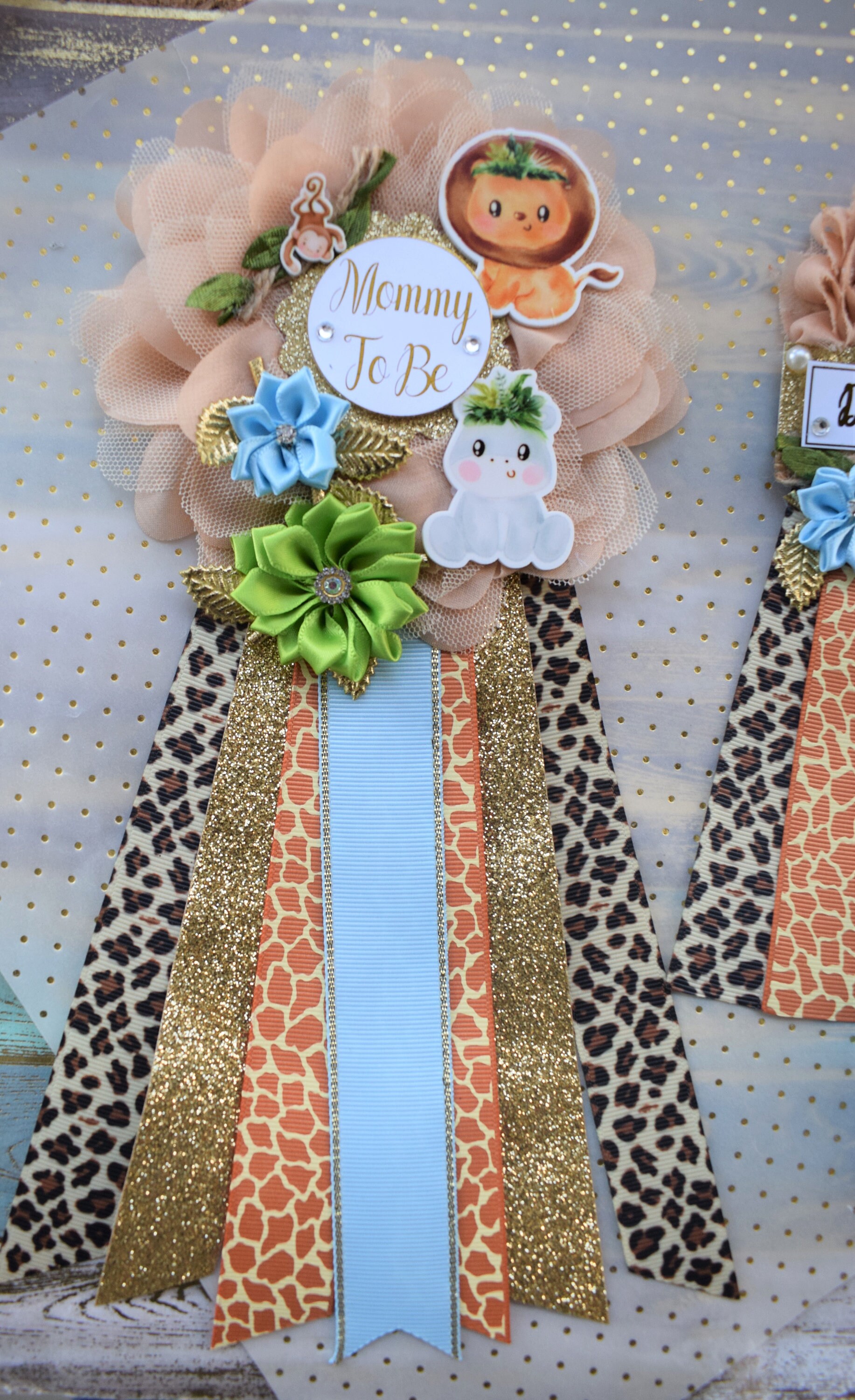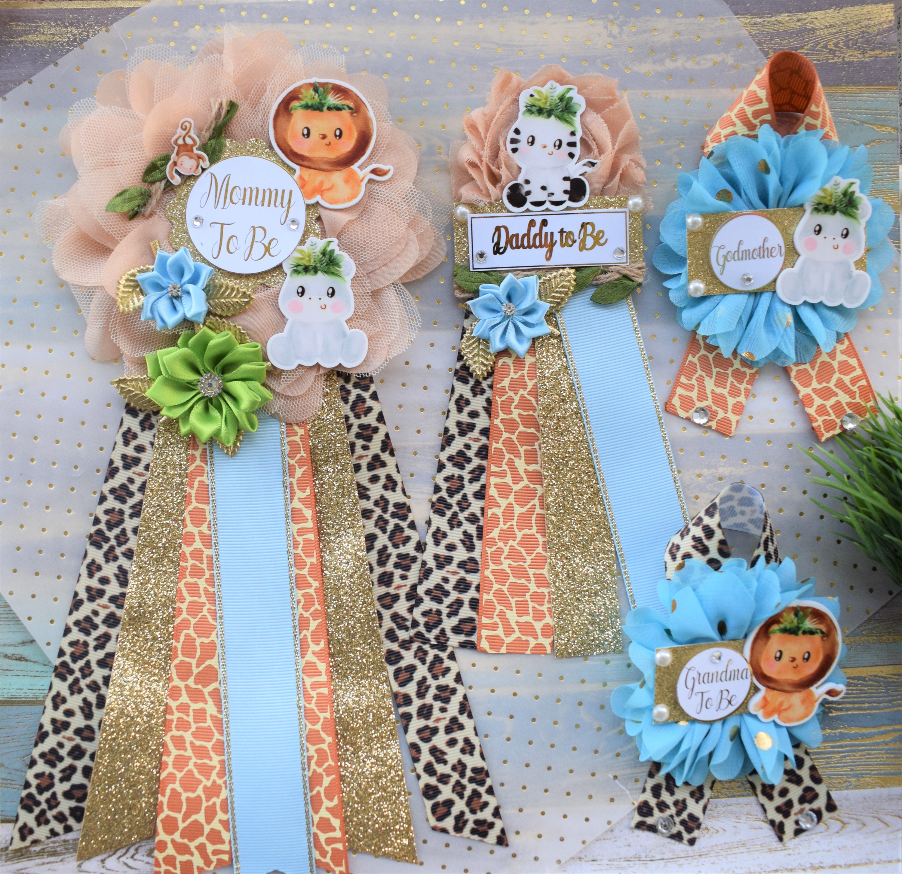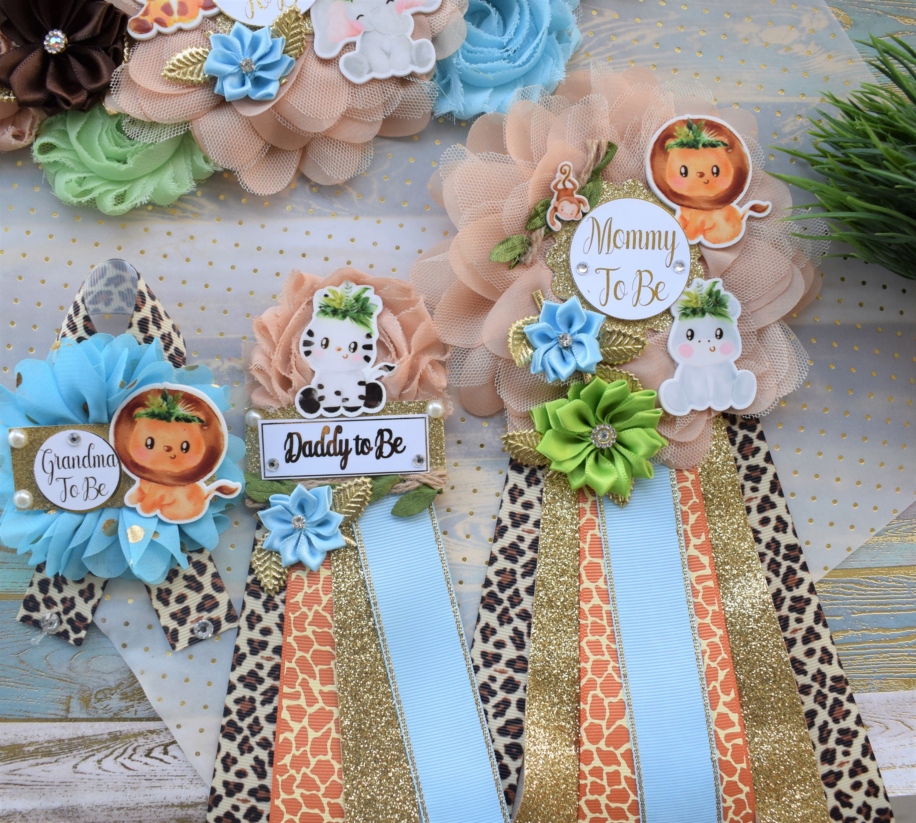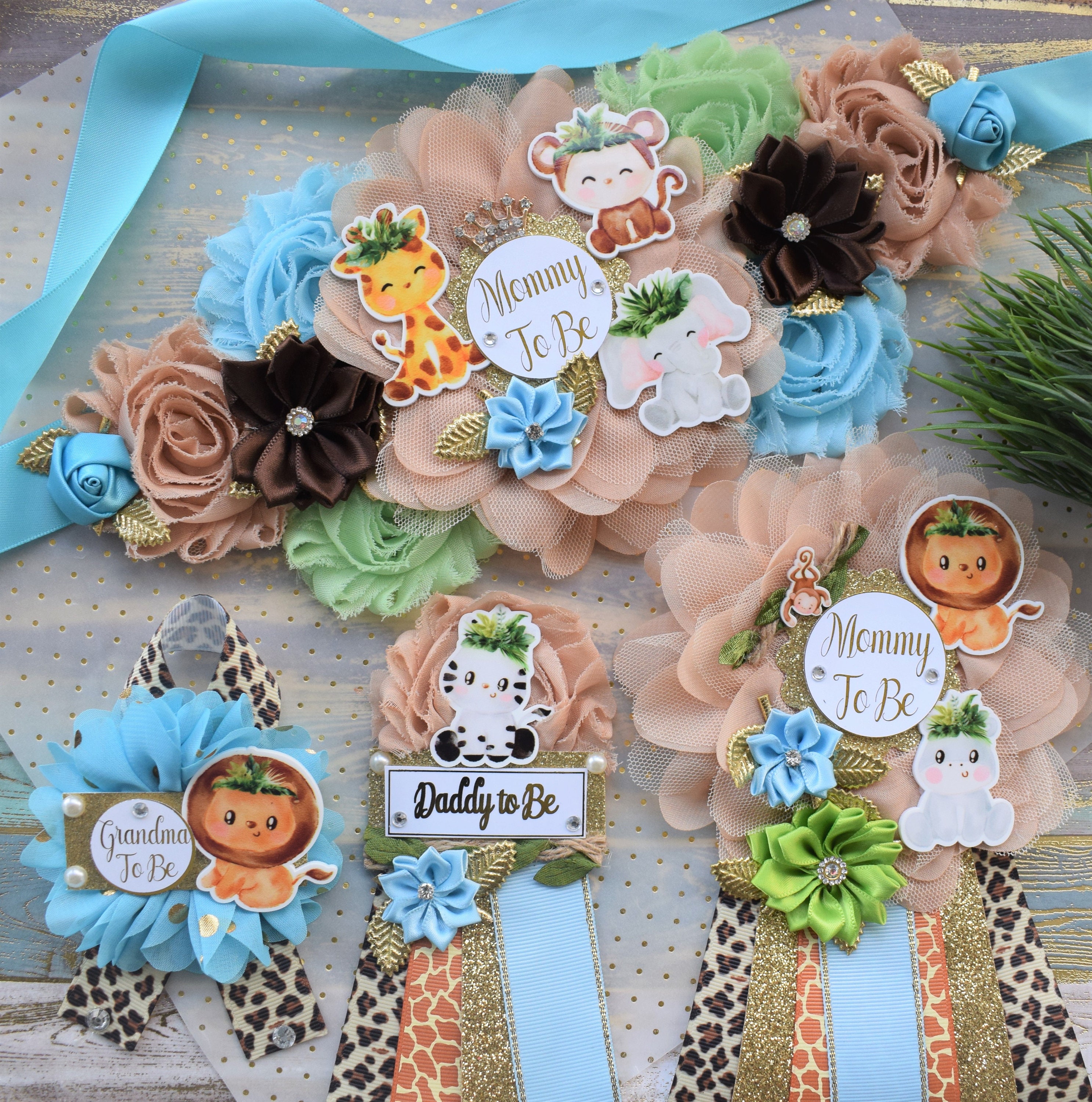 Safari Jungle Baby Shower Sash and Pin Set, Jungle Safari Baby Shower, Safari Flower Sash, Safari Corsage Pin, Safari Shower, Custom Order