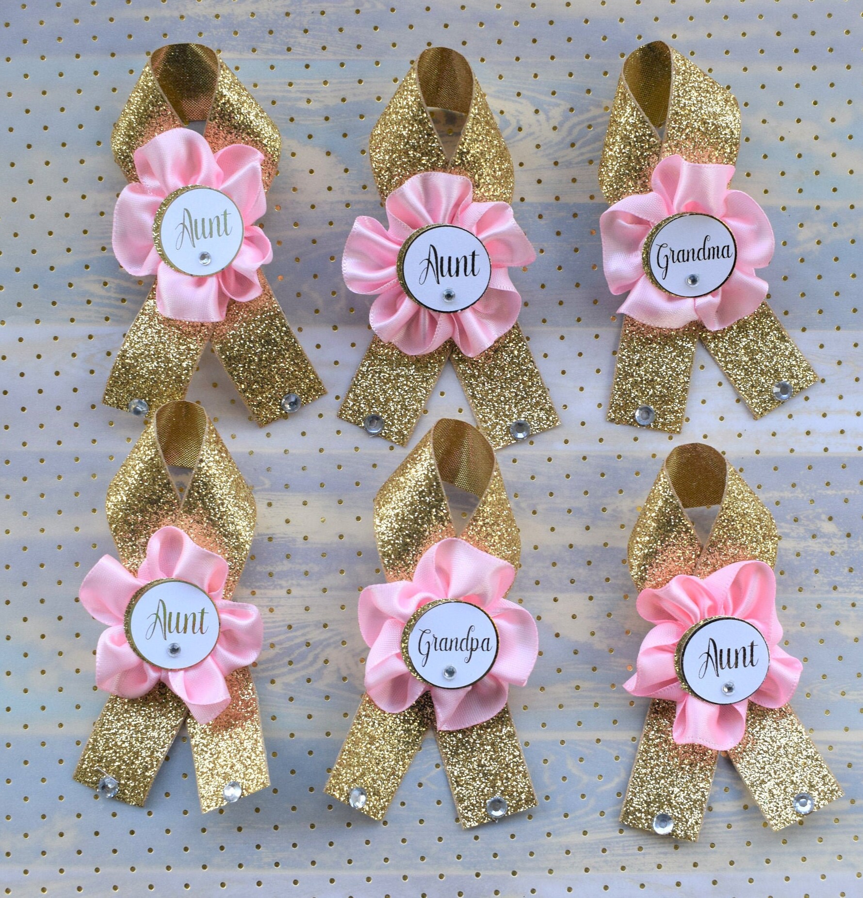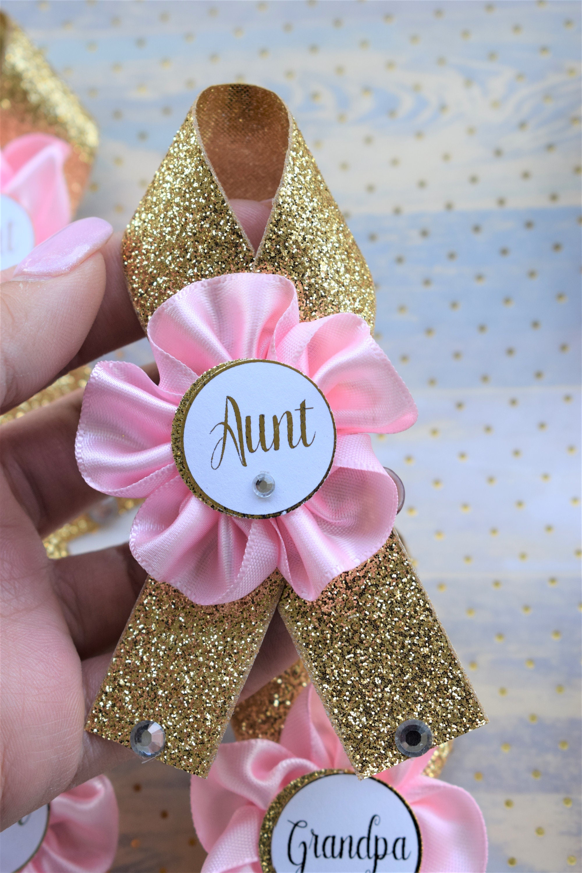 These Pink & Gold Family Pins were made especially for a Baby Shower or a Party.