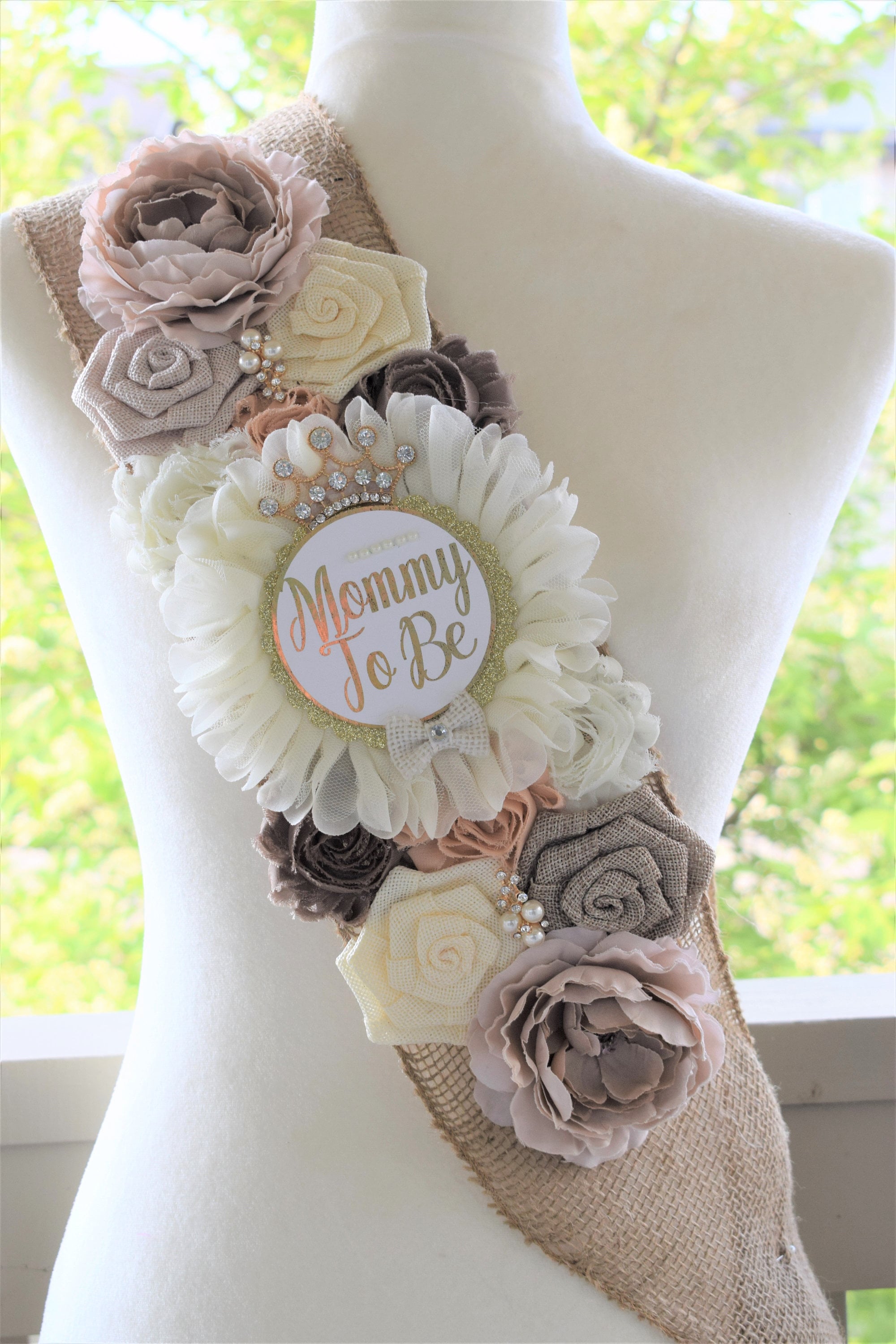 Rustic Shoulder Sash, Rustic Mommy To Be Shoulder Sash, Brown Beige Tan Baby Shower, Mommy Baby Shower Sash, Rustic Shower, Custom