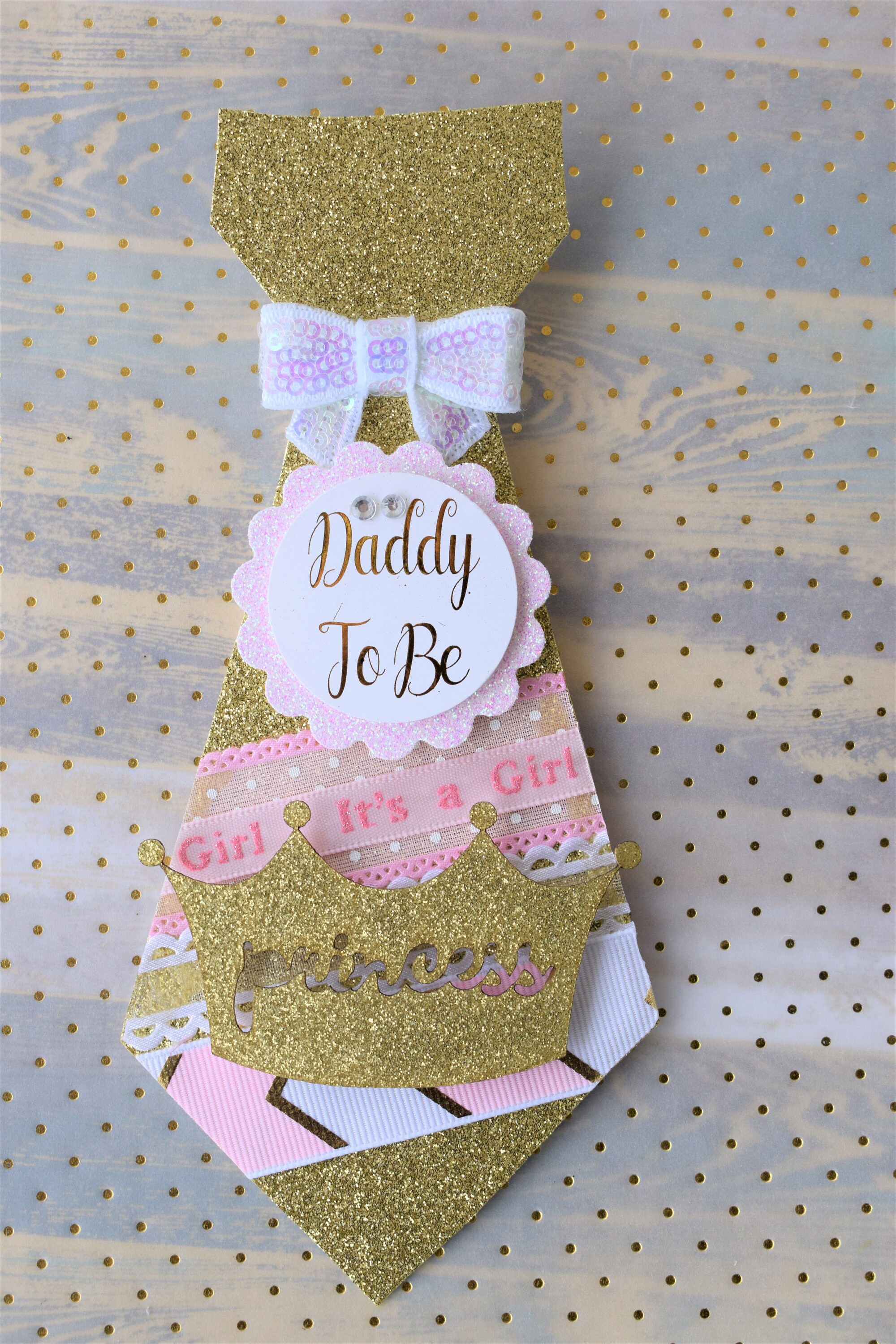 This Gold & Pink Princess Flower Shoulder Sash is made especially for a Baby Shower.