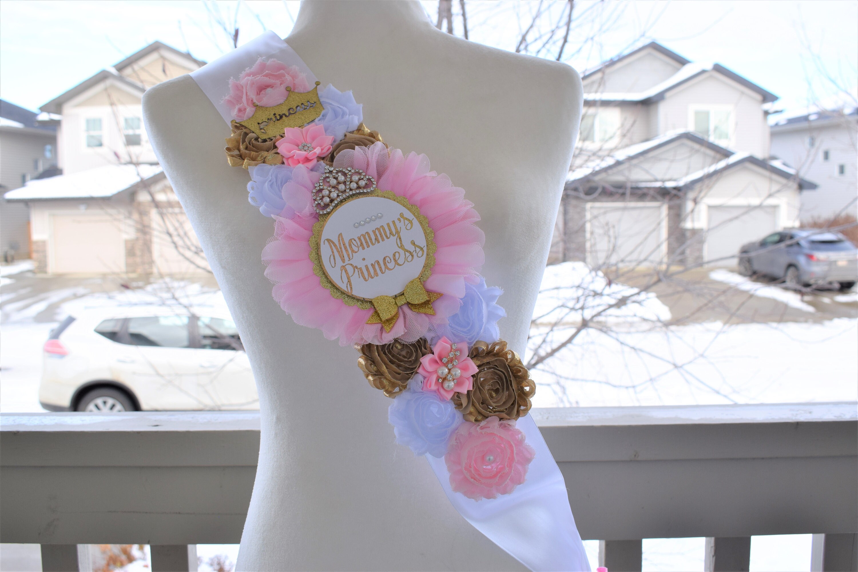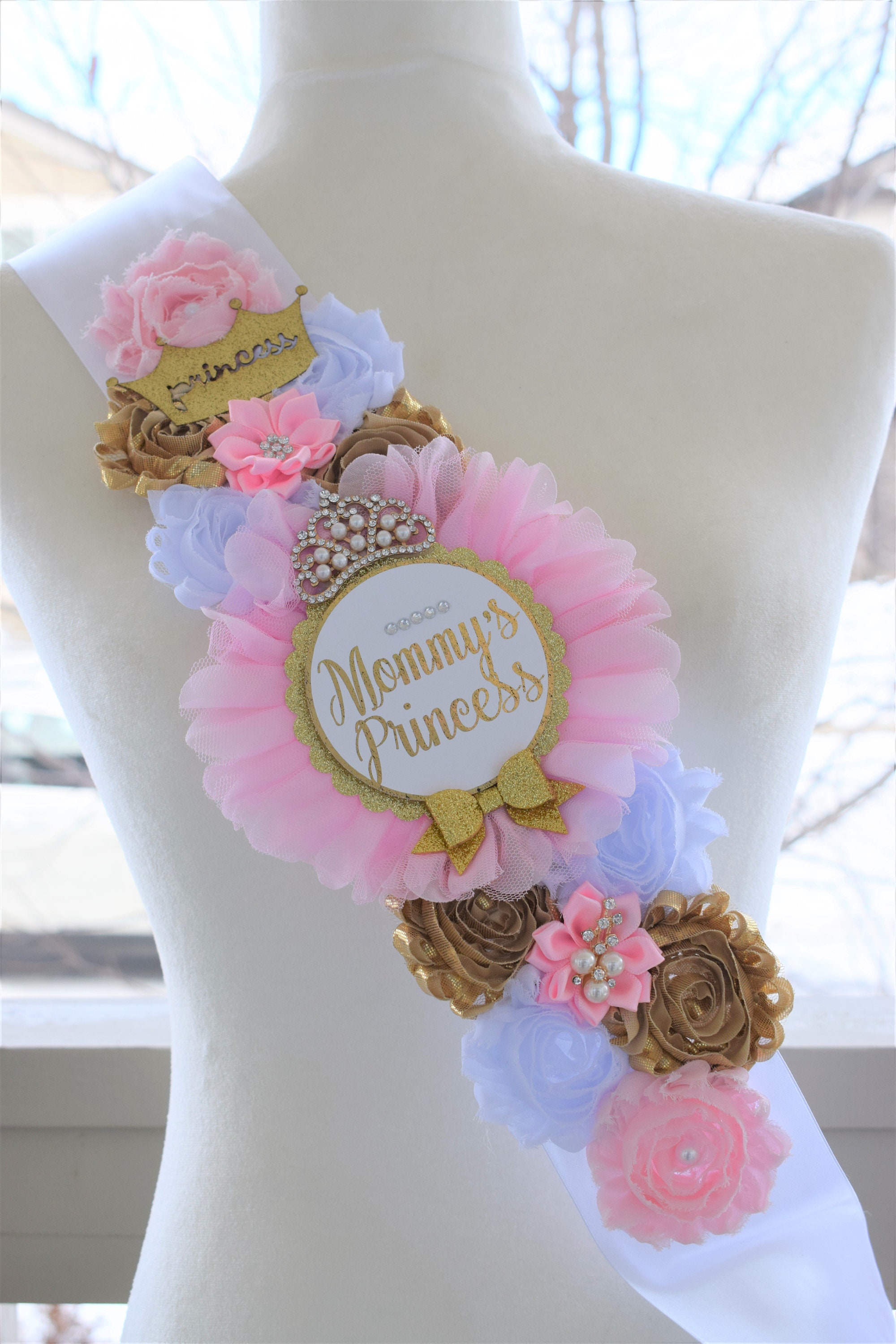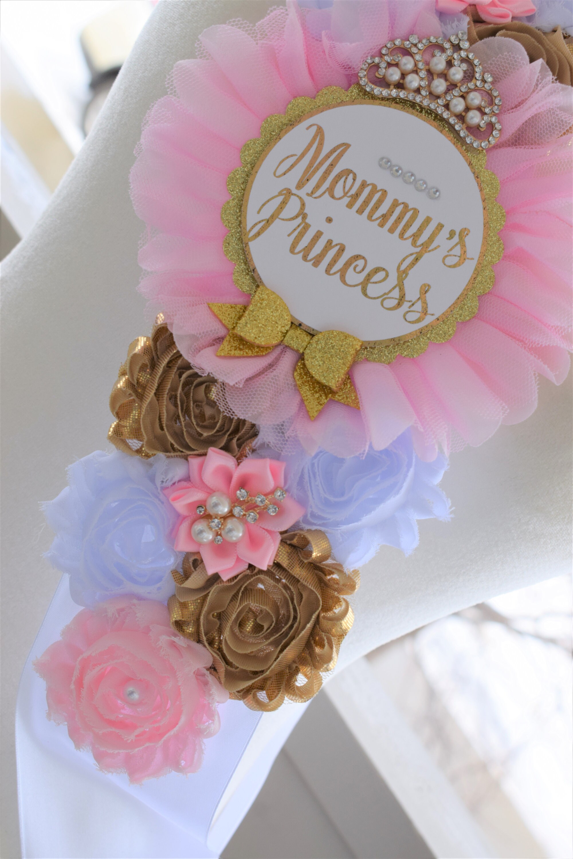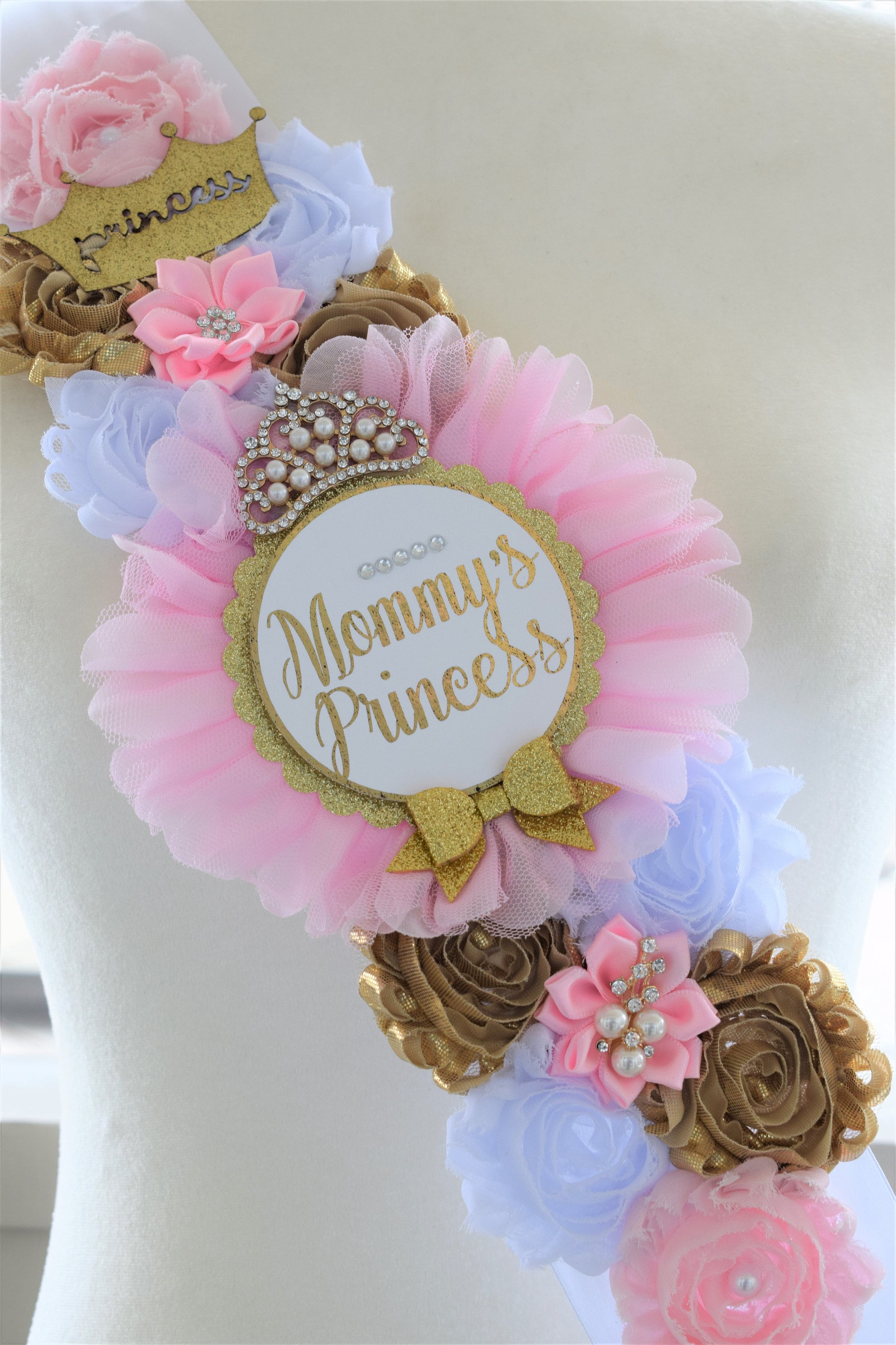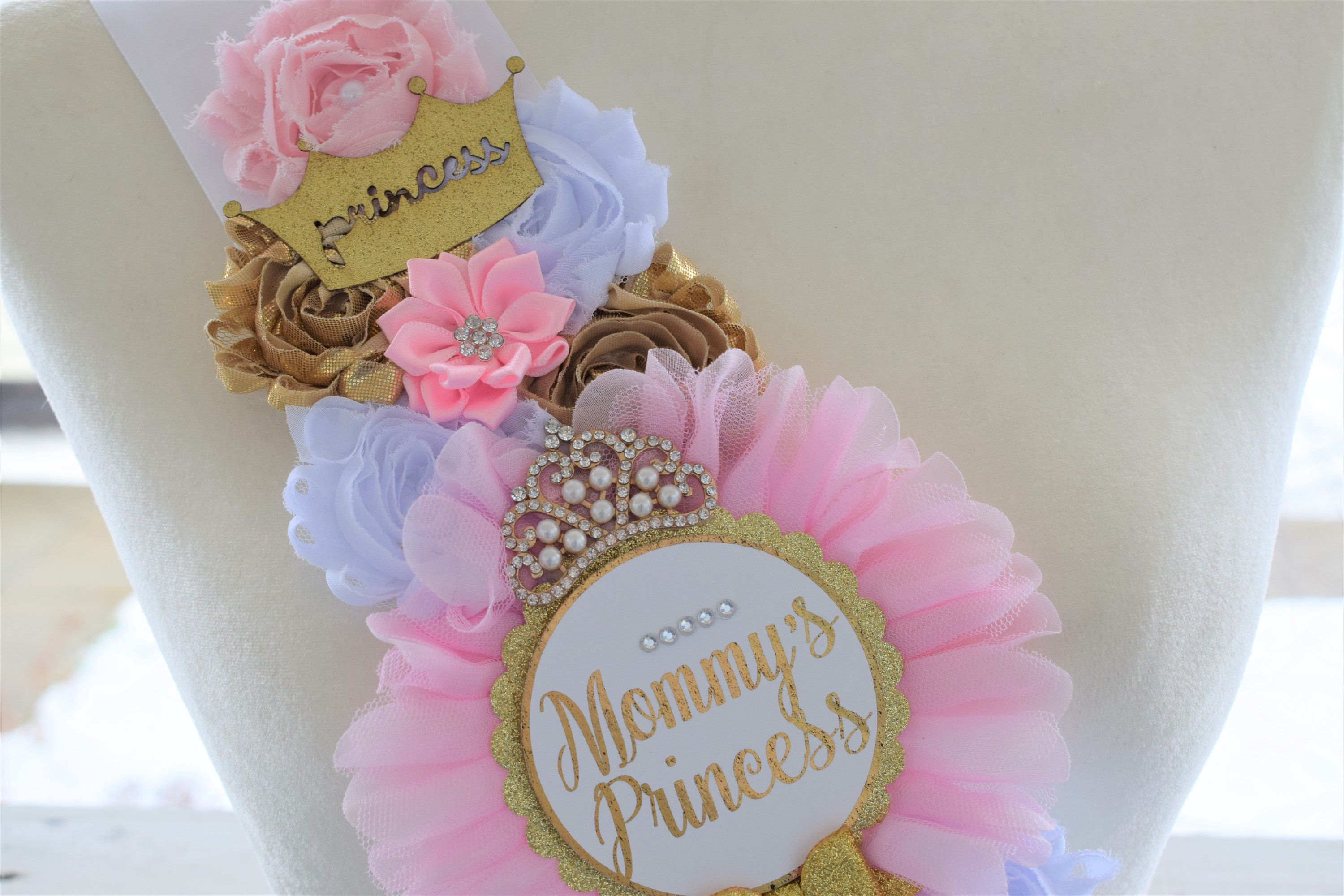 Princess Pink White Gold Shoulder Sash, Princess Gold Shoulder Sash, Princess Baby Shower, Mommy's Princess Sash, Pink Gold Shower, Custom