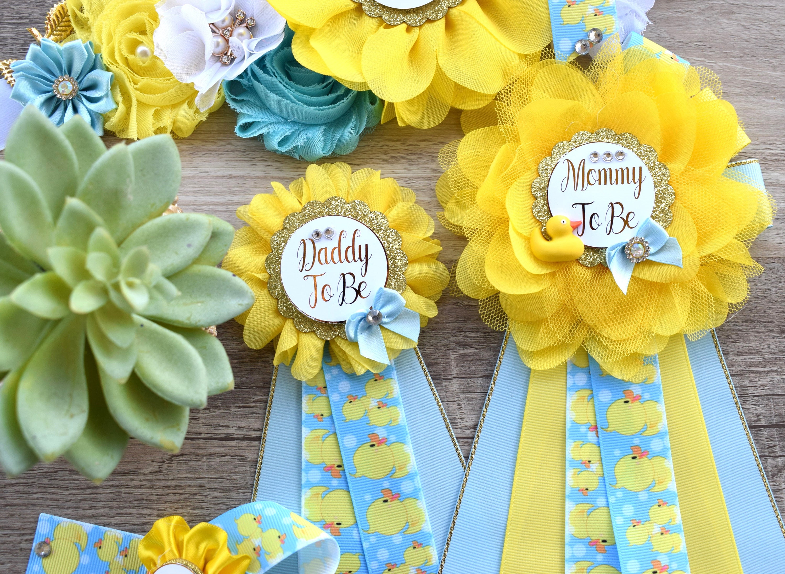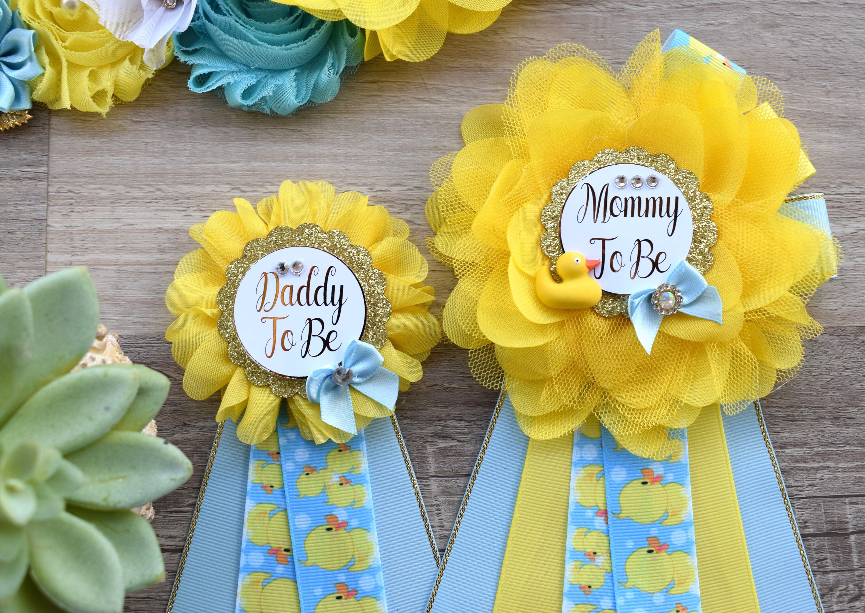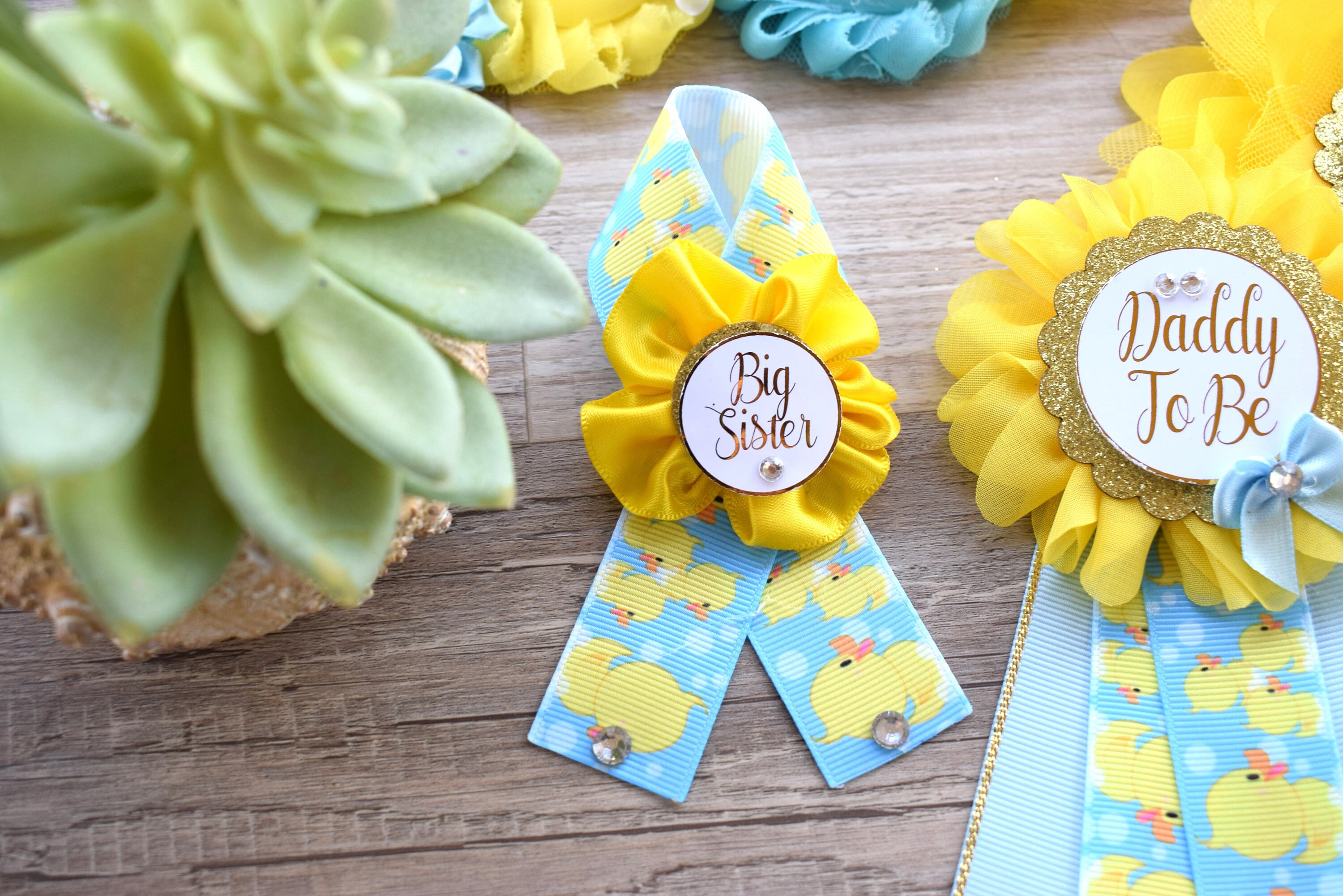 Boy Rubber Duck Baby Shower, Ducky Maternity Sash, Mommy To Be Ribbon, Daddy To Be Corsage Pin, Yellow Blue White Duck Baby Shower Sash