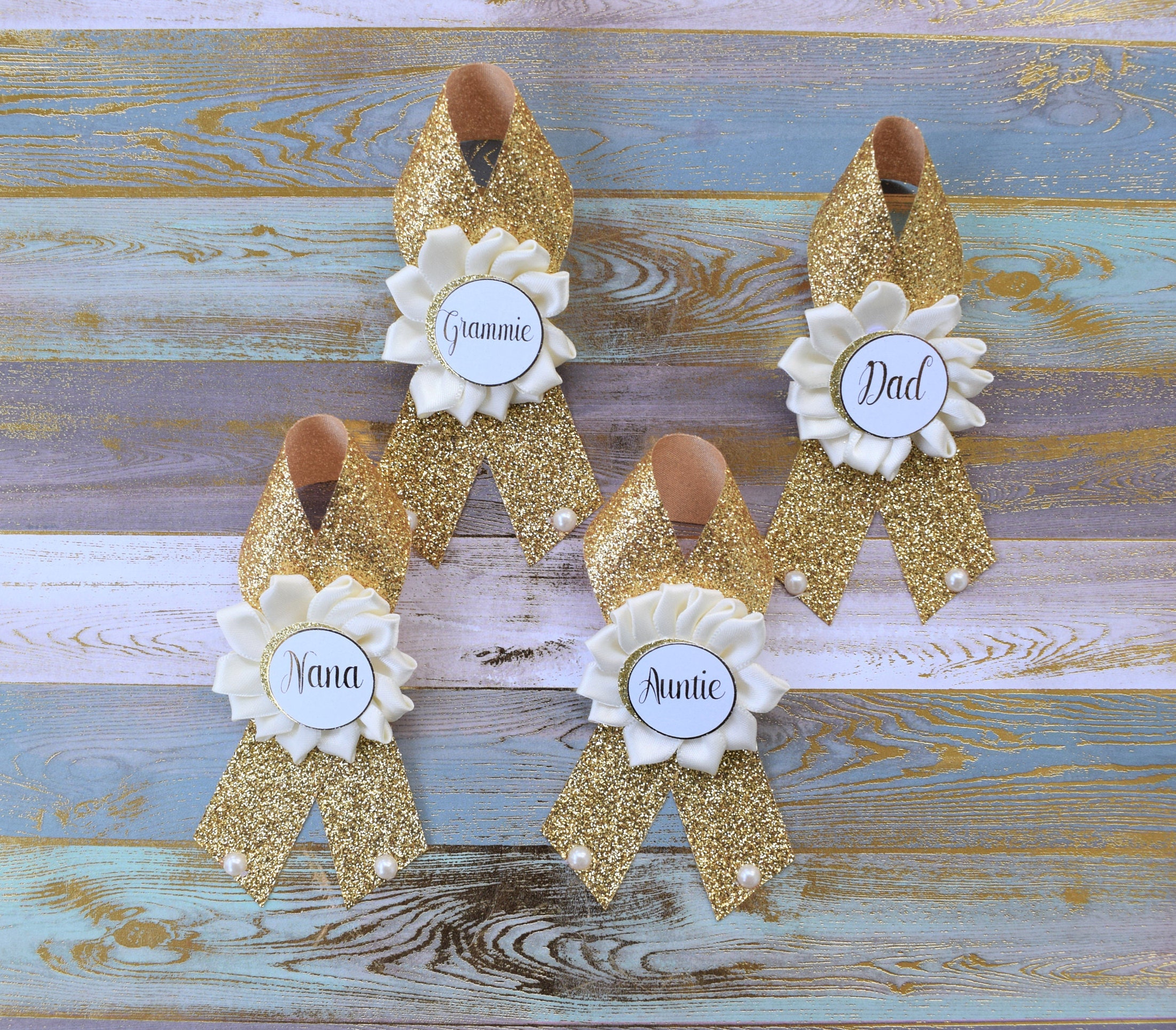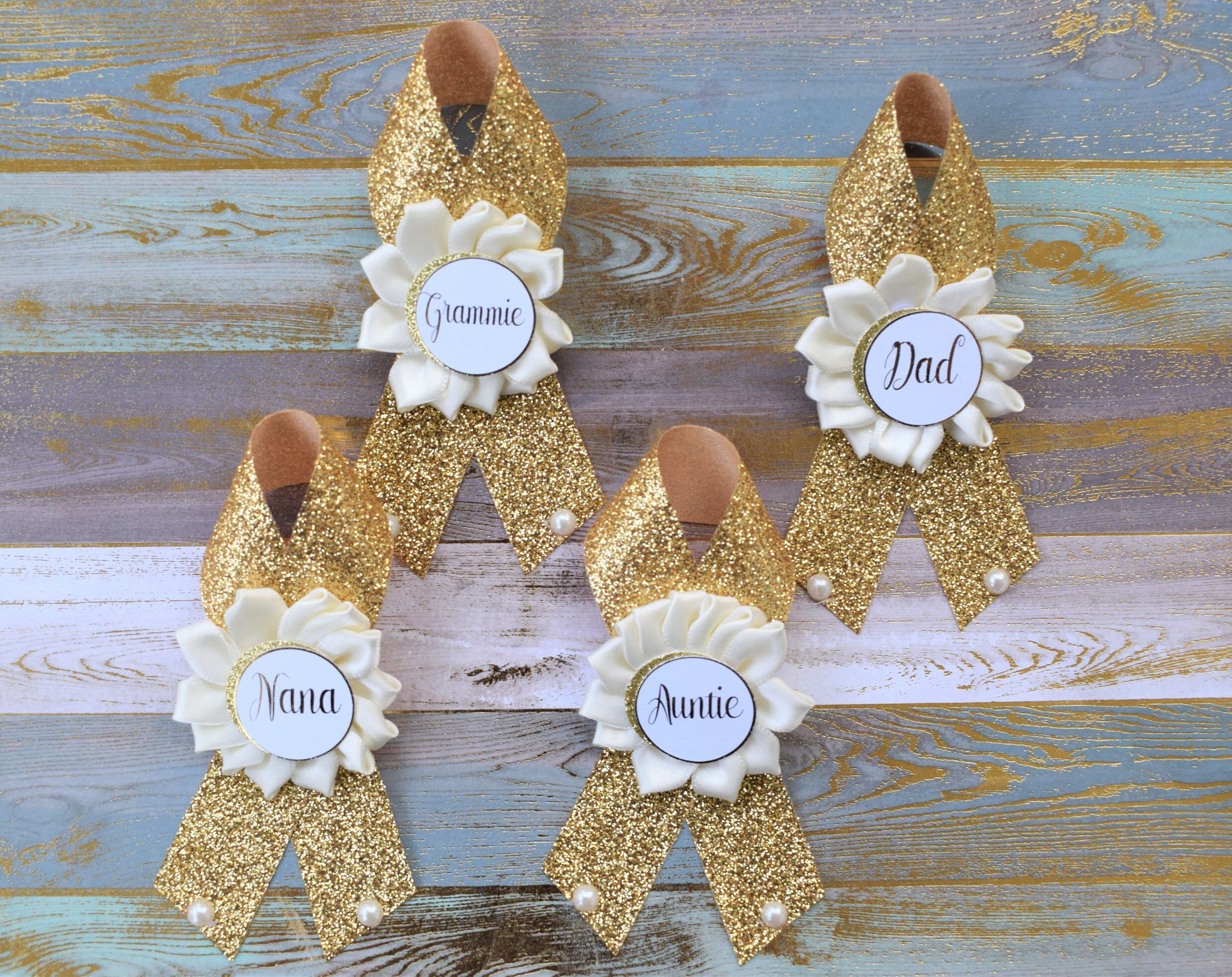 These Ivory & Gold Family Pins were made especially for a Baby Shower or a Party.
