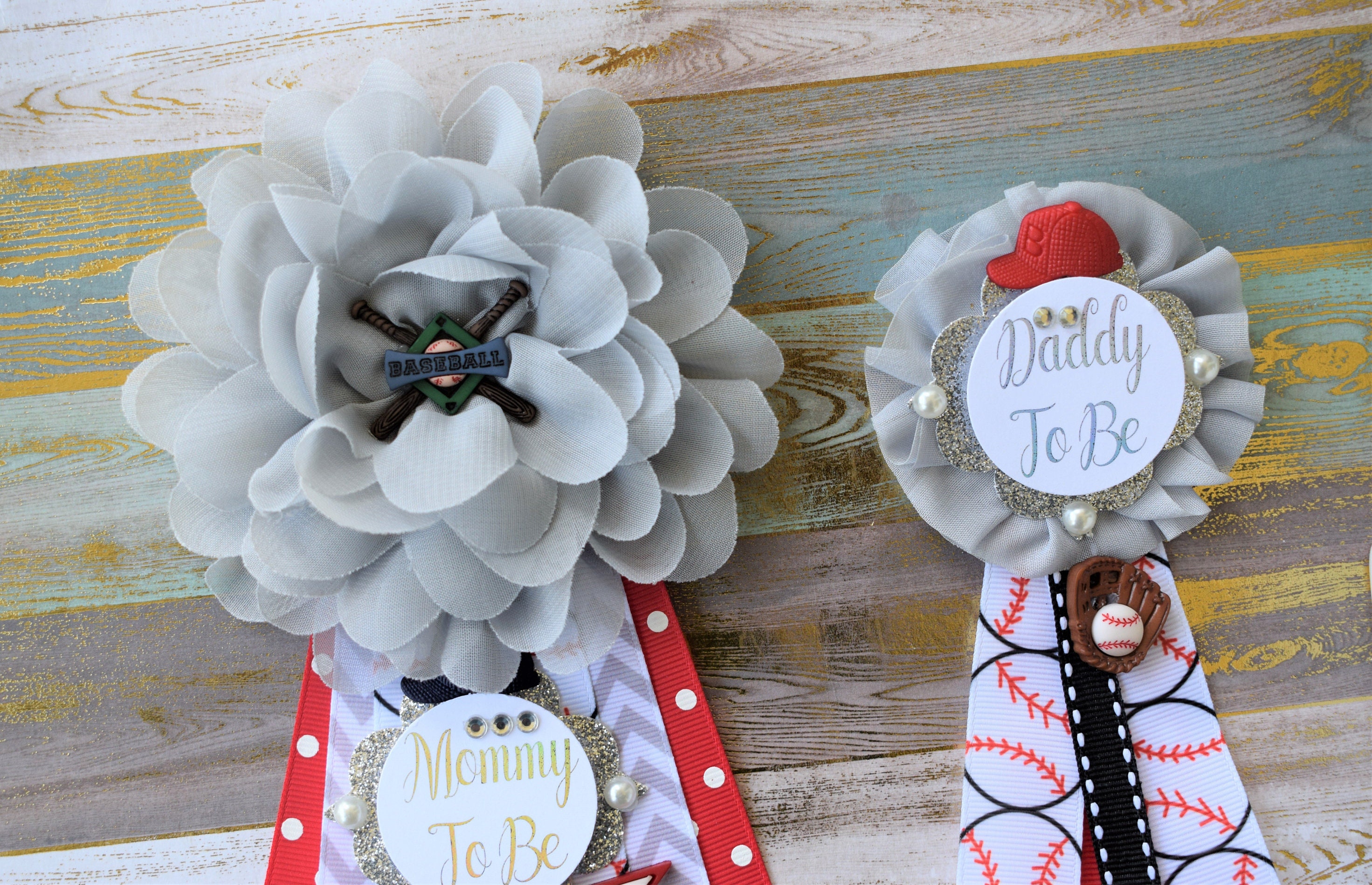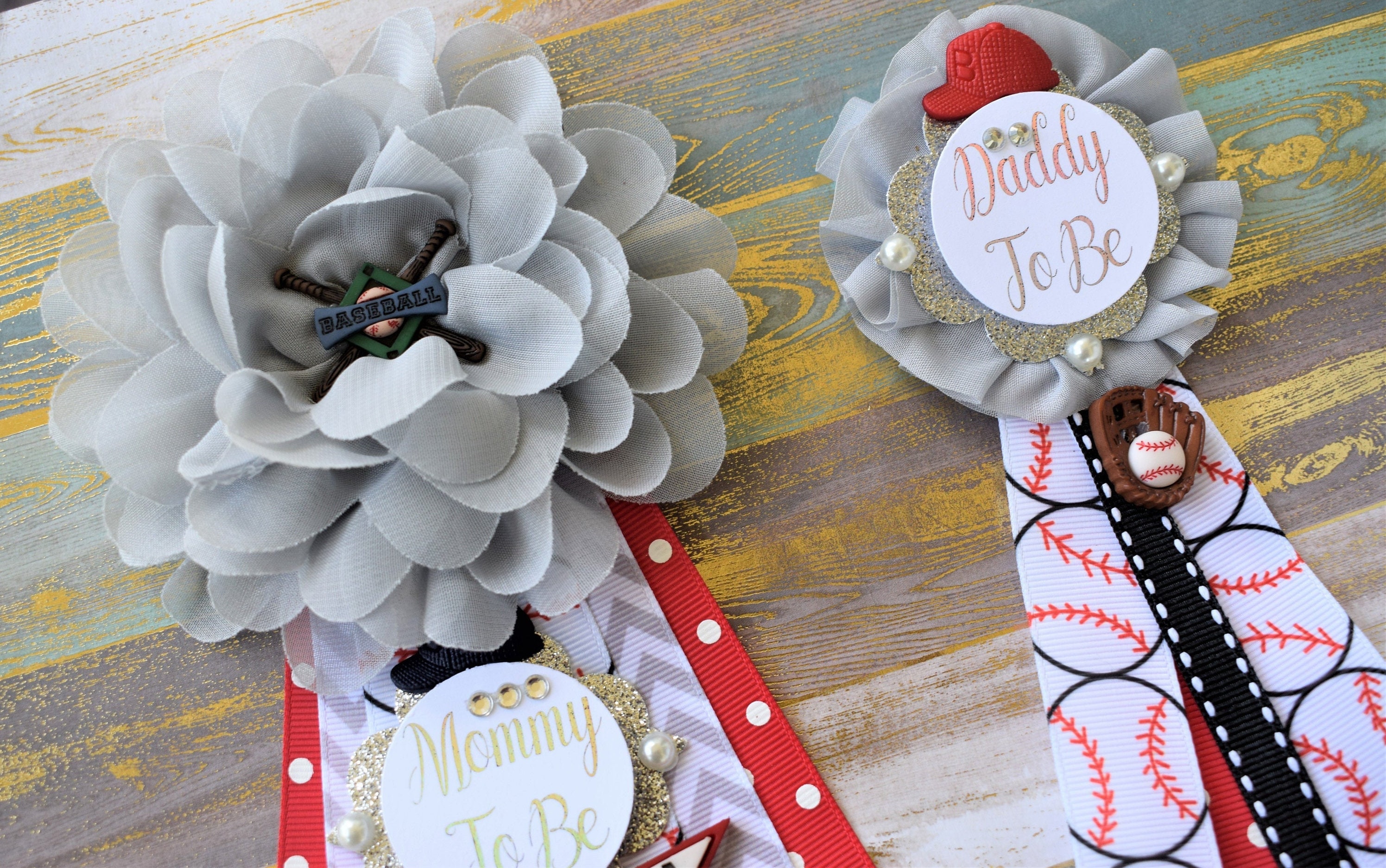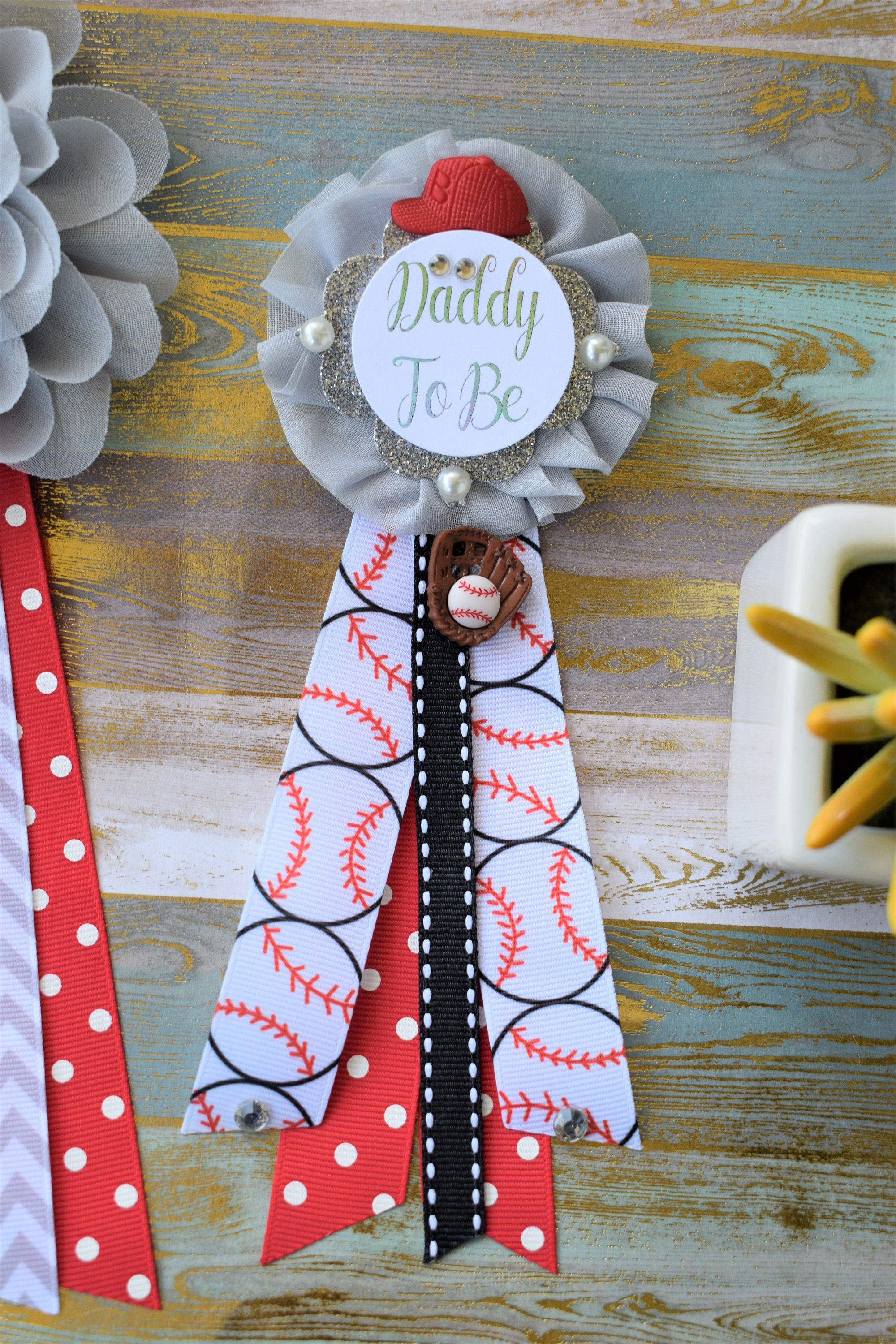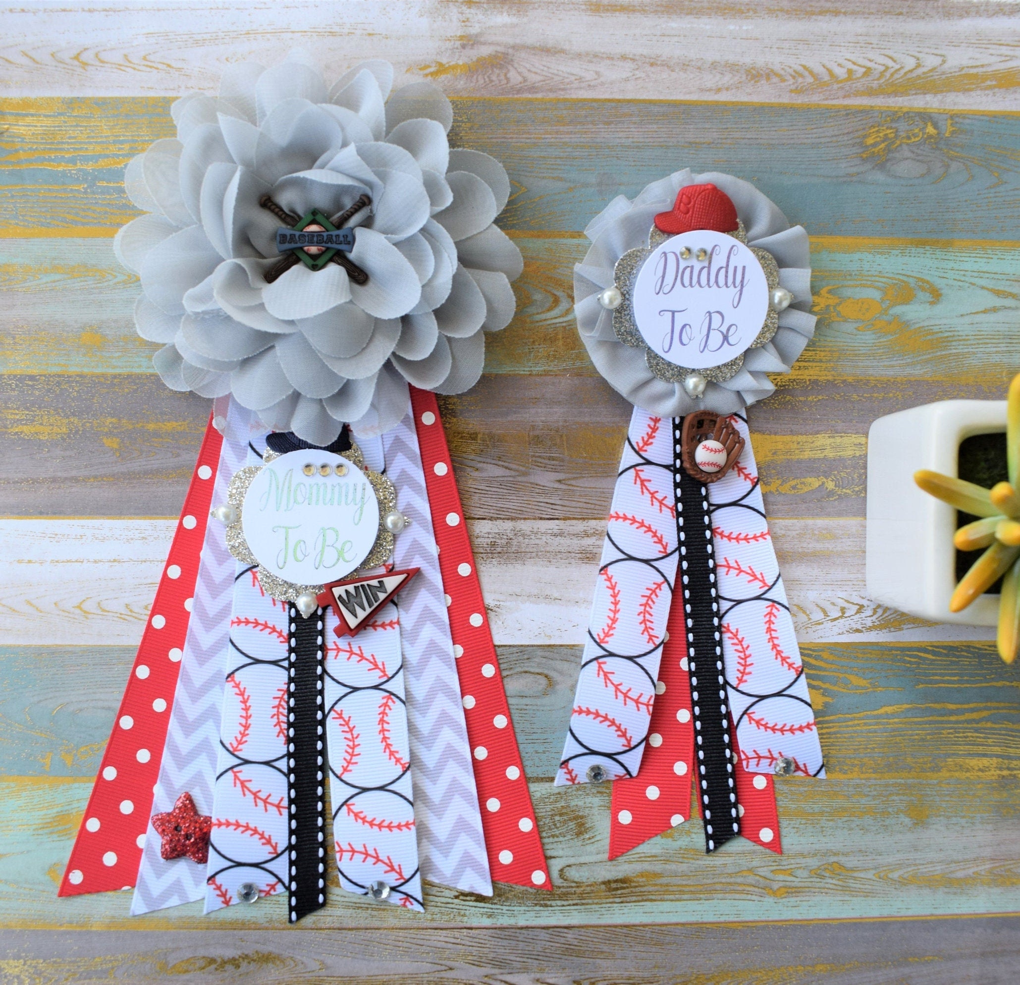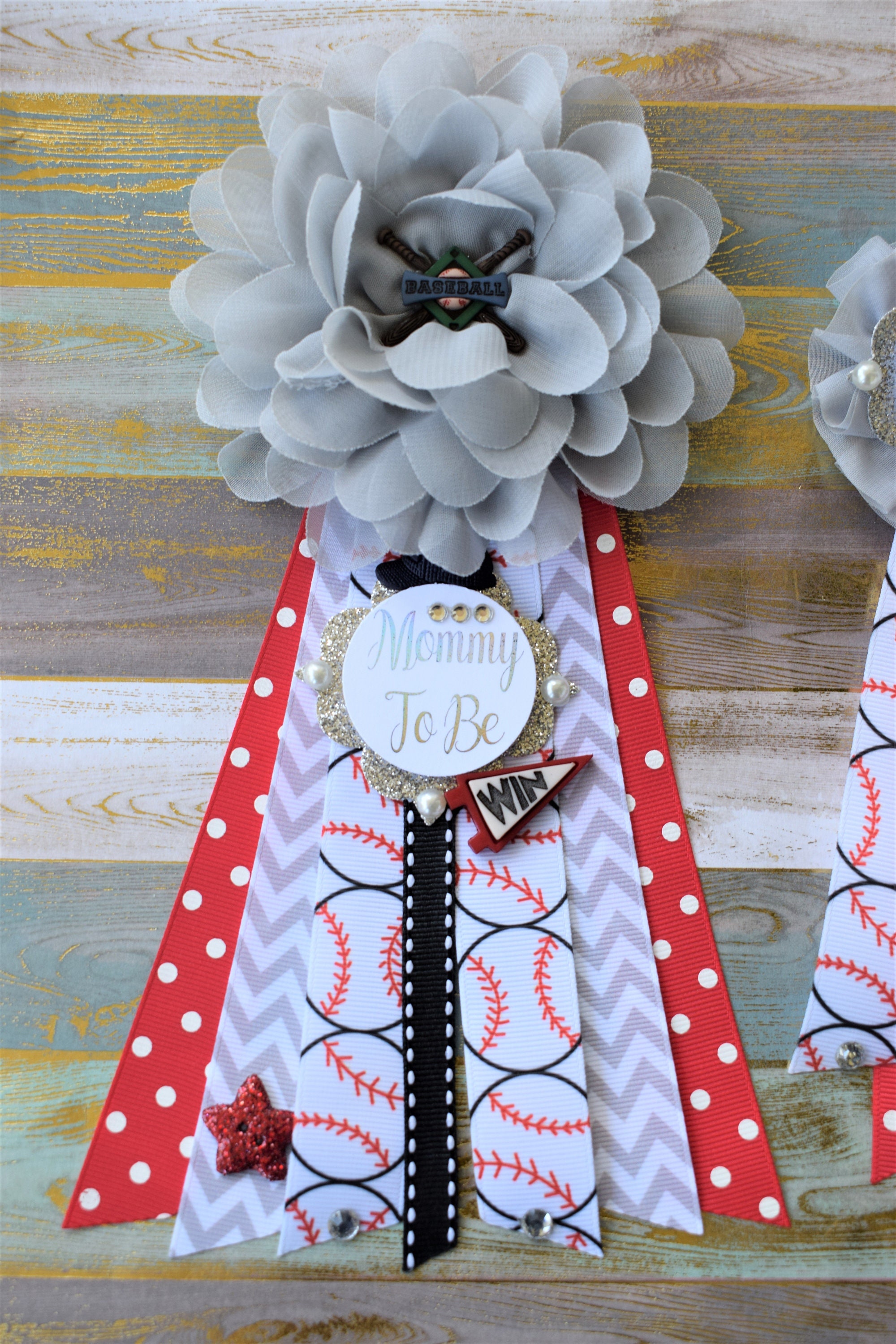 Baseball Ribbon Corsage Pins, Sport Blue Red Baseball Corsage, Baseball Mommy To Be, Sport Baseball Daddy To Be, Sport Baby Shower, Custom
