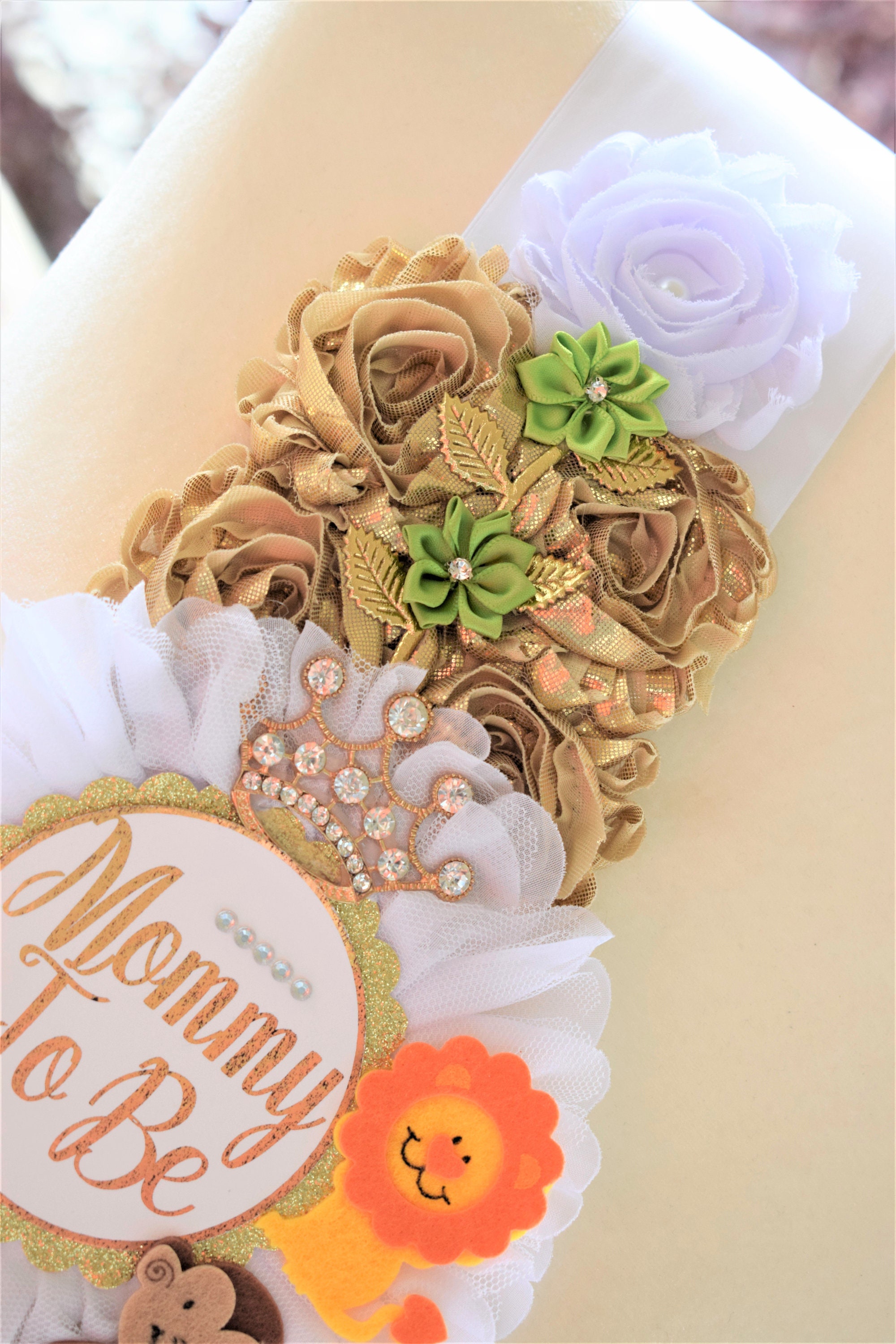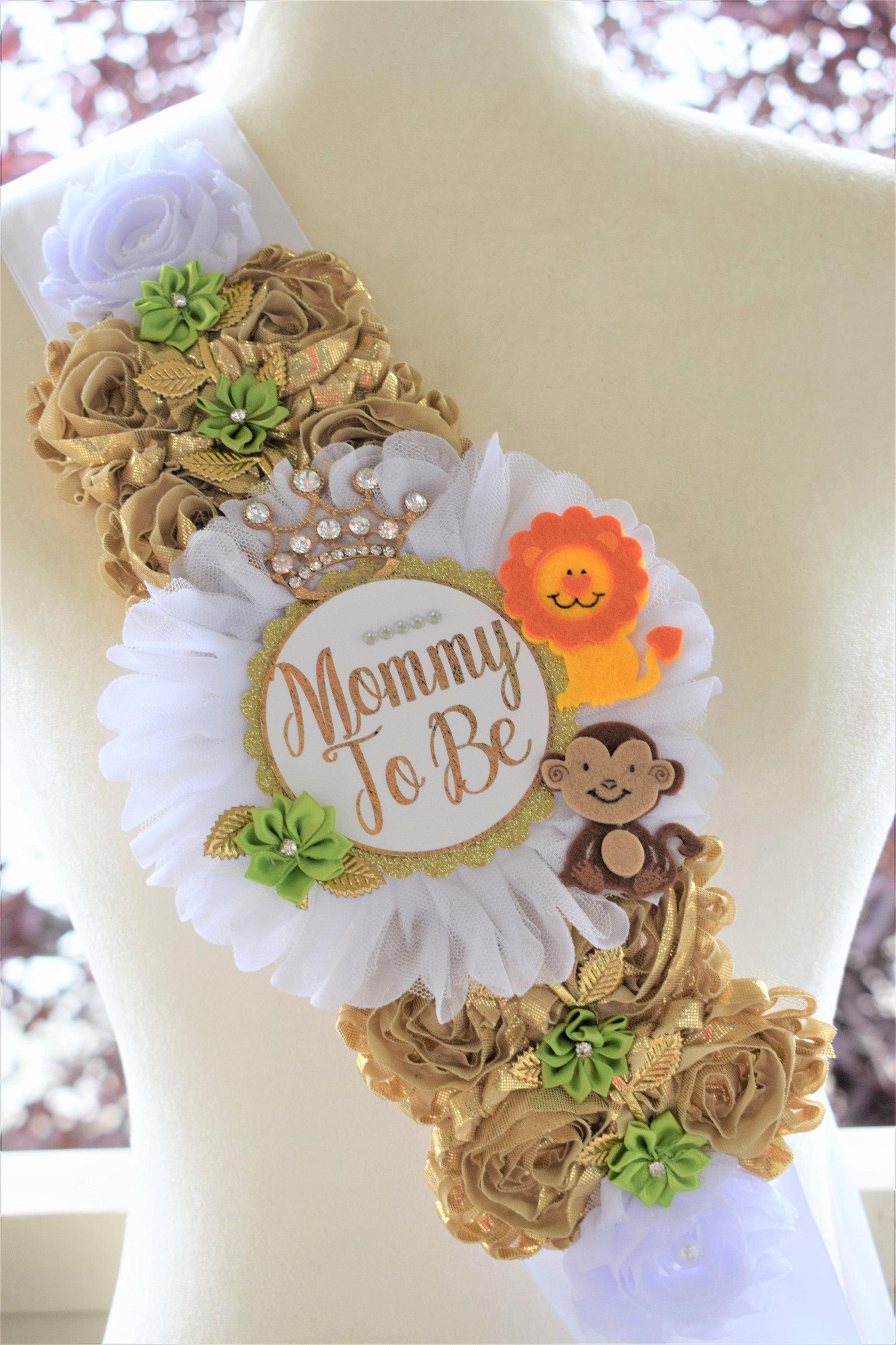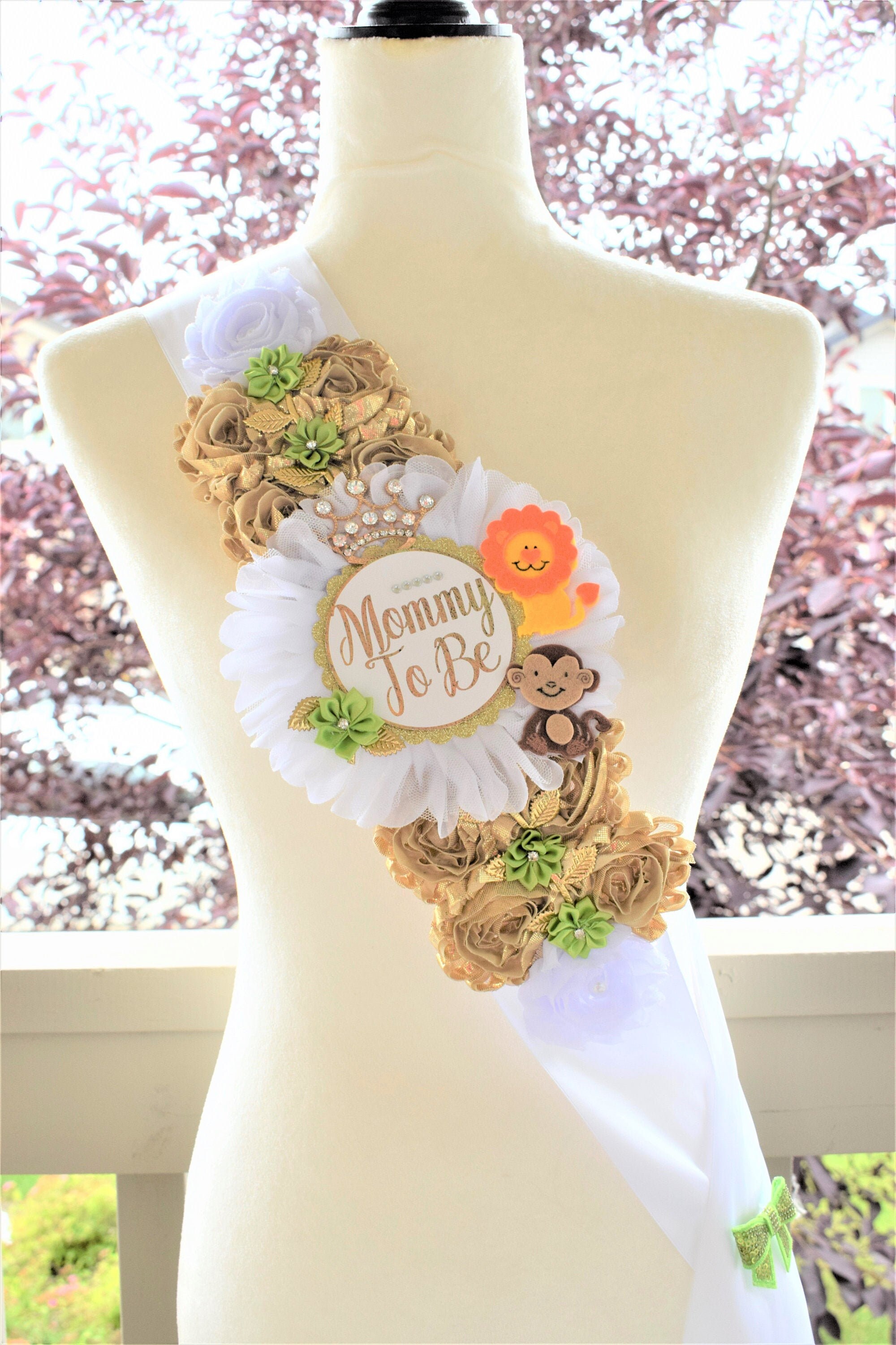 This Gorgeous Jungle Safari Shoulder Sash was made especially for a Baby Shower.