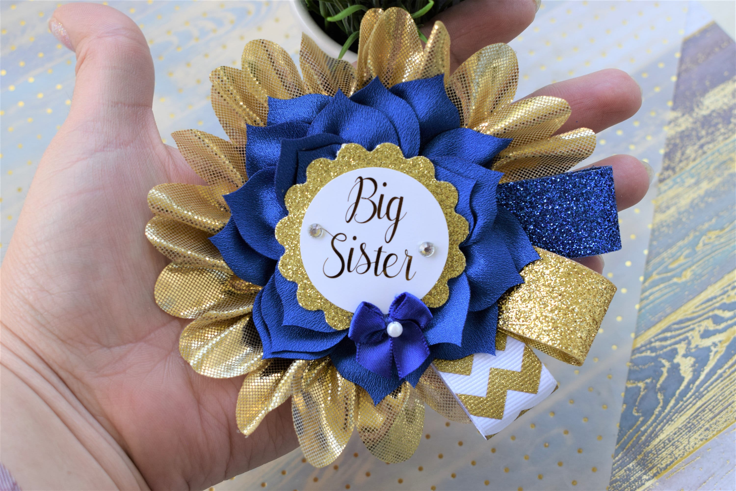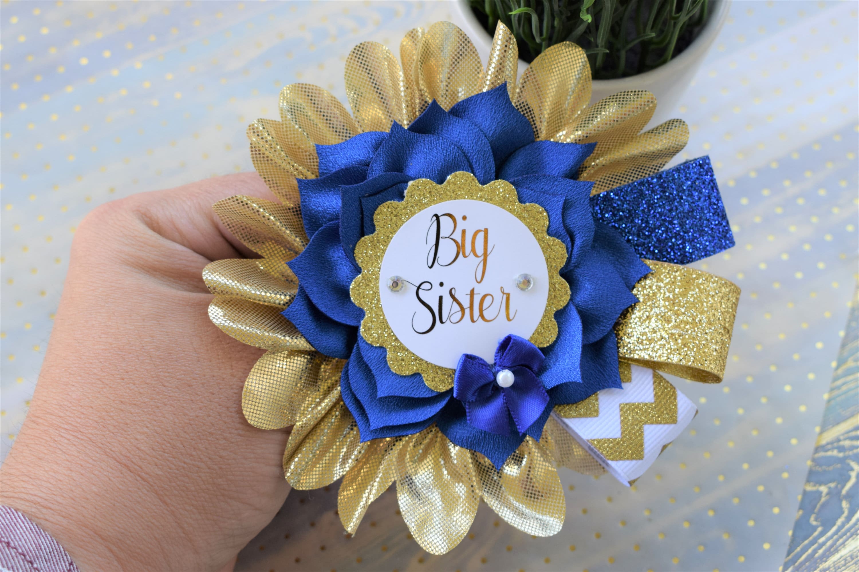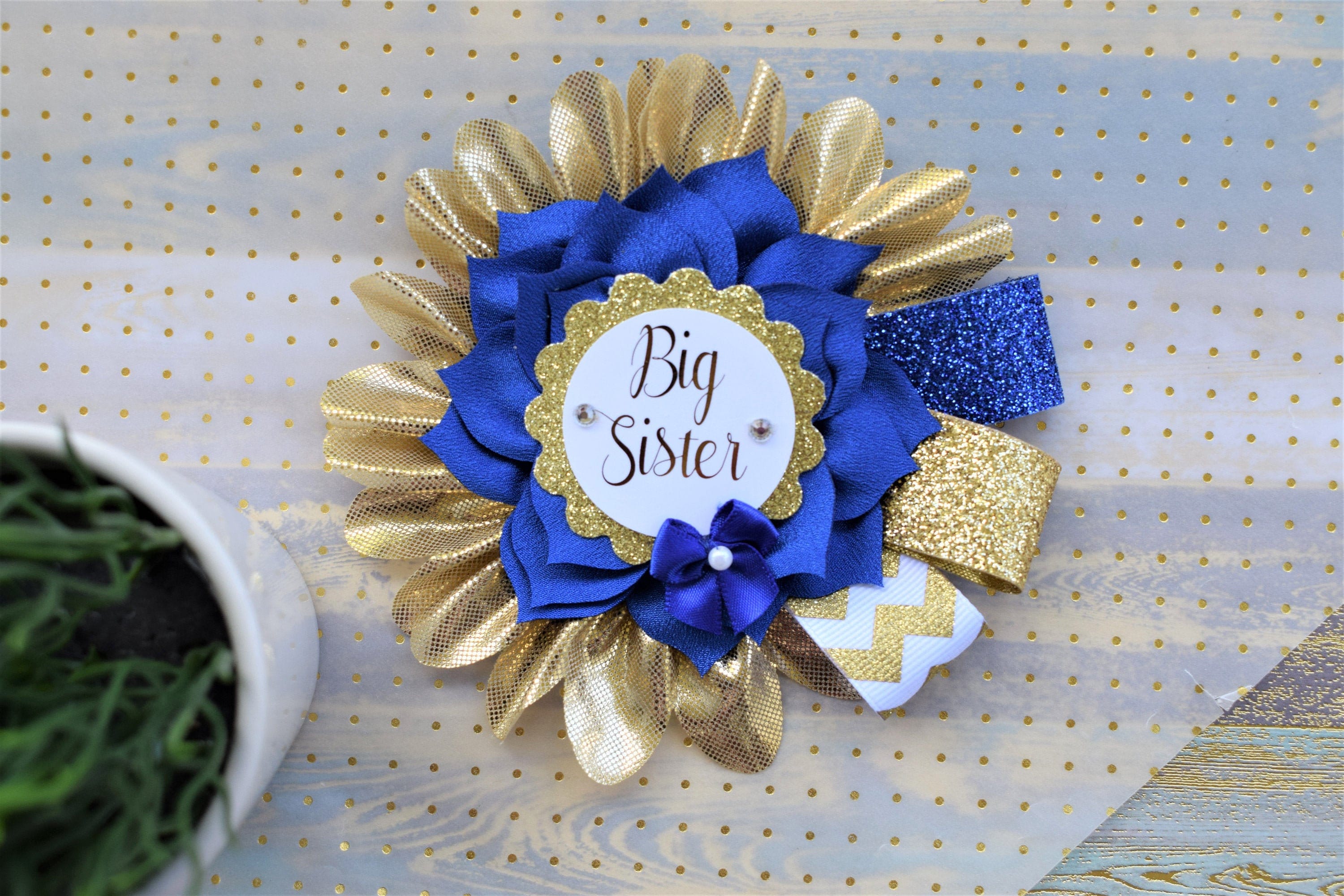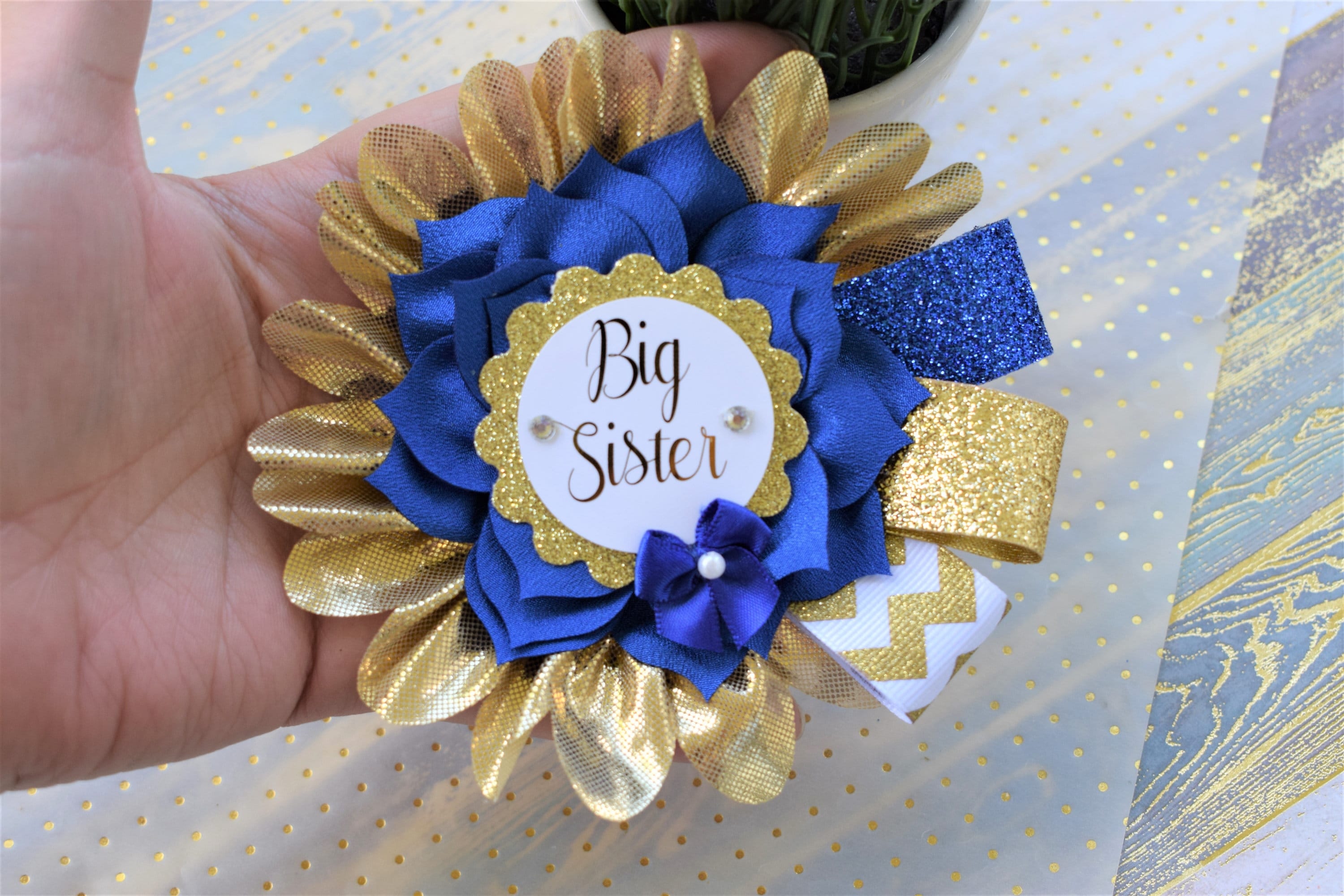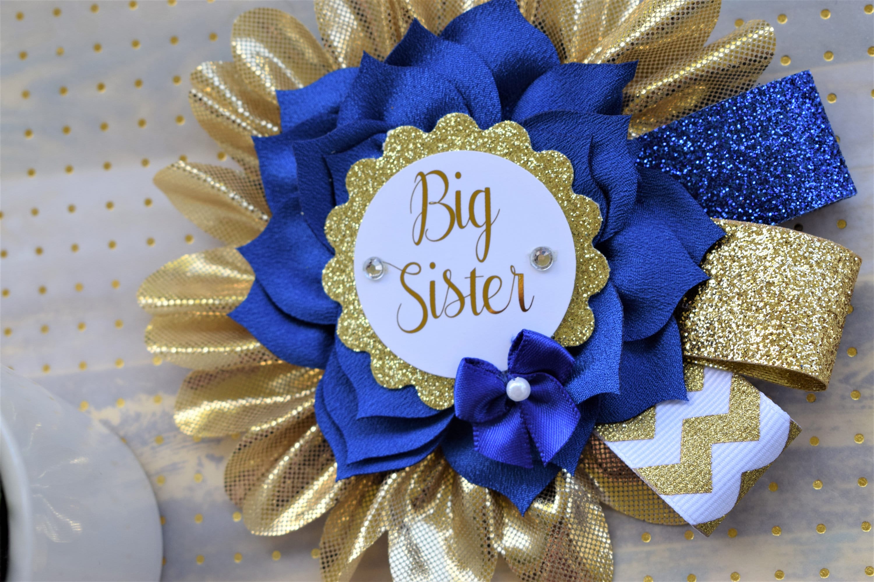 Royal Blue Big Sister Pin, Prince Baby Shower, Royal Prince Family Pin, Royal Blue White Gold Baby Shower, Family & Guest Pin, Custom