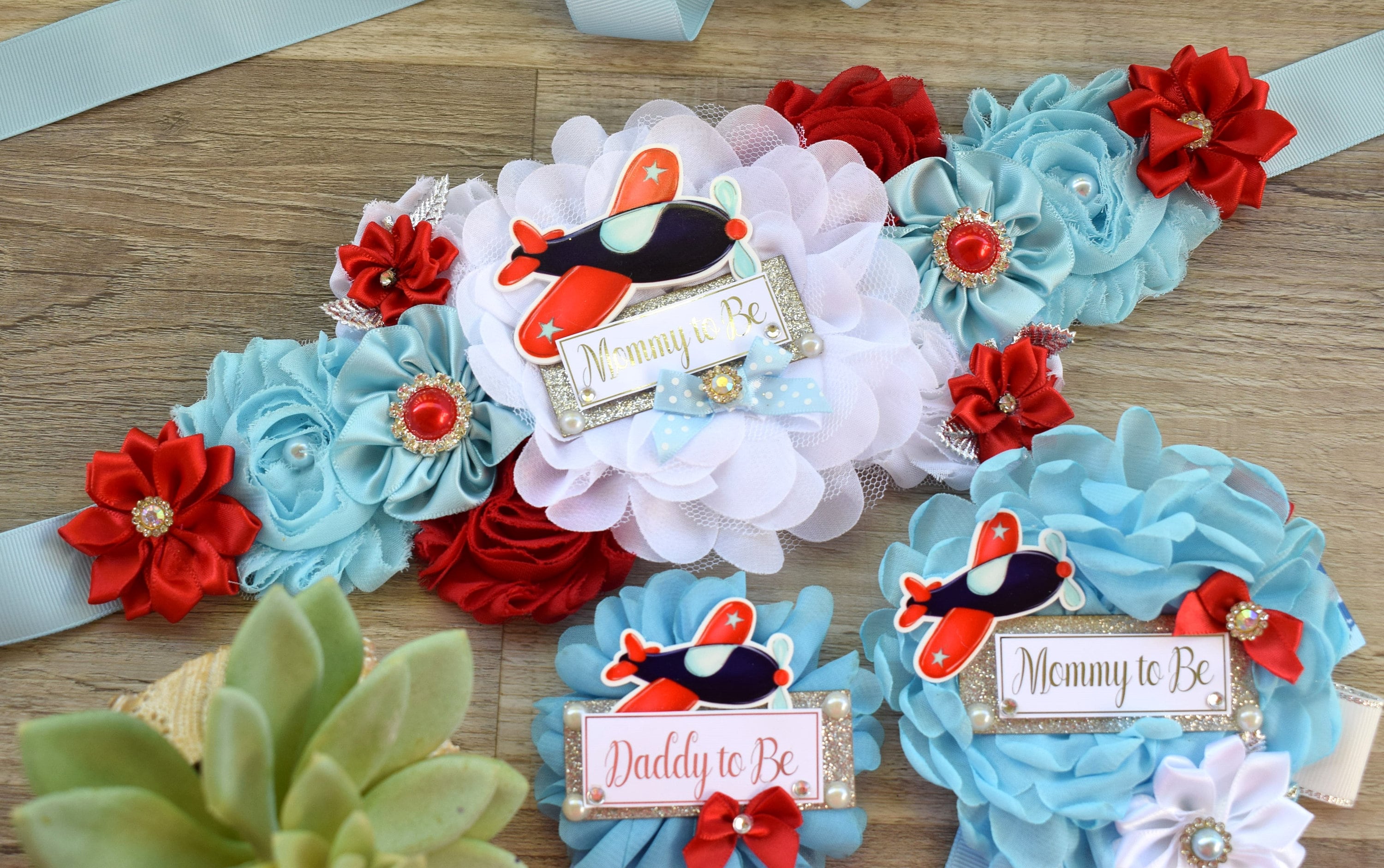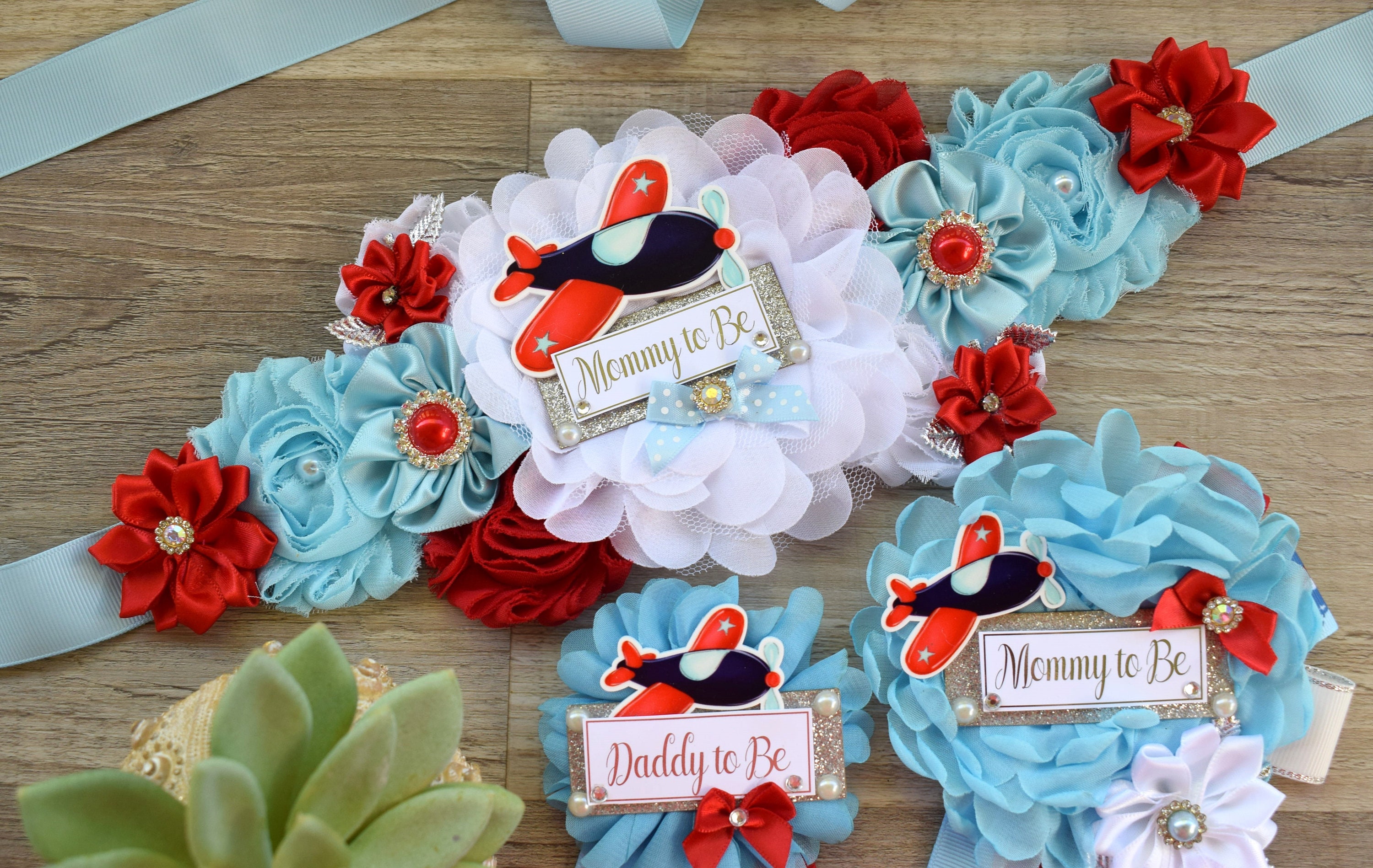 This Gorgeous Sash & Pins Set was made especially for a Baby Shower or a Photo Prop.