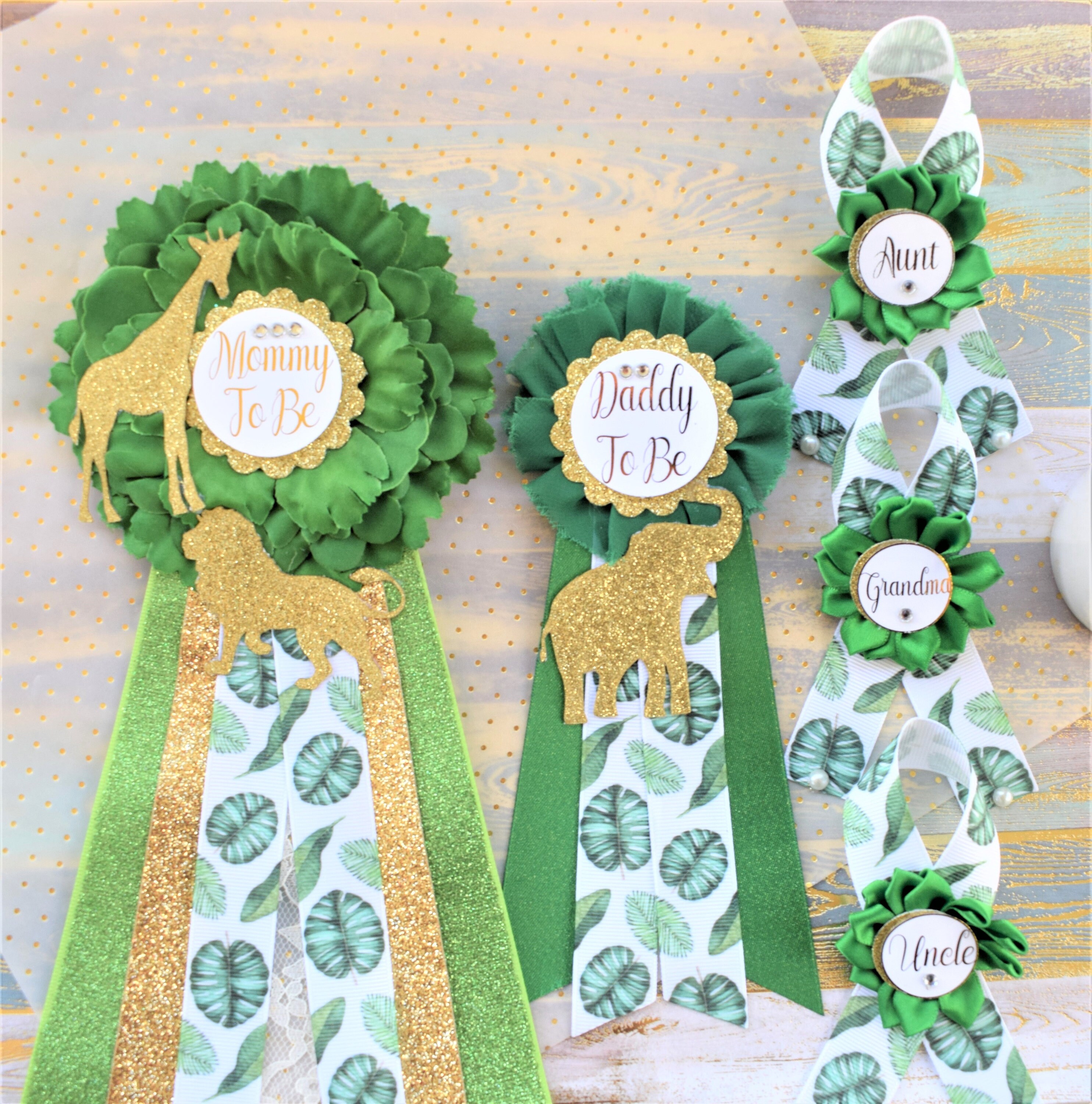 This Safari Gold & Green Pins are made especially for a Baby Shower or a Photo Prop.