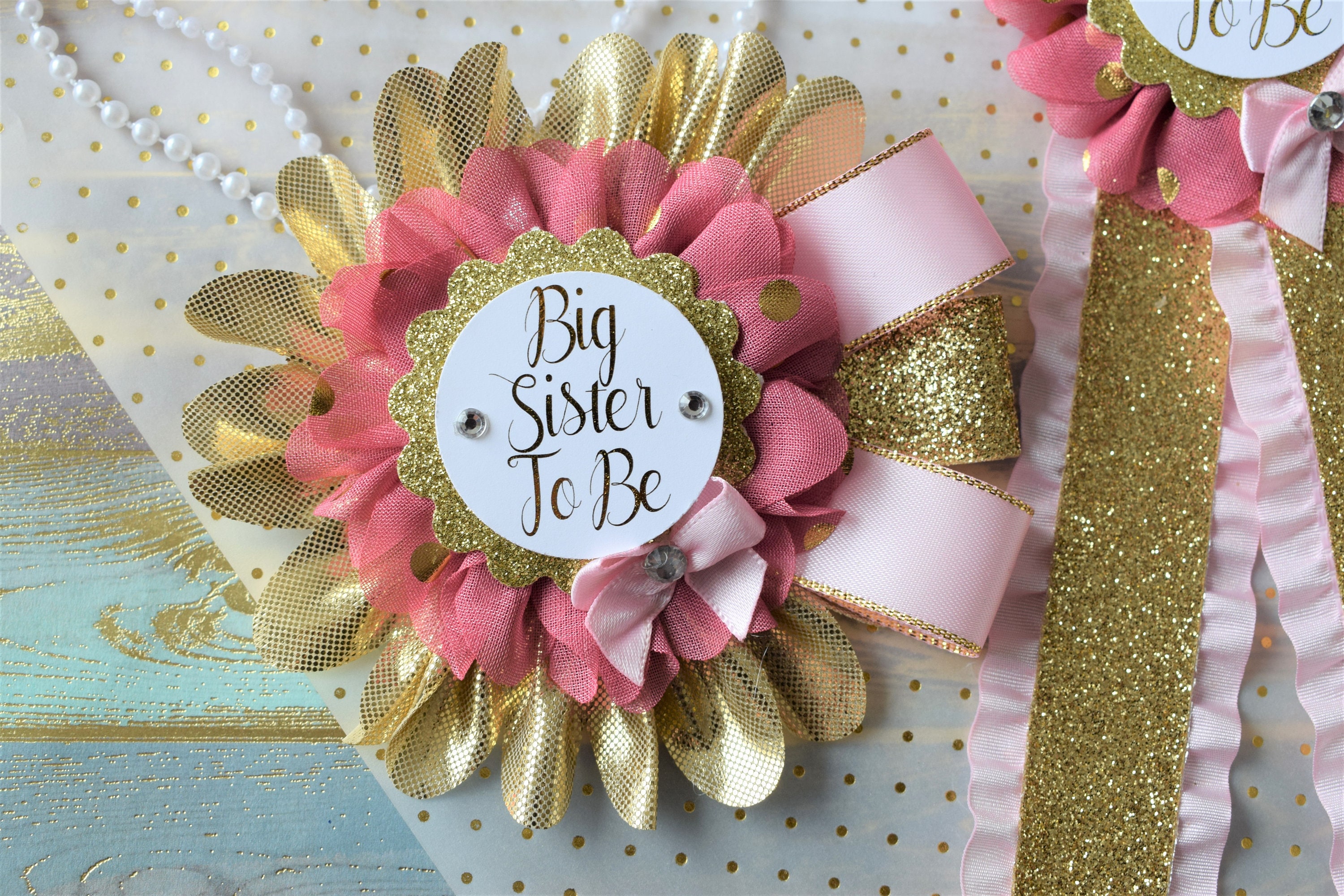 Mauve Dirty Pink Big Sister To Be Corsage Pin, Gold Dusty Pink Corsage Pin, Mauve Pink Pin, Old Pink Baby Shower Sash, Custom Corsage Pin
