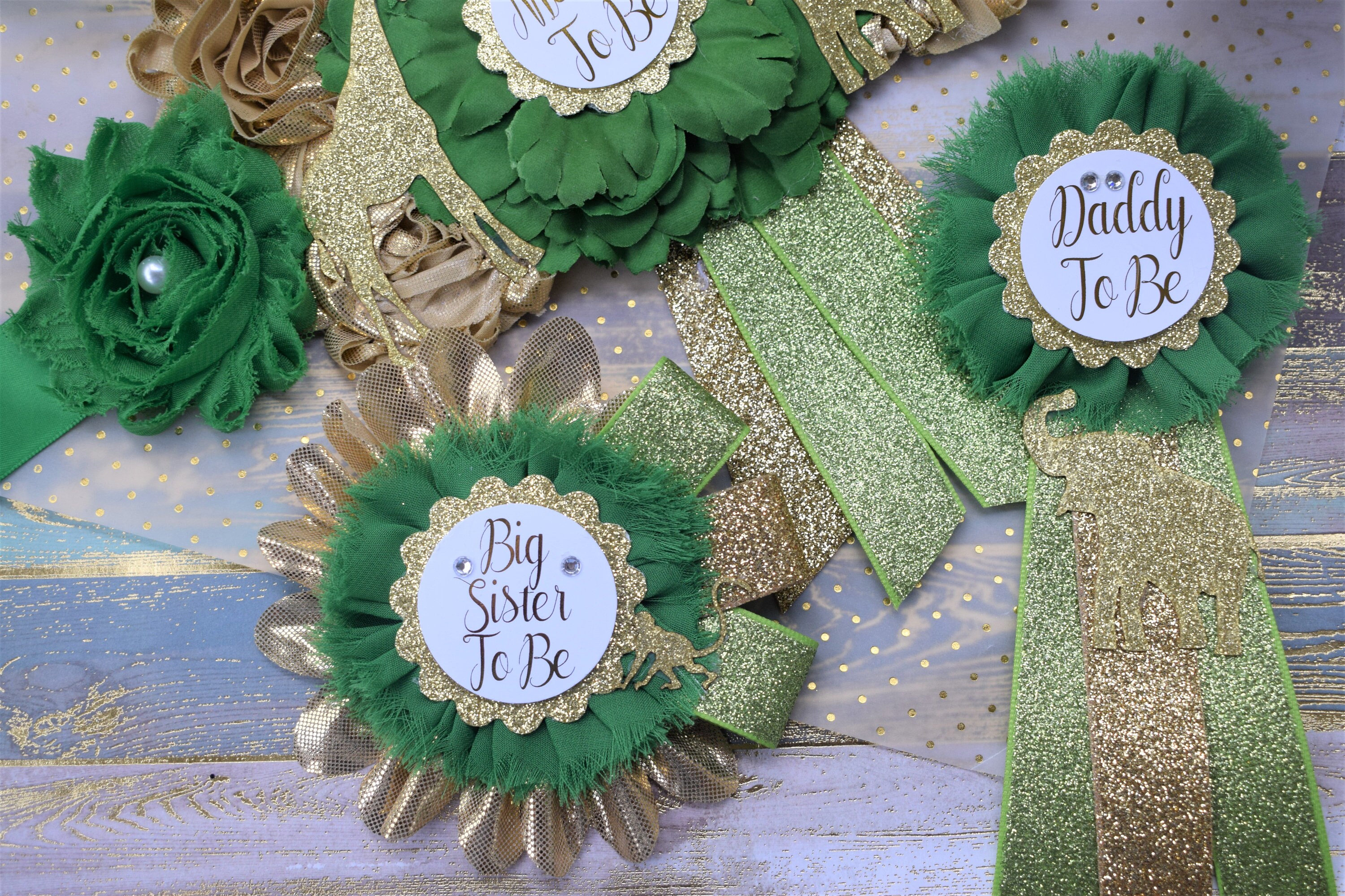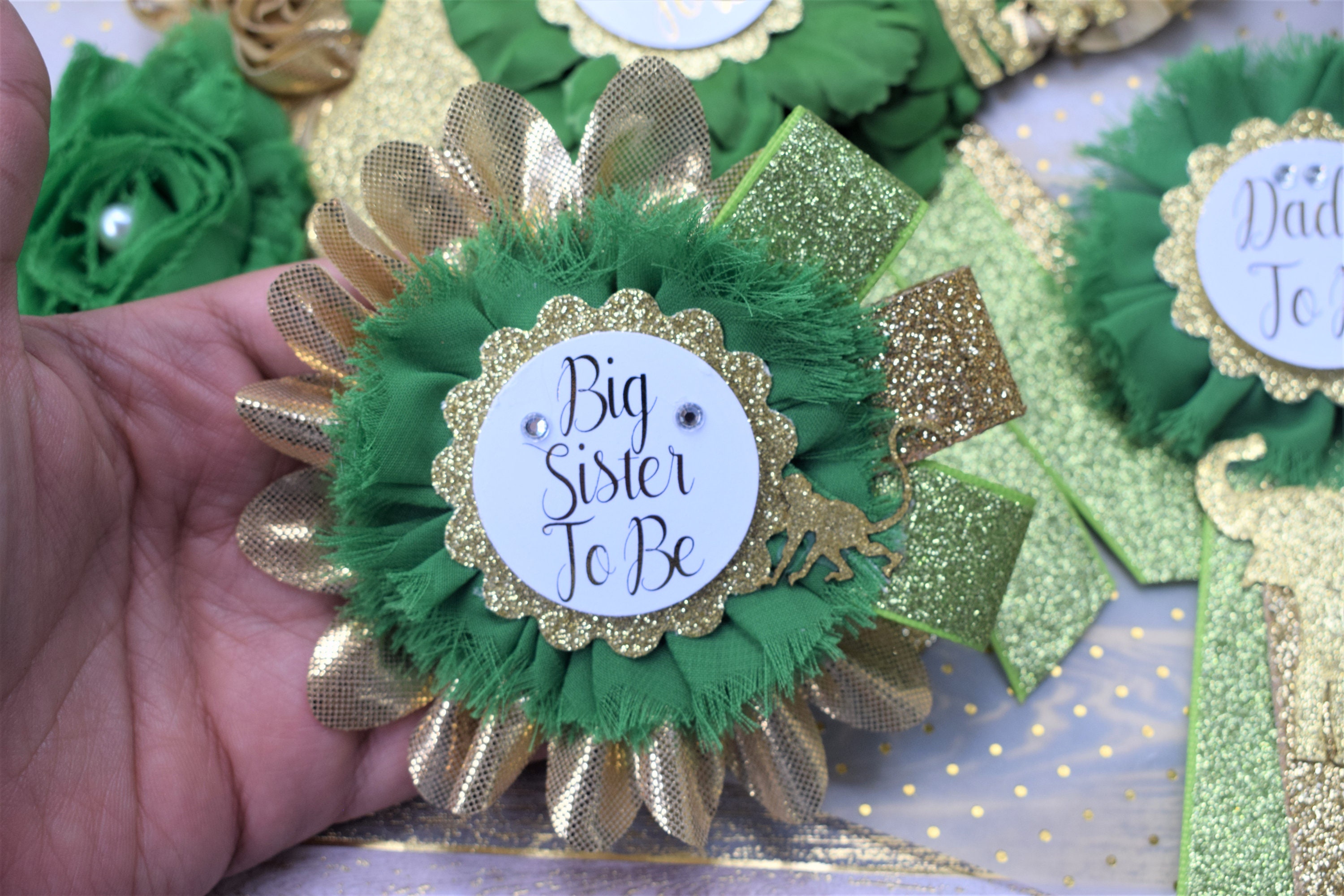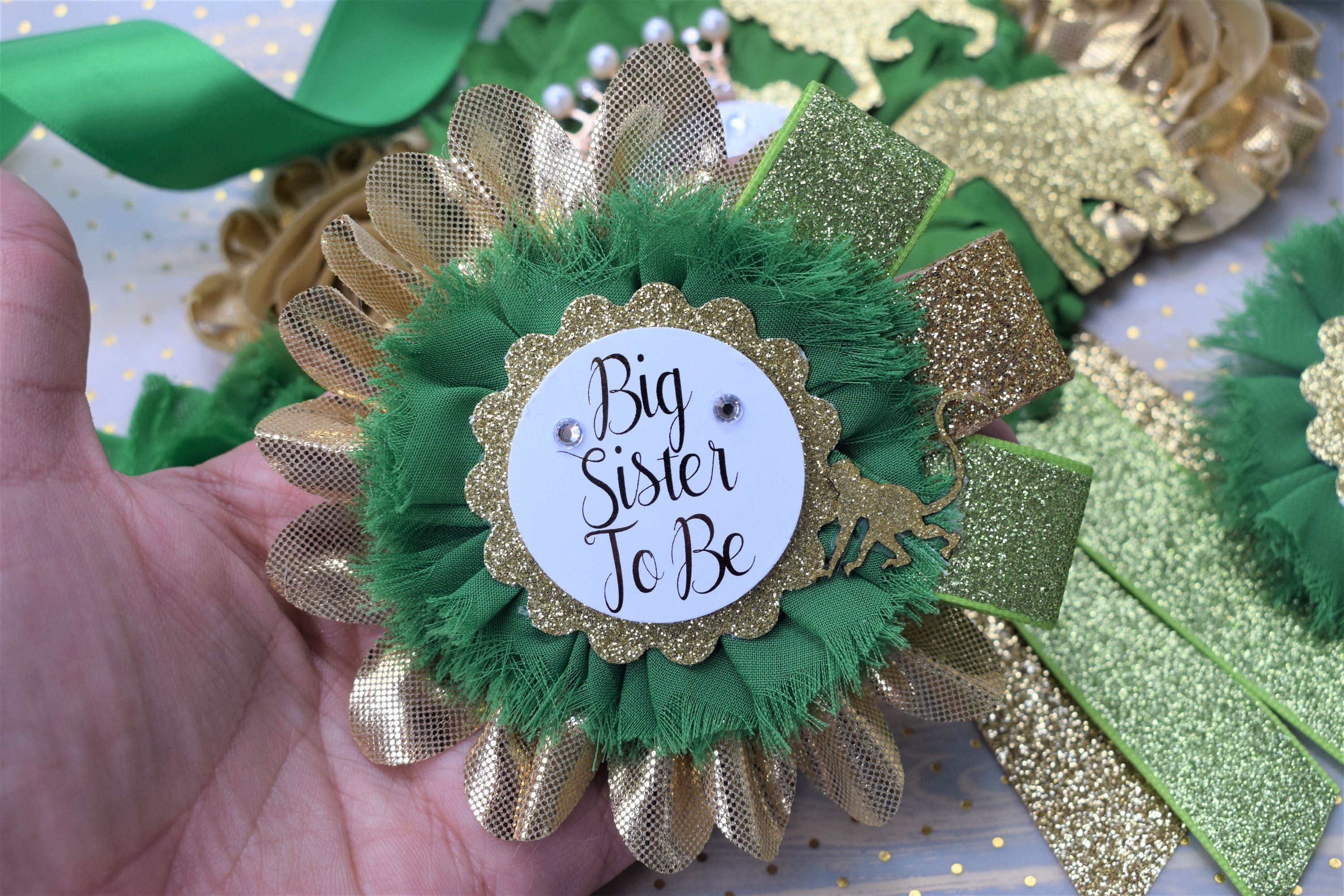 Safari Green Gold Big Sister Pin, Gold Safari Animals, Greenery Gold Big Sister, Jungle Safari Green Gold Baby Shower, Big Sister Ribbon Pin