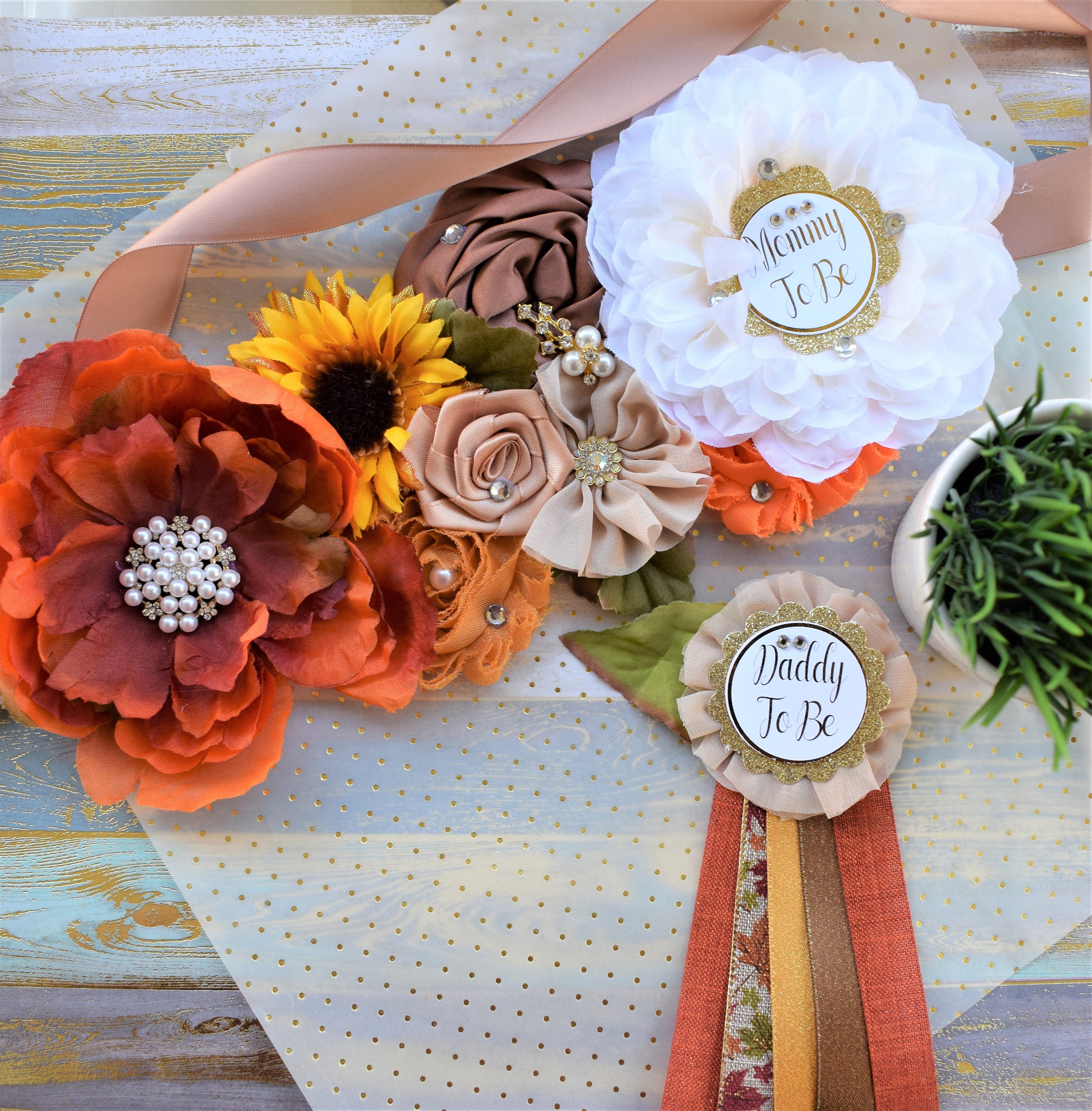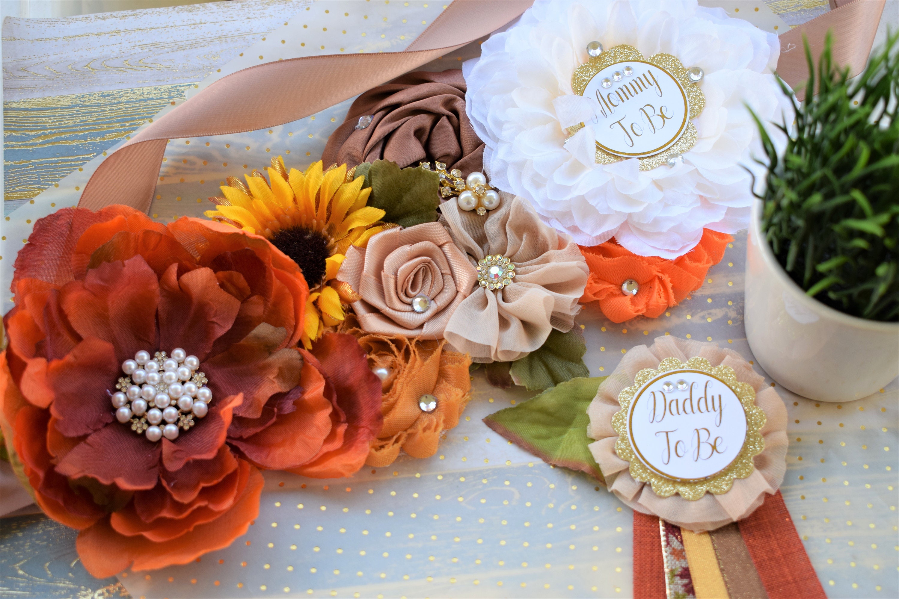 This Fall Flower Sash was made especially for a Baby Shower or a Photo Prop,