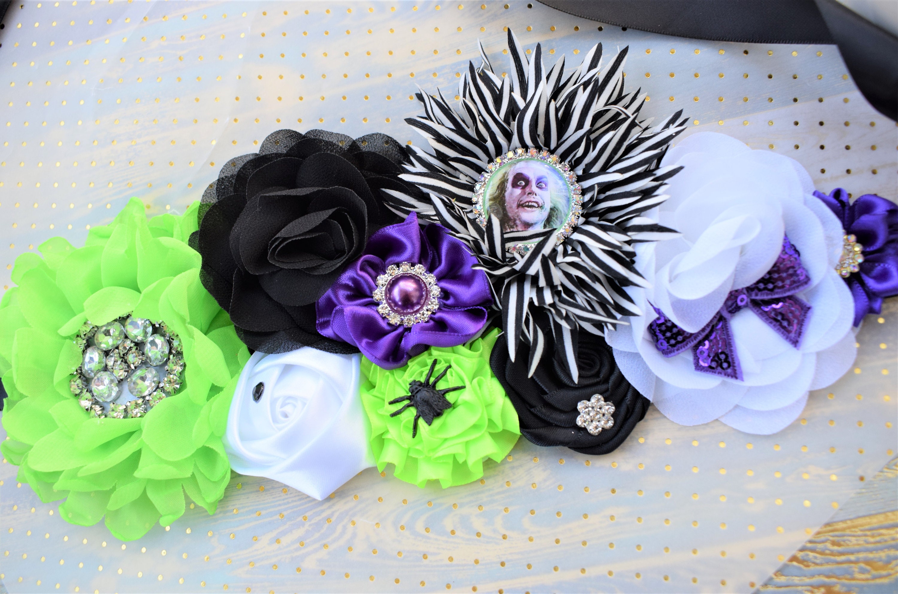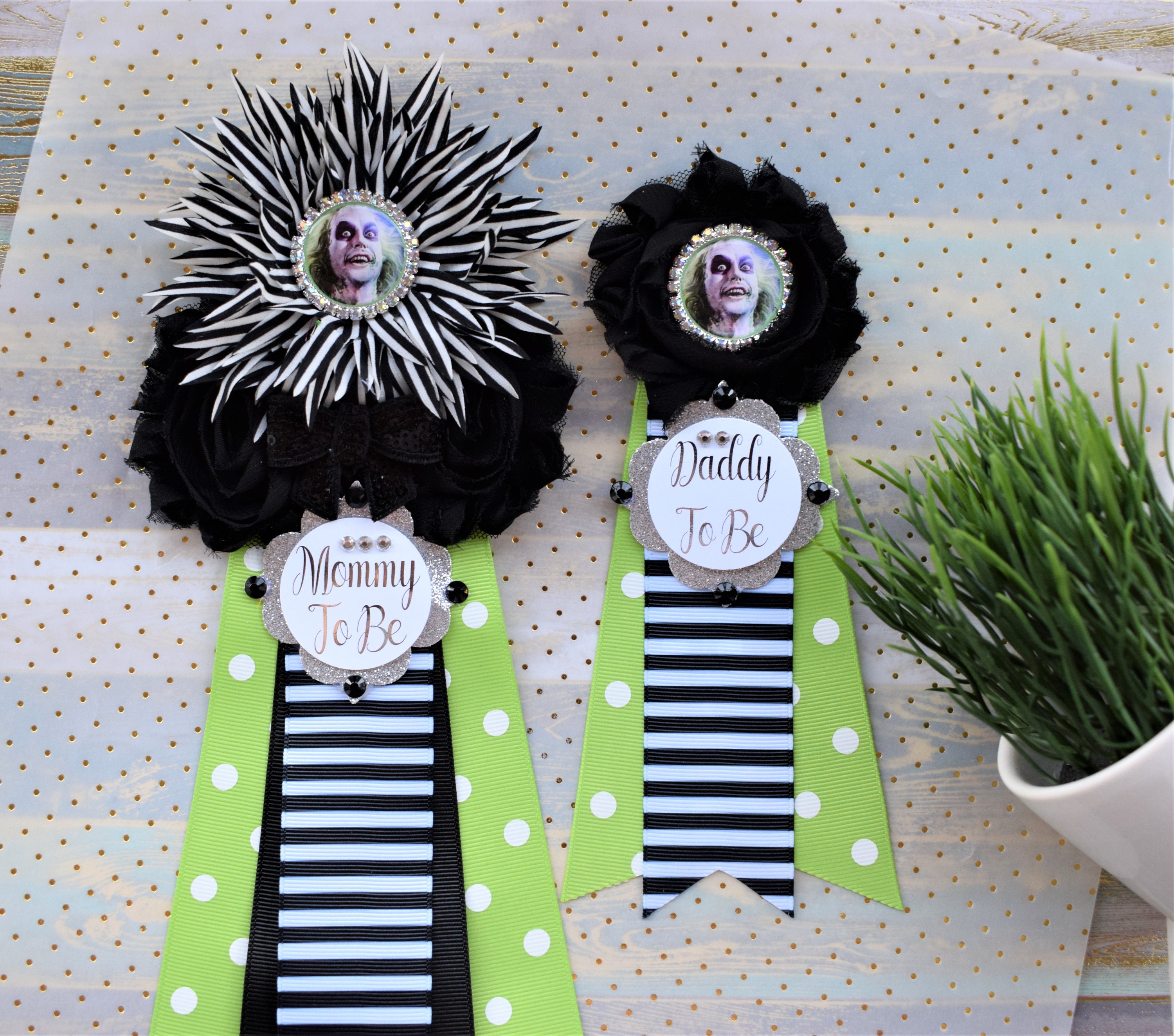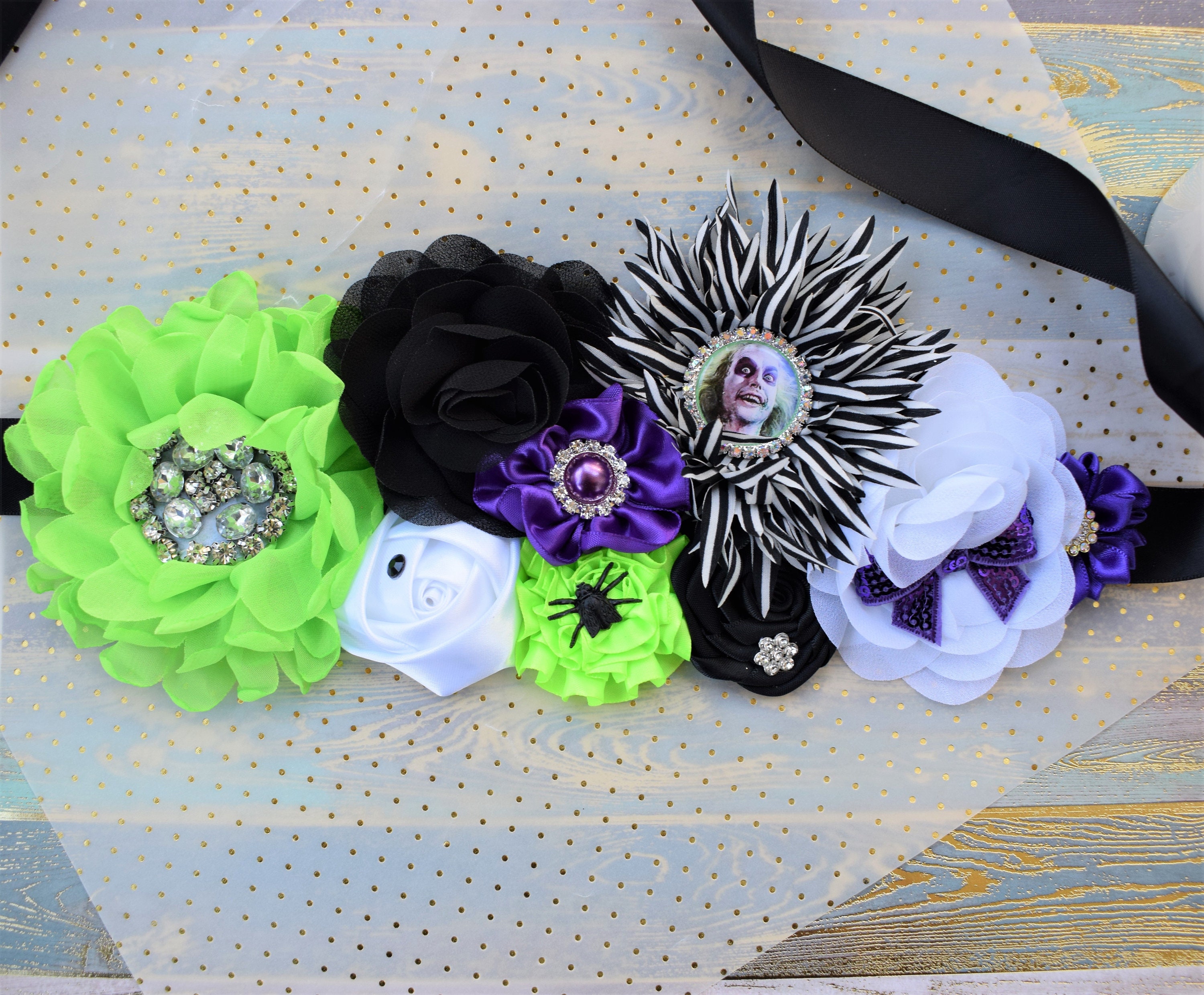 This Beetlejuice Baby Shower Sash is made especially for a Baby Shower or a Photo Prop.
