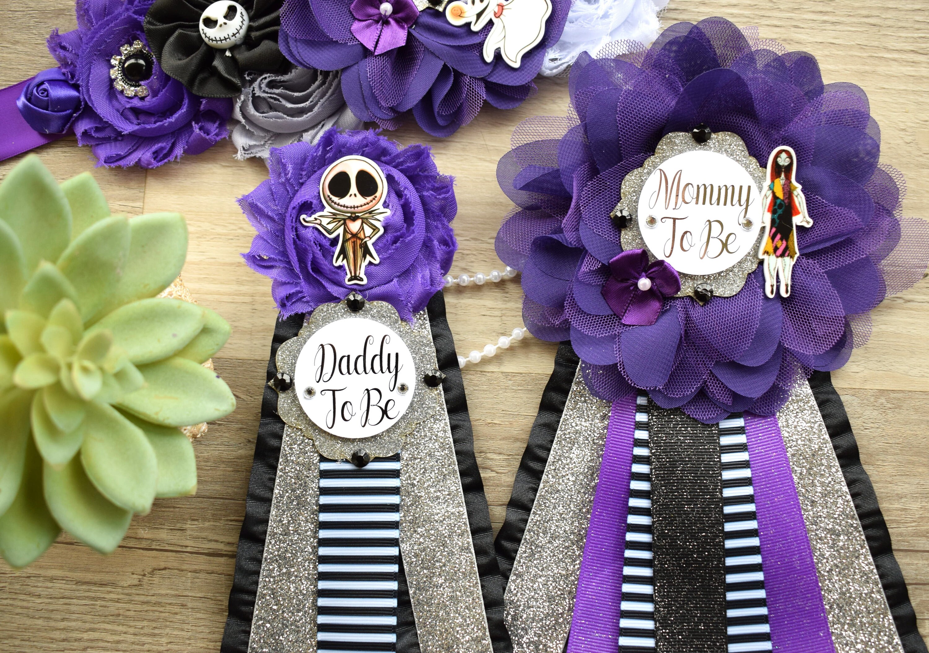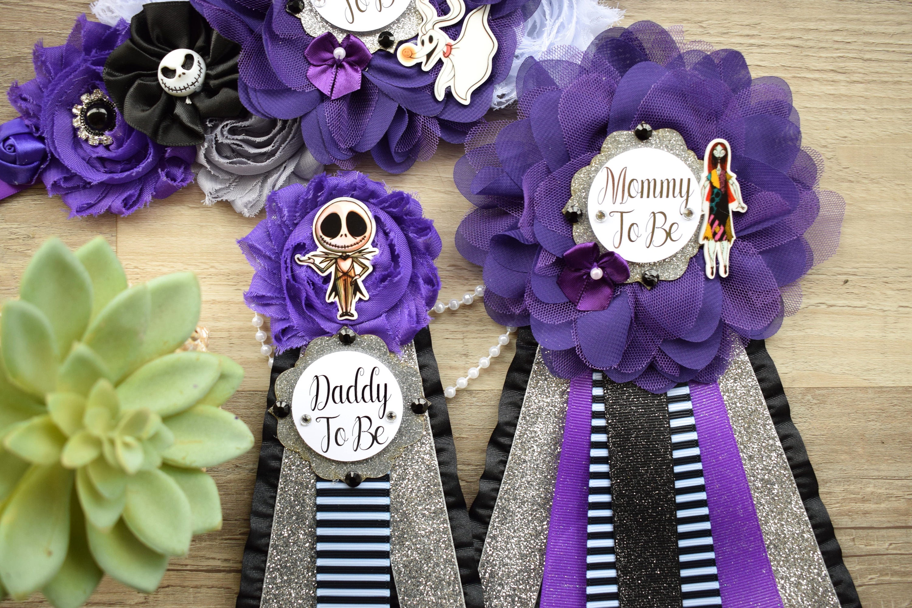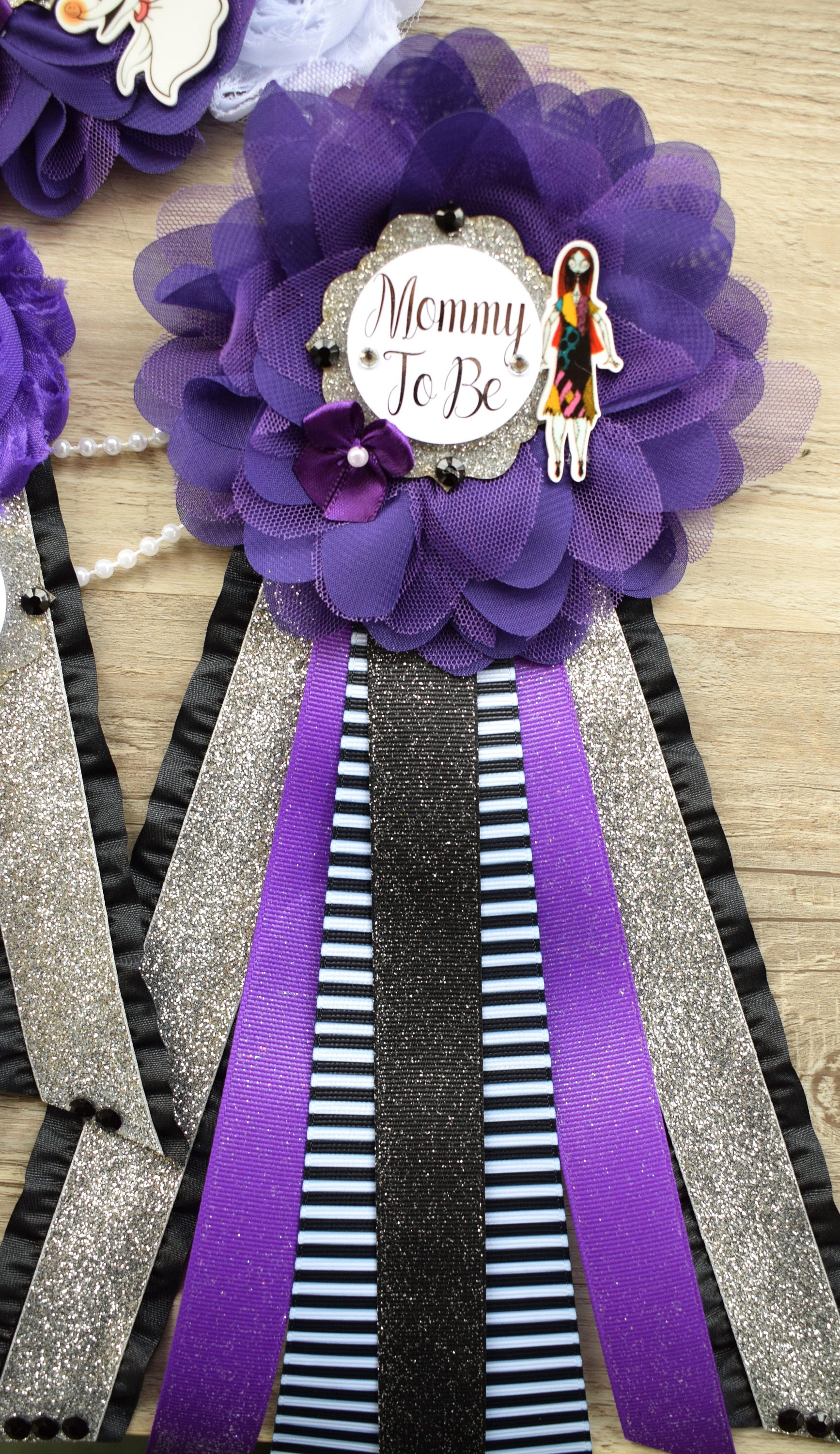 Halloween Baby Shower, Purple Maternity Sash, Purple Black Maternity Sash, Mommy To Be Badge, Daddy To Be Pin, Custom Items