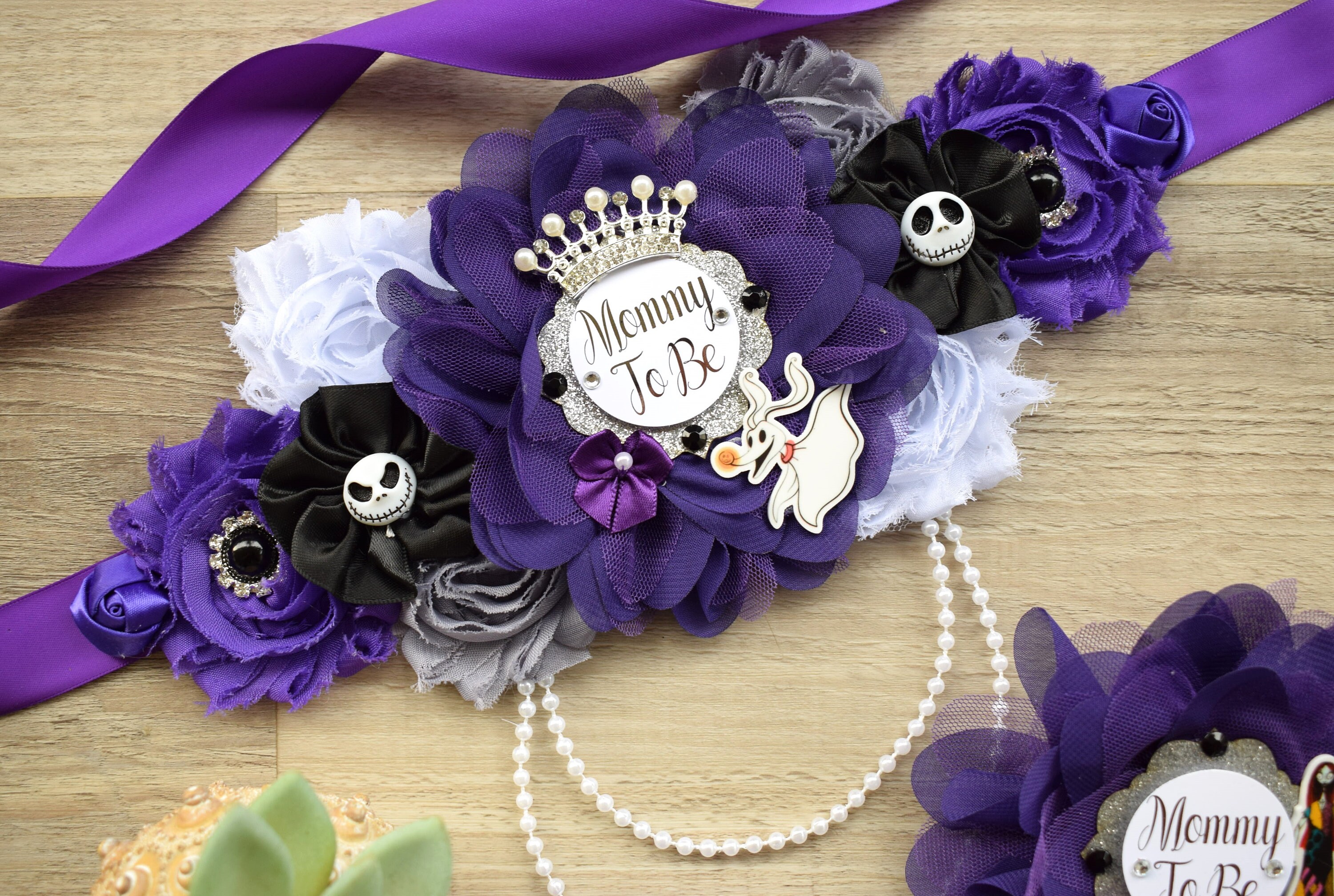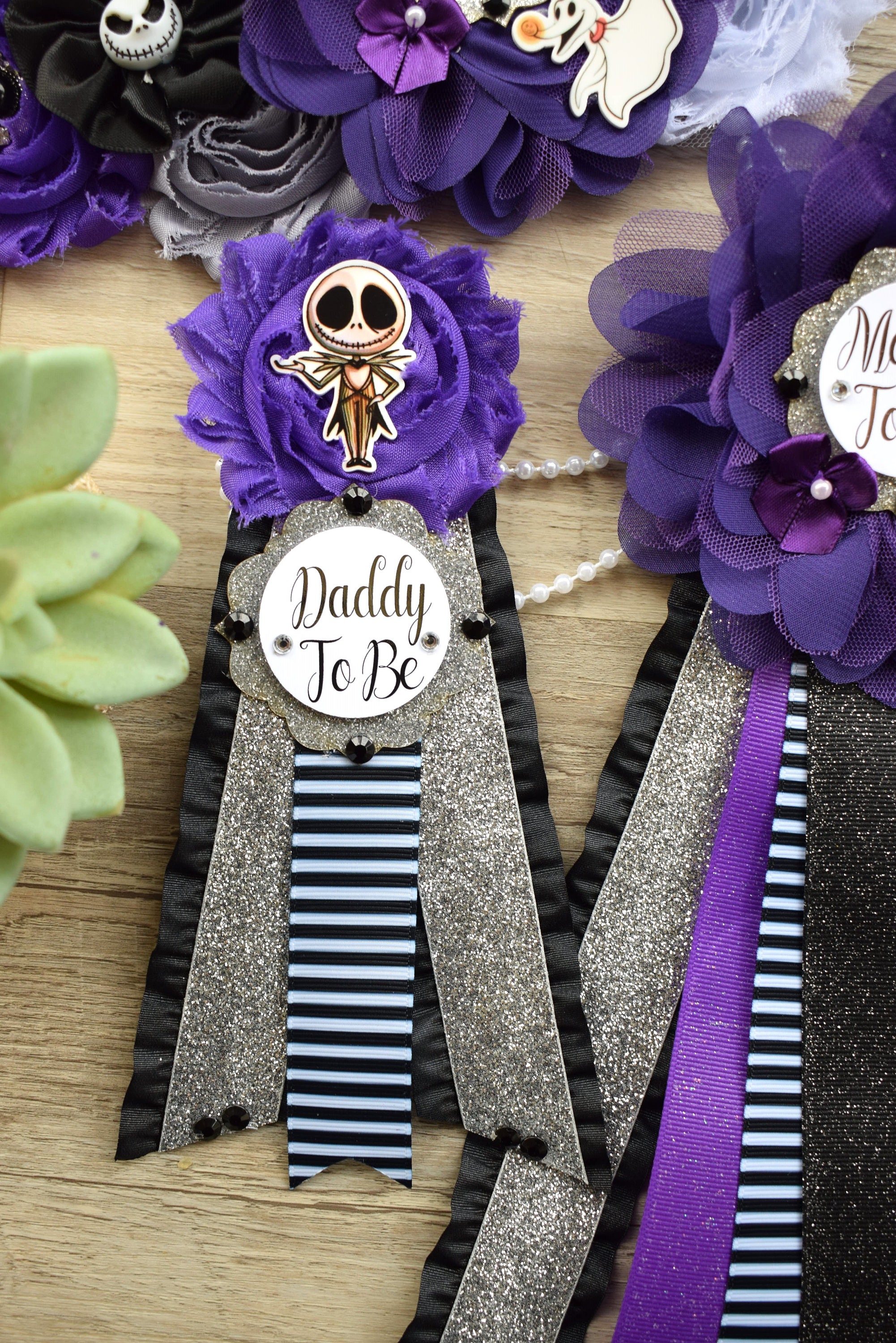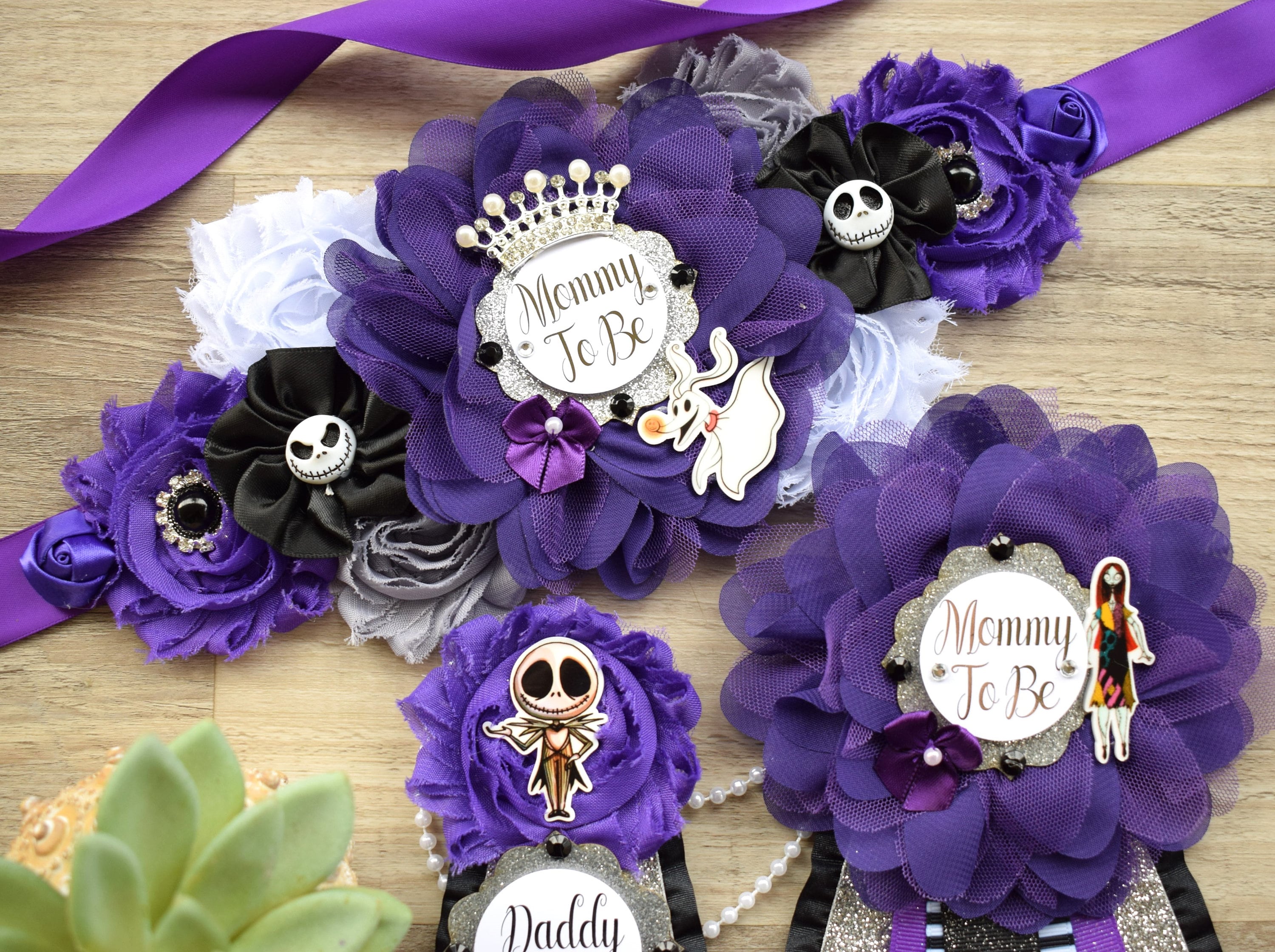 Halloween Baby Shower, Purple Maternity Sash, Purple Black Maternity Sash, Mommy To Be Badge, Daddy To Be Pin, Custom Items