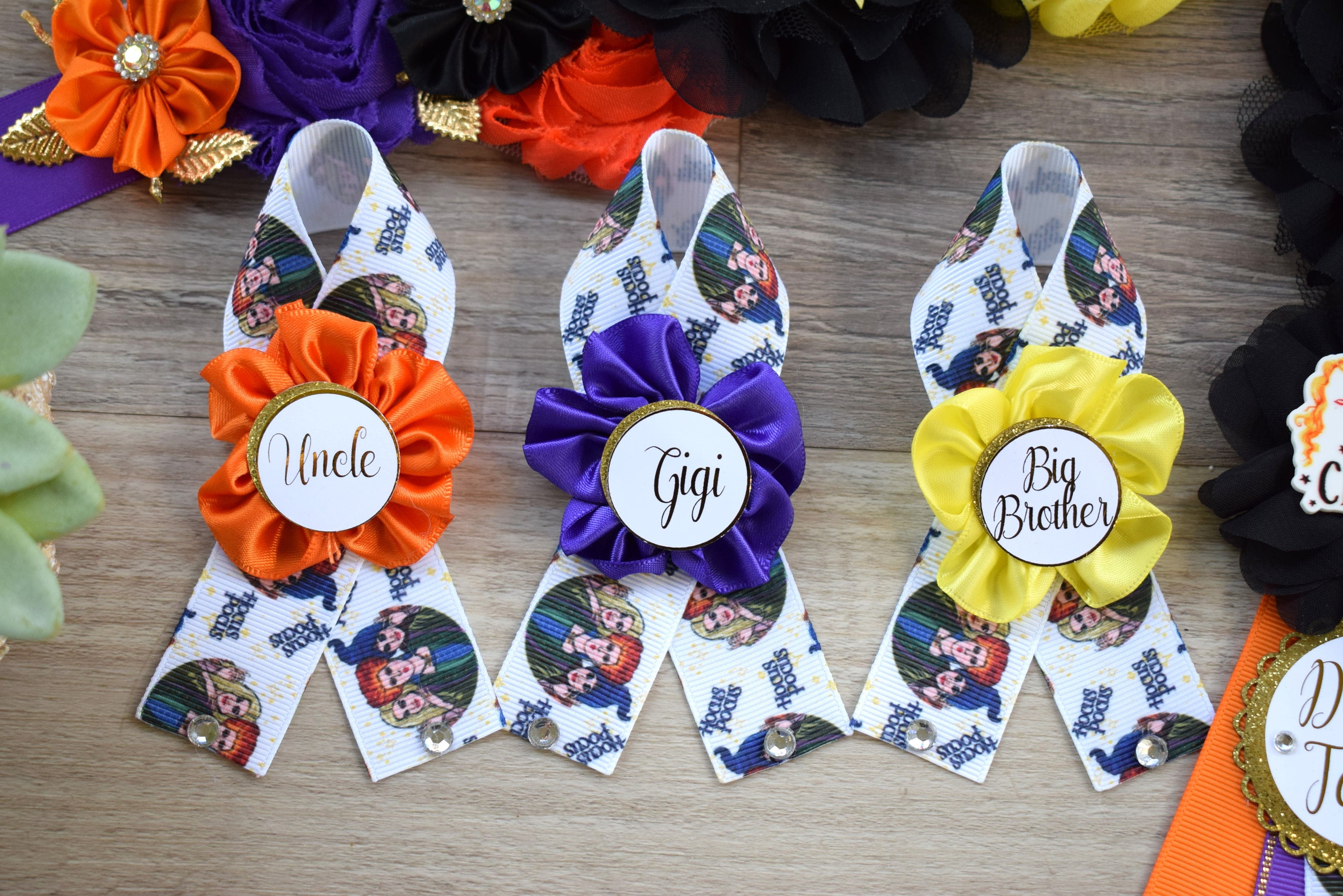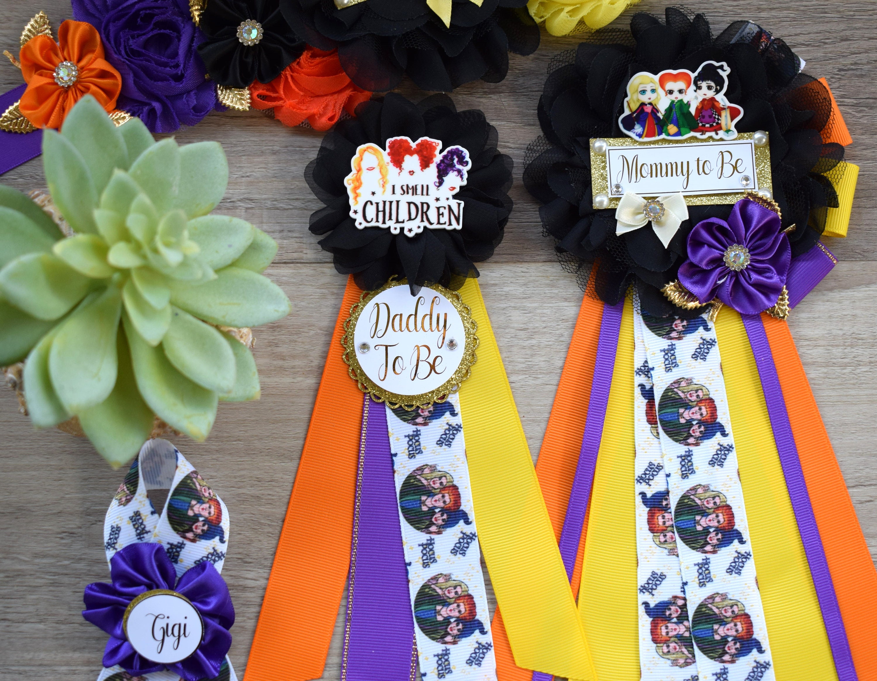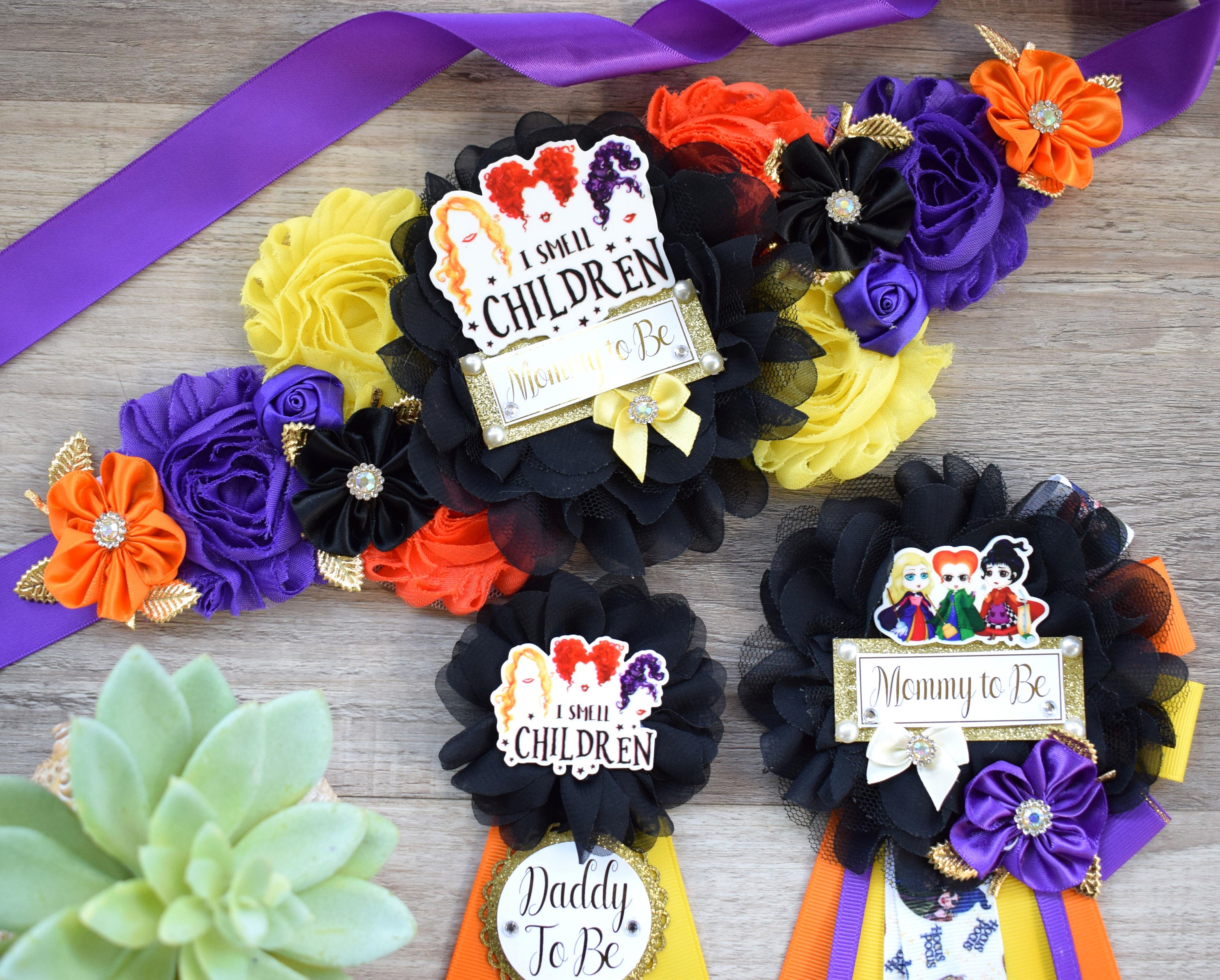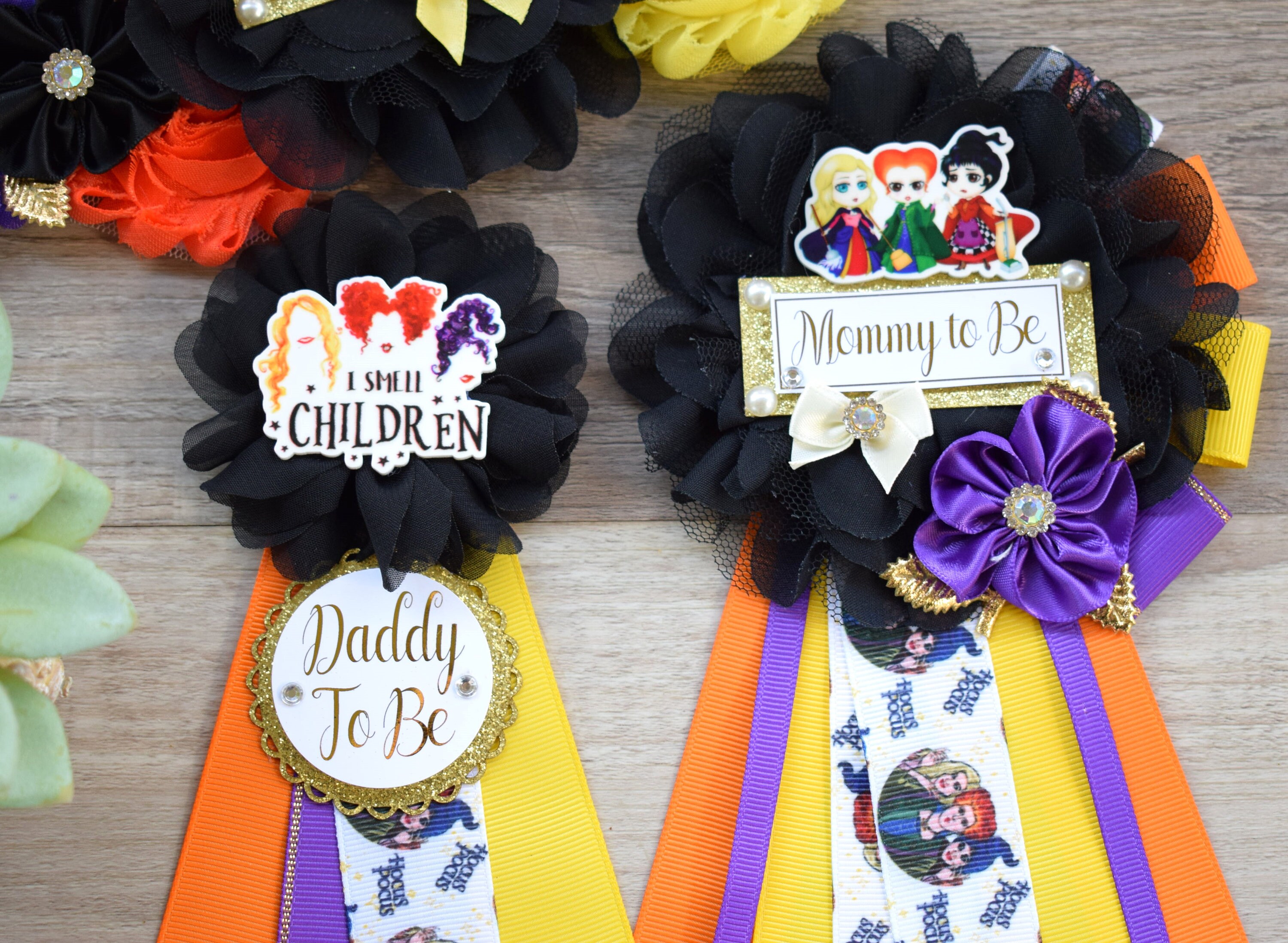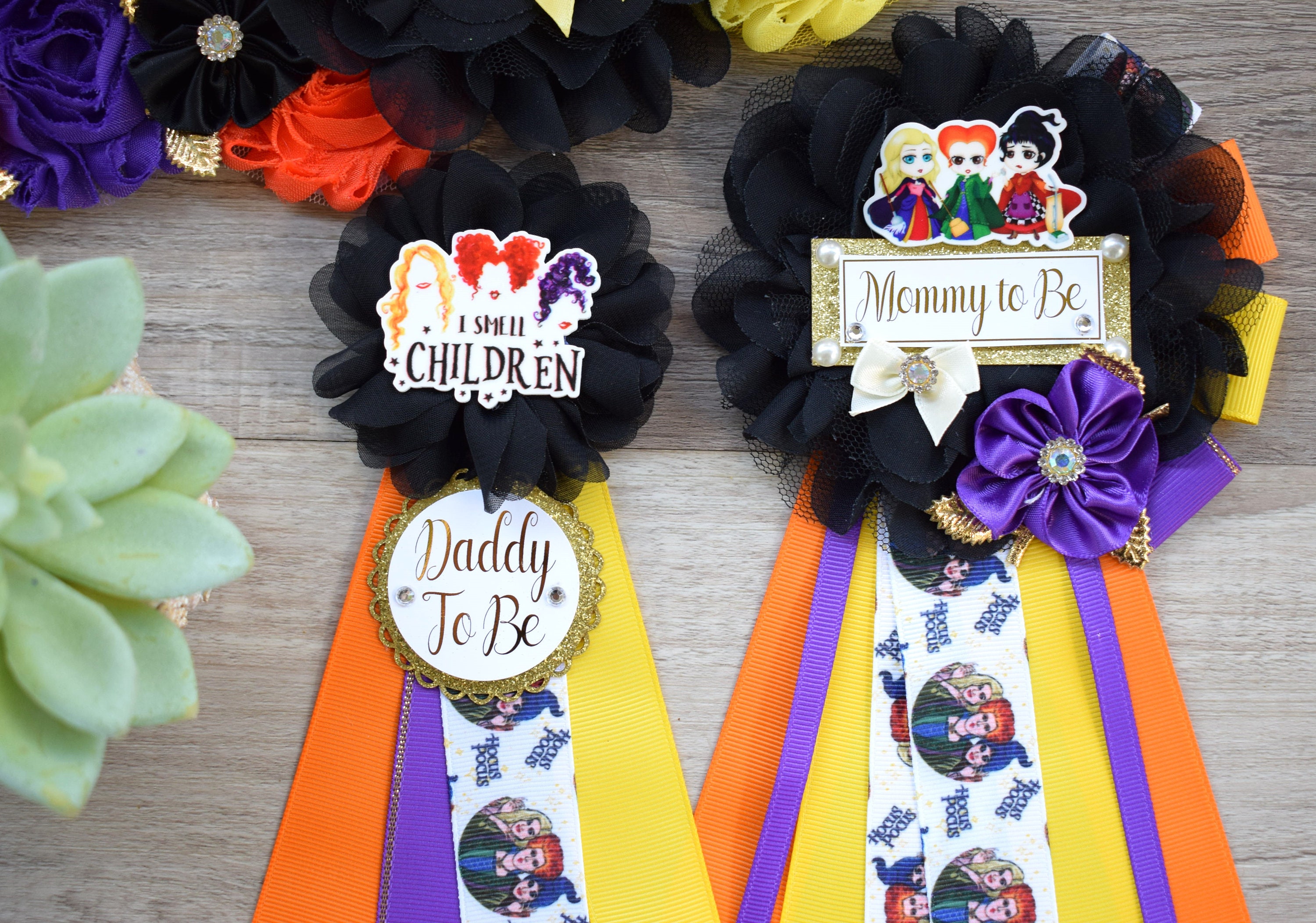 Comedy/Horror Halloween Baby Shower, Mommy To Be Ribbon, Green Orange Purple, Daddy To Be Pin, Halloween Baby Shower,